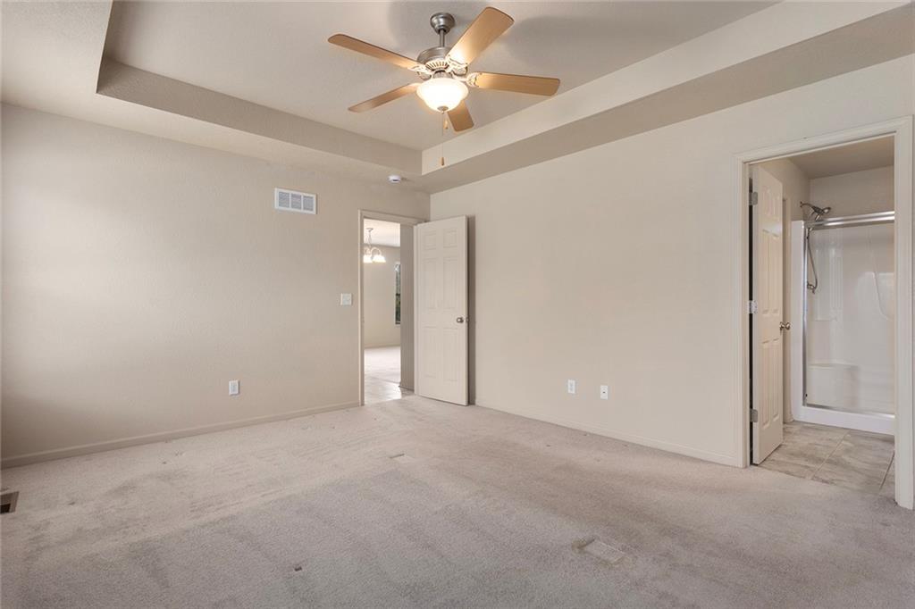BEAUTIFUL! Such a lovely home! Cute corner lot on a cul-de-sac speaks of charm and meticulous care. Front steps lead up to a covered entry. The entry has a convenient coat closet. Straight ahead, the Great Room features a ceiling fan, stylish fireplace with circulating fan, lots of windows offering natural light, and modern light fixtures. To the left of the Great Room are two bedrooms: one with ceiling fan (the other is wired for one) and nice closets in both. Also, a full bathroom with tub/shower combo, and a linen closet. Stepping further in, past the dining space, is an awesome kitchen! Contrasting black appliances with white cabinetry, this space is well done. Island with storage, tons of cabinet space, and a well-laid-out pantry. Head out the back door from the kitchen to the stairs leading down to a lovely patio area, green space, and partial fencing. To the left of the kitchen is the master bedroom, spacious, with a ceiling fan and an en suite bathroom featuring a shower, and a large walk-in closet (6 ½ x 8) with a built-in safe for storing valuables. That’s the main floor! Head down the carpeted stairs to a grand, unfinished space just waiting to be created and used! Rough-in for a bathroom, a possible bedroom, and a bonus room. So many features here: reinforced joists, egress window, sump pump and backup sump pump, surplus emergency drinking water tank, tornado shelter, an April Air humidifier, an almost new high-end Goodman furnace, and almost new high-quality water heater. If that’s not enough, check out the garage! Here you will find an 8-foot door, high ceiling, hot-water sink, bright fluorescent lights, and a coated flaked epoxy floor that looks brand new. The garage door opener has recently been inspected and many parts updated/repaired. Outside, there is a programmable irrigation system to follow your schedule. HOA covers snow removal and common space maintenance. A REAL STUNNER! Come see it soon!