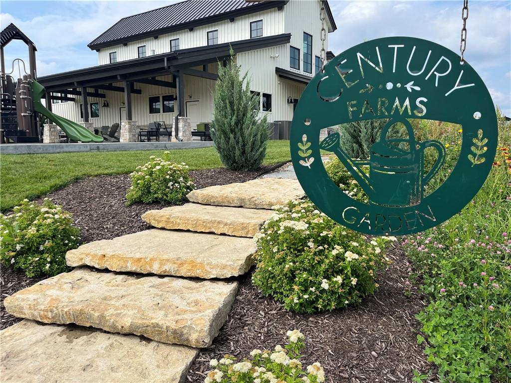 The Rosedale 1.5 Story plan with tandem 4 car garage, by SAB Homes is underway for a Sept. MOVE IN on lot #208 with large back yard trees. Beautiful modern farmhouse interior selection with light wood, white walls, mossy green accents, black and gold hardware and wood accent. Upgrades include celling beams, hallway wainscoting, white quartz and freestanding tub, front double doors with glass windows, large 14' patio along the back side of the house connecting the dining room to the primary suite, plus a covered patio. Pocket laundry in the primary closet and a full 2nd laundry upstairs by the bedrooms. This home has it all with a grand two story great room, main floor primary bedroom, office or formal dining room space, 3 bedrooms upstairs and a 2nd laundry. Striking curb appeal with stucco exterior, wood shutters, warm wood accents and real stone trim. Optional finished basement with 1164 additional square feet can be added with a 5th bedroom/ fitness room/ hobby space or extra office. There is still time to make your custom design selections. *This home is currently UNDER CONSTRUCTION and photos are from a previous home* Century Farms has a spectacular clubhouse with a fitness center, resort style swimming pool with a slide. There are plenty of neighborhood activities with a fire-pit, two pickle-ball courts and a basketball, kids play area, wildflower walkways and community garden. Century Farms is conveniently located near the brand new Bluhawk shopping center, Heritage Park, the Johnson County Trail system and the Overland Park Arboretum. Come join the fun in Century Farms, a unique one of a kind upscale new home community in Overland Park. BLUE VALLEY SCHOOLS