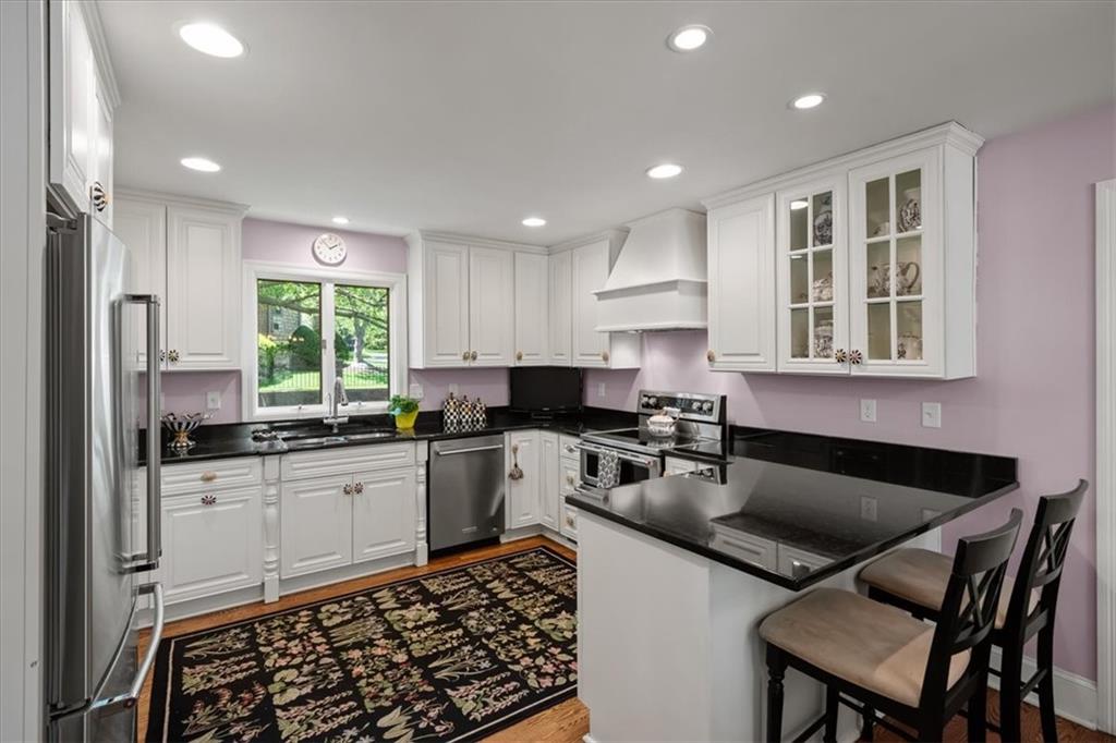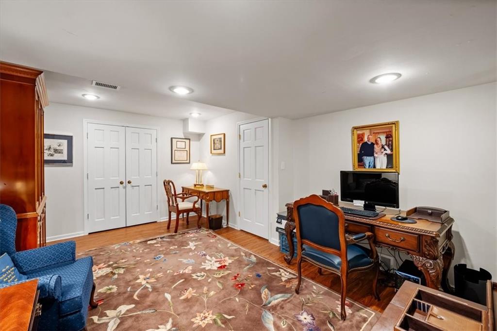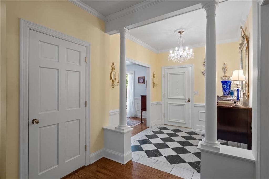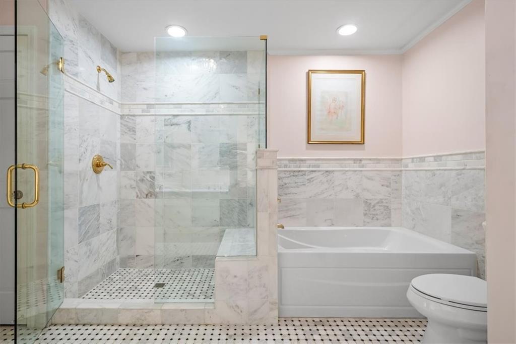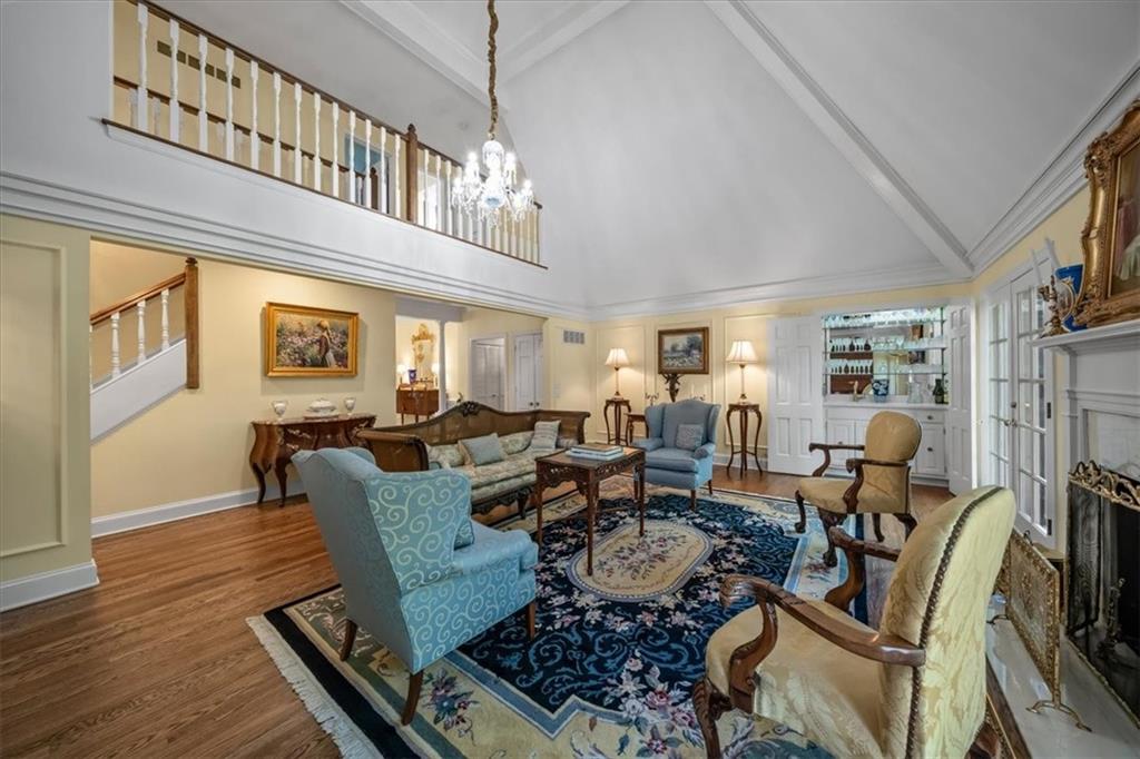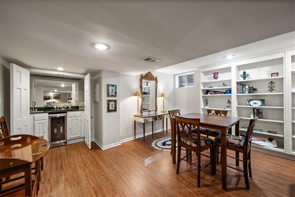 Experience maintenance-provided luxury in this fabulous 1.5-story home located in Corinth Downs. Boasting over 3,200 sqft of refined living space, a brand-new DaVinci roof, and zoned heating and cooling, this 3-bedroom, 3.5-bath home perfectly balances traditional elegance with a spacious, airy floor plan. The main level greets you with a grand foyer and a formal dining room featuring a tray ceiling and classic wainscoting. The soaring, vaulted living room, anchored by a stately fireplace and wet bar, is bathed in natural light, offering a seamless flow for entertaining. The kitchen is a chef's delight, featuring crisp white cabinetry, sleek black granite countertops, new stainless steel appliances, and a charming breakfast nook. Retreat to the main-floor primary suite, complete with a generous walk-in closet and a spa-like ensuite bath finished in exquisite floor-to-ceiling marble, featuring a glass-enclosed shower and a deep soaking tub. Main floor laundry is also available for your convenience. The upper level offers two additional bedrooms and a full bath, perfect for guests, a playroom, or a quiet home office. The expansive lower level significantly increases the home's footprint, offering a large recreation room with a second wet bar and dedicated dining area, an office, and a fourth non-conforming bedroom with a full bath. You will also find a secondary kitchen with an additional laundry room, offering unmatched storage and utility space. Step outside to a private, lushly landscaped brick enclosed patio, ideal for alfresco dining under the shade of mature trees. This home offers the perfect "lock-and-leave" lifestyle without sacrificing the scale and comfort of a traditional home.