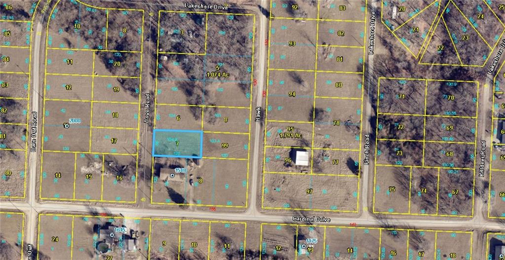 From Odessa, head south on 131 Hwy, turn right on Mt Tabor Rd, Right on Lakeshore Dr, Left on Cardinal, Right on Dove. Property is 2nd lot on Right.