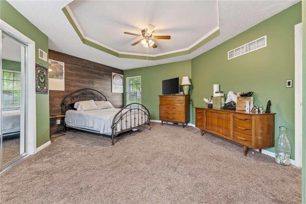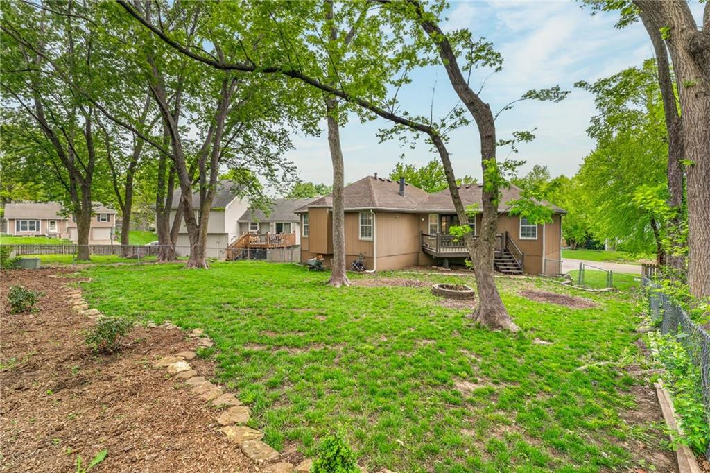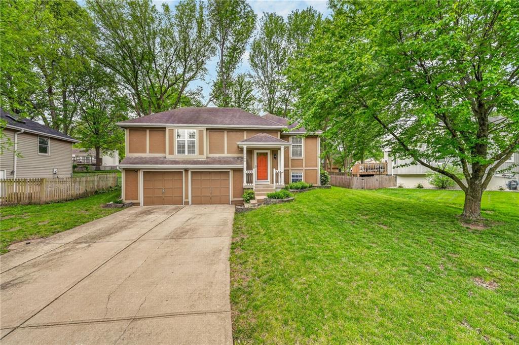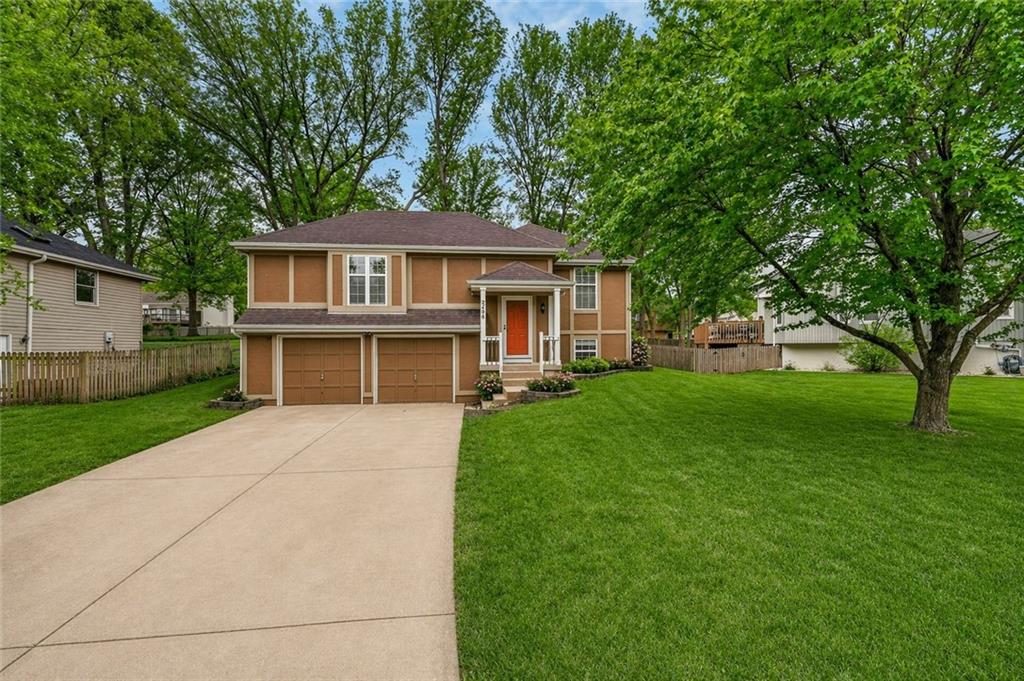 This beautifully updated property offers the perfect blend of comfort, style, and functionality. Recent improvements include a newer furnace and AC, newer water heater, whole home air purifier, gutter guards, remodeled bathrooms, updated fixtures, newer sump pump, smart garage door openers, whole home security system, new paint throughout, and recent repairs on the deck. New flooring going in the first week of May! The main living area features durable luxury vinyl plank flooring and an inviting fireplace, creating a warm and welcoming space. French doors lead to a spacious back deck, ideal for entertaining or relaxing while overlooking the fenced backyard. The kitchen is designed for both everyday living and hosting, complete with a farmhouse sink, pantry, stylish backsplash, and an open layout that flows seamlessly into the dining area. The primary suite is a true retreat with a tray ceiling, walk-in closet, and a beautifully updated private bath featuring tile finishes, double granite vanities, and a shower/tub combo. Two additional bedrooms and an updated hall bath provide plenty of space for family or guests. The finished lower level adds valuable extra living space, perfect for a second living area, home office, or rec room. Situated on a quiet cul-de-sac and within walking distance to Legacy Park, this home truly has it all.