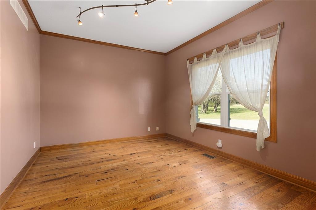 RARE 4-ACRE RETREAT JUST MINUTES FROM KANSAS CITY! Discover the perfect balance of privacy, space, and convenience with this exceptional reverse 1.5-story home tucked away in a picturesque, tree-lined setting. Offering nearly 4 acres of serene landscape, this property delivers a true country-living experience without sacrificing access to top-rated schools, shopping, and city amenities. Designed for both comfort and functionality, this home showcases vaulted ceilings, expansive living spaces, and an abundance of natural light. The main level provides effortless living, while the walkout lower level expands your options with a private 4th bedroom featuring its own exterior entrance—ideal for guests, multi-generational living, or a private office suite. Outdoor living shines with a wraparound deck, perfect for entertaining or simply enjoying the peaceful surroundings under a canopy of mature trees. Car collectors, hobbyists, or those needing extra space will love the oversized 3-car garage with extended bays and doors, plus a rare 4th garage on the lower level—offering unmatched flexibility. Thoughtfully updated throughout, with major improvements in the past 2–3 years including new hardwood floors, custom plank tile, updated lighting and fans, exterior stone accents, upgraded stair finishes, deck enhancements, and a fully finished lower level. Additional updates in progress add even more value. Don't forget the advantage of low energy bills due to the energy efficient living with Solar Panels. **Please note Solar Panels are paid for and there is no financial burden transferred to the buyer, just the savings. Opportunities like this—with acreage, upgrades, and location—are few and far between. This is the one buyers have been waiting for.