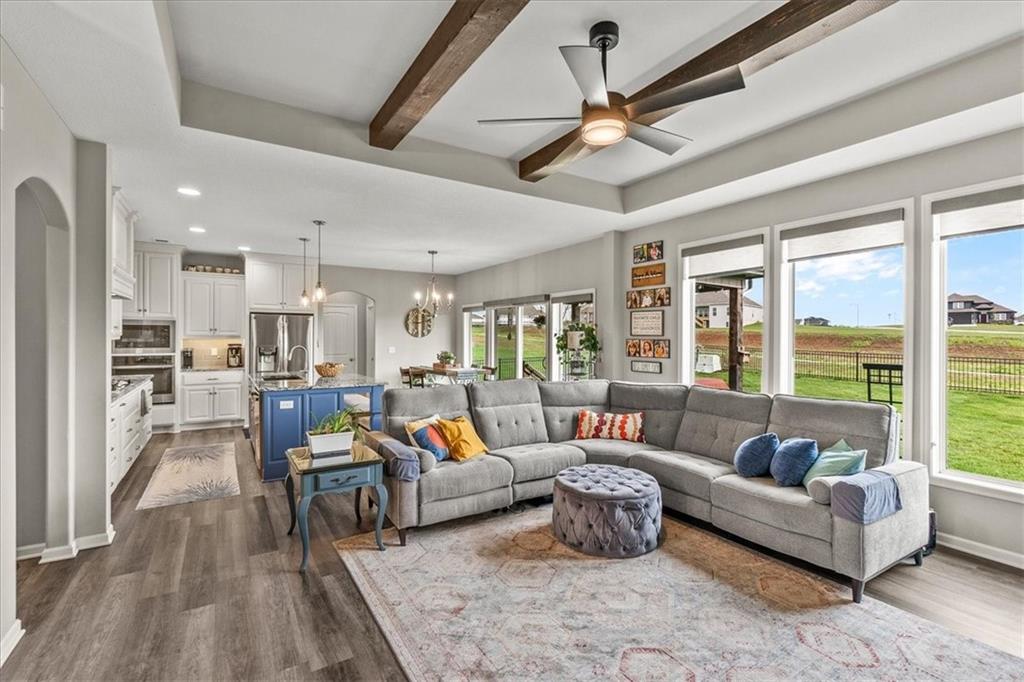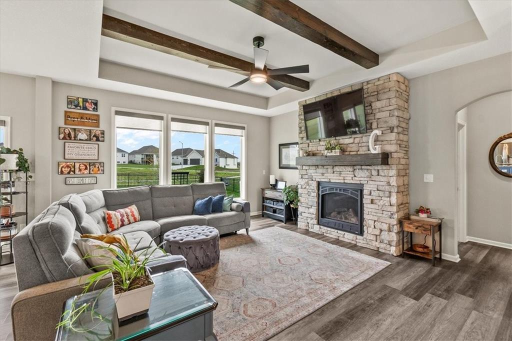 This house is better than new!! Over $40k in upgrades! Seabrook II plan, builder is Gianni Homes. Kitchen has granite counters, custom cabinets, & walk-in pantry. Stainless Steel Appliance, 5 Burner Gas Stove, convection oven with bluetooth! Gorgeous LVP Flooring that's scratch resistant. Great room is so bright and open with floor to ceiling fireplace & wood beams added to the ceiling. Custom blinds in upstairs rooms, Laundry in off the primary bedroom that walks through to the custom-built closet. The primary bathroom has a zero-entry huge shower with granite countertops. Lower level feels even more spacious with it's HIGH Ceilings, a wet bar, a 2nd family room, 2 more bedrooms, and a 3rd FULL bath! There are 2 large storage areas as well, perfect for a craft room or a home gym!! Fully fenced yard with a covered patio. Walking trails right behind the house, sprinkler system up front. The amenities include a community POOL, Pickleball Court, Sport Court, a Putting Green, TRAILS, a Playground, Walking Trails & more!! There is a brand new school, minutes away! This AMAZINGLY well-taken care of house is ready for you!!!! Hurry and come take a look, bc this won't last long as we priced it TO SELL!!!