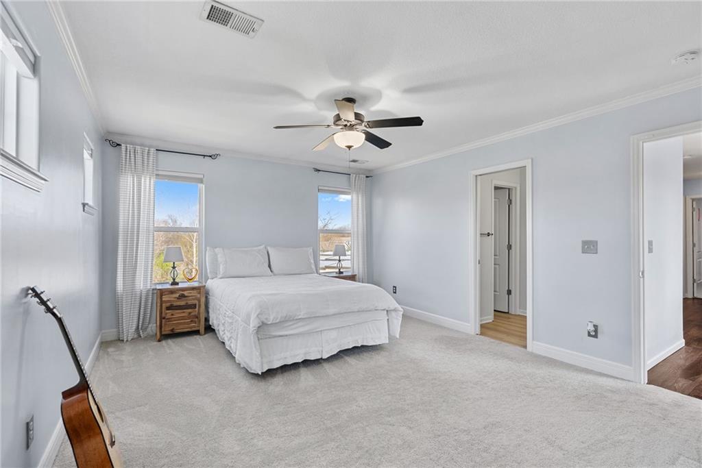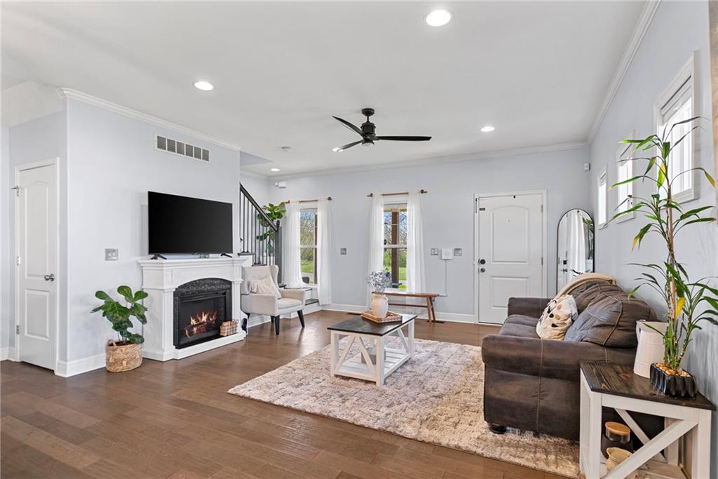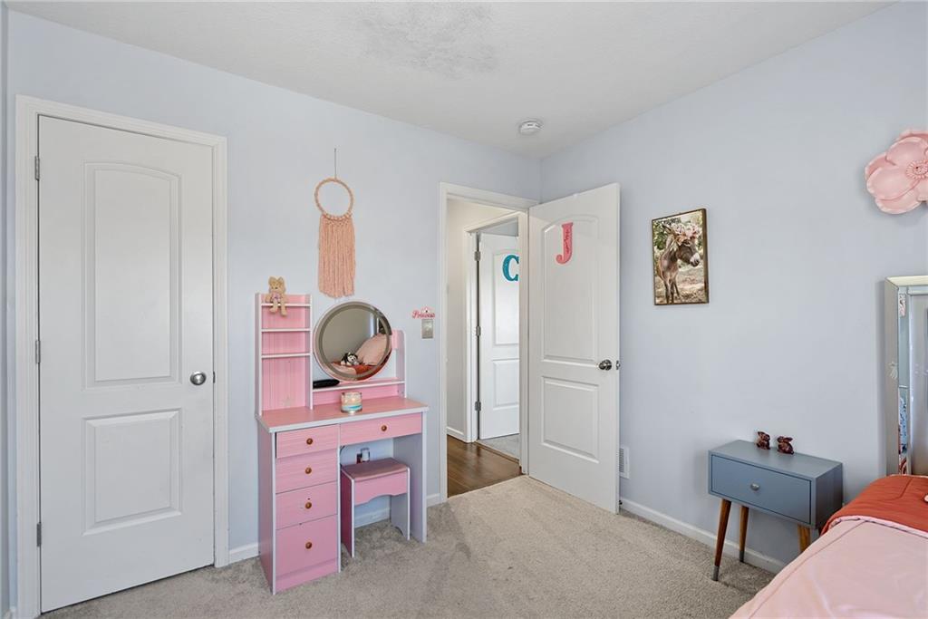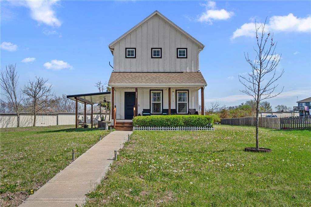 Welcome to this beautifully updated farmhouse-style two-story home, situated on a spacious lot with a charming front porch, rear-entry attached two-car garage, and a driveway accommodating up to six vehicles. Recent improvements include a new covered patio and updated stairs. The open main level offers fresh paint, abundant natural light, crown molding, and a well-appointed kitchen featuring granite countertops, an island, and a walk-in pantry. The second floor includes three bedrooms, two full baths, and a convenient laundry room. The primary suite features a double vanity and a large walk-in closet. Located at the end of a quiet street in a newer neighborhood with excellent highway access, this home is truly a must-see.
