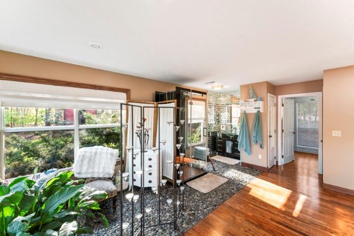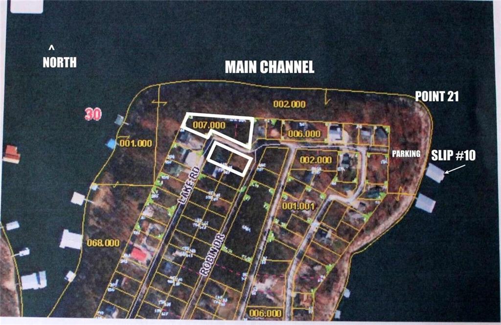 Boat slip and PWC deck INCLUDED. Beautiful lakefront home in the heart of the Ozarks with incredible main channel views and a peaceful, private setting. This 1,540 sq ft home features a spacious lakeside 1000sq. ft. deck with hot tub, plus a 10'x26' boat slip with 6000lb. lift just a short 2-minute walk away. Inside, you'll find cherry cabinets, granite countertops, wood floors, custom finishes, and a cozy wood-burning fireplace. The large master suite offers deck access, a walk-in closet, and a newer rain/steam shower. Enjoy wooded privacy, fire pits, wildlife, and a quiet neighborhood with a convenient boat launch nearby. The property includes four lots with over 400 feet of lake frontage, plus an additional buildable lakefront lot and two lots across the road--one with a 30'x40' insulated shop/garage featuring two overhead doors, two walk-in doors, four windows, and is wired for 110 and 220 volts, with an additional 30-amp 110-volt RV outlet outside. Well-maintained home, with recent septic service and a current Corp vegetation permit.