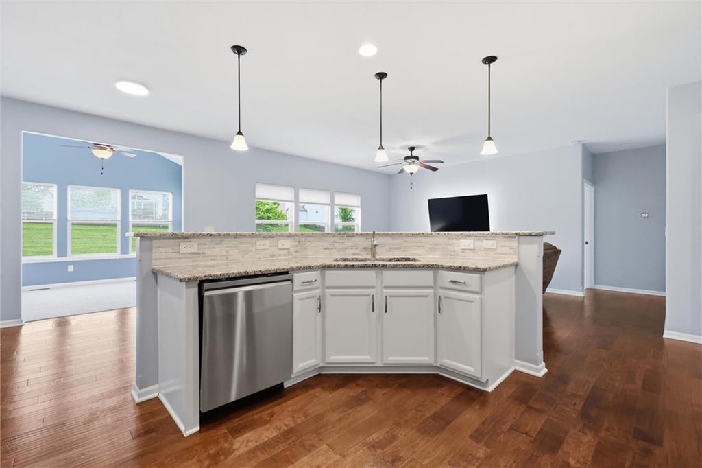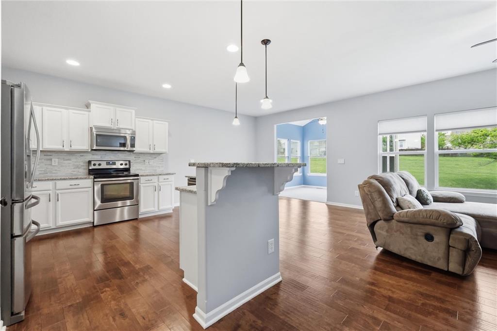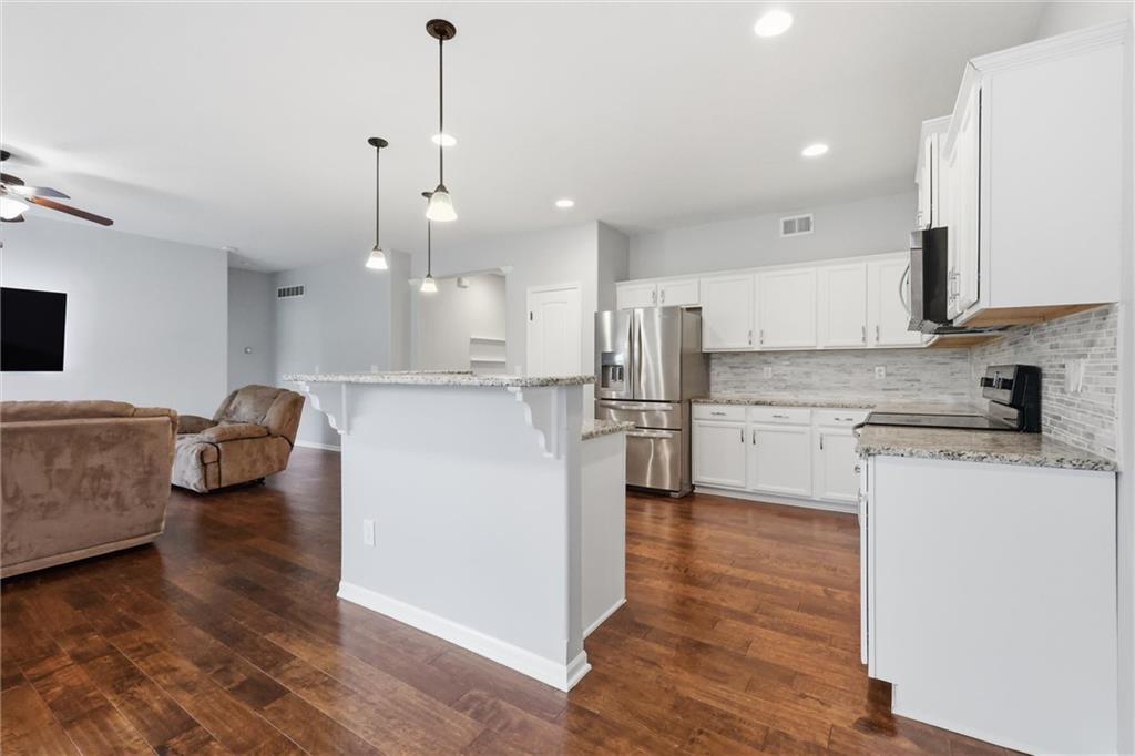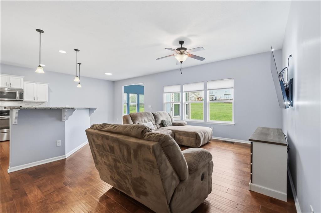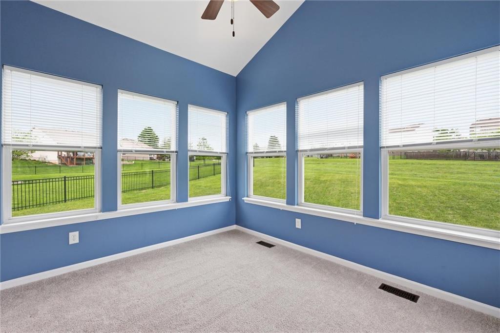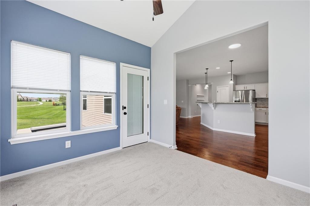 Looking for true main-floor living? This ranch-style home checks all the boxes. Built in 2012 on a quiet cul-de-sac, this home offers the functionality of newer construction with thoughtful updates that align with today’s style. Enjoy open-concept living with a spacious living room that flows seamlessly into a beautifully updated kitchen featuring a large center island, granite countertops, stainless steel appliances, and a modern backsplash—perfect for both everyday living and entertaining. A standout feature is the vaulted-ceiling bonus room, filled with natural light surrounded by expansive windows. This sunroom offers the perfect space to relax and enjoy the view into the community walking path and green space right off the back patio. The primary suite is a true retreat with a large en-suite bathroom, complete with double vanities, a tiled walk-in shower, and a spacious walk-in closet. Two additional bedrooms, a full bathroom, and a conveniently located laundry room complete the main level. The basement provides storage or the opportunity to finish in order to double the living space. Step outside to enjoy summer evenings on the back patio. Don’t miss this one—schedule your showing today!