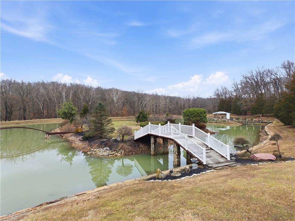 Welcome to your Dream Retreat in Columbia, Missouri! Nestled on 26 breathtaking acres, this one-of-a-kind property offers the perfect balance of luxury living and outdoor recreation. The land features a stocked private lake complete w/ islands and bridges, creating a stunning centerpiece that feels like your own private resort. Property is loaded w/ deer and turkey, making it an exceptional retreat for wildlife lovers and outdoor enthusiasts. The 7,500 sq ft custom home has been meticulously cared for and is filled w/ high-end features throughout. From the granite entryway, you’ll appreciate the craftsmanship and attention to detail, including hand-scraped teak floors, a stunning curved staircase, and 2 fireplaces. The home offers 4 spacious bedrooms and 5 bathrooms, along with a quiet study, large office space, abundant storage, and an attached three-car garage. The fantastic kitchen is built for both everyday living and entertaining, featuring a Wolf gas stove, high-end appliances, a hidden pantry, and generous storage space throughout. Just off the main living area, the sunroom provides the perfect place to relax and watch the wildlife, overlooking the incredible scenery this property has to offer. The luxurious master suite includes a spa-like bathroom equipped with heated floors, TV, coffee maker, and refrigerator, as well as a large walk in closet. The finished basement is designed for entertaining, featuring a spacious entertainment area along with a bar and small kitchen, making it the ideal place to host guests, watch the big game, or unwind after a long day. Outside, the property also includes a large two-story outbuilding with potential living quarters, providing endless possibilities for guests, a workshop, or additional storage. This rare 26 +/- acre estate truly offers the best of both worlds - a private retreat with incredible scenery, wildlife, and recreation located just 7 miles from downtown Columbia. Opportunities like this are incredibly rare!