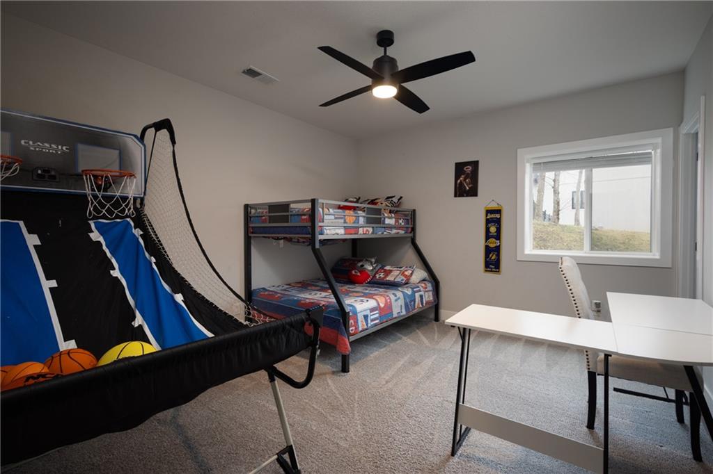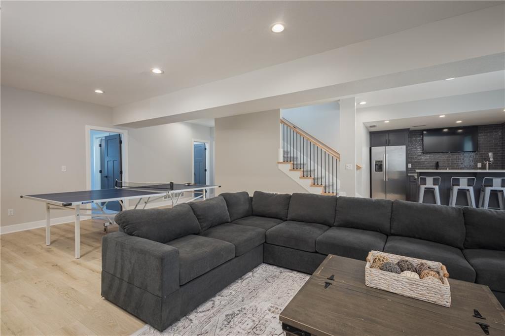 Experience resort-style living in this stunning 4.5-year-old reverse ranch with 4 bedrooms & 3 bathrooms with upscale finishes and exceptional amenities throughout. Designed for both everyday comfort & elevated entertaining, this home truly has it all. Step outside to your private oasis featuring a heated saltwater/chlorine pool complete with a built-in basketball goal, expansive outdoor kitchen with premium Blaze appliances & a half-court sport basketball court—perfect for hosting or relaxing in style. Inside, the main level showcases real 5” hardwood floors & a chef’s kitchen outfitted with top-of-the-line Café appliances, including an Advantium oven. A spacious walk-in butler’s pantry provides additional cabinetry & a beverage refrigerator for ultimate convenience. The finished basement is an entertainer’s dream, featuring a full-size bar with a built-in kegerator. The luxurious primary suite is a true retreat, boasting heated bathroom floors, dual shower heads including a rain feature, tall ceilings with a marble accent wall & a TV positioned above the soaking tub for added relaxation. The oversized walk-in closet includes a built-in dresser, custom shelving, and three-tiered hanging rods. Additional highlights include a functional mudroom off the garage, enhanced interior and exterior lighting, generously sized bedrooms with walk-in closets, and premium finishes throughout. Situated on over ¾ of an acre, the property offers a picturesque setting with mature trees, green space, and a striking stone wall. Enjoy exclusive access to the lake with a community dock slip and available lift lease, plus the added benefit of 2026 HOA fees covered for the new owner. The neighborhood enhances the lifestyle with amenities including a park, walking trails, pickleball and tennis courts, a yacht club & an upcoming community pool & clubhouse. Don’t miss this rare opportunity to own a home that perfectly blends luxury, recreation, and tranquility. *Owner/Agent*