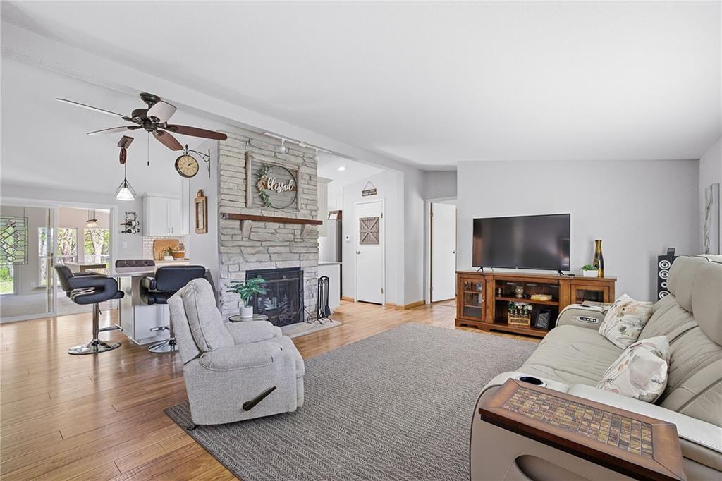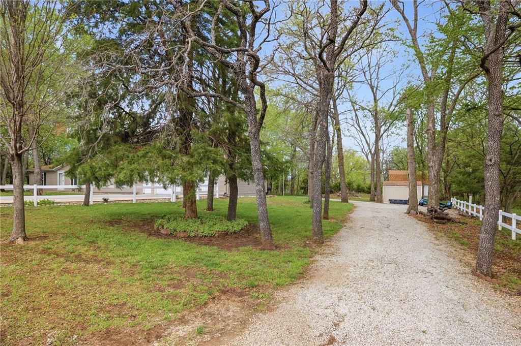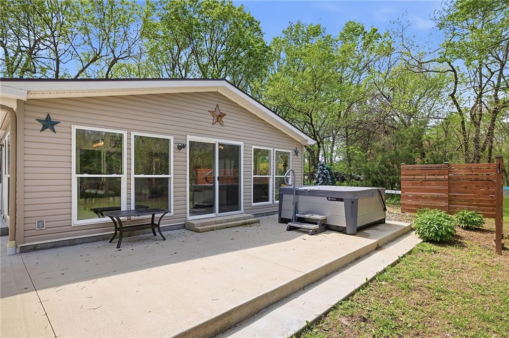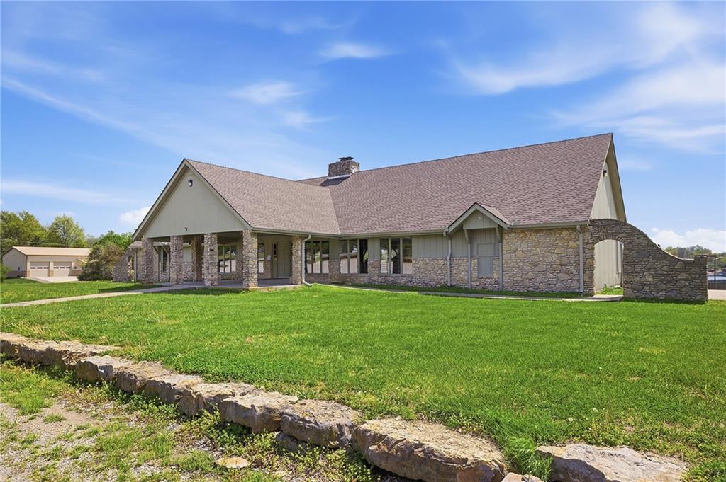 Beautifully updated ranch home, a rare find that offers exceptional privacy and space spread across four combined lots in the gated Linn Valley Lakes community. The interior boasts a spacious open layout with soaring vaulted ceilings, refreshed with bright paint colors and a whitewashed stone fireplace, stylish luxury vinyl plank flooring, and elegant plantation shutters throughout. At the heart of the home is a large kitchen featuring sleek quartz countertops, a walk-in pantry, and plenty of space for gatherings, making it an entertainer's dream. The home also features a large primary suite and an impressive sunroom that provides significantly more square footage to the living space while flooding the home with natural light. Oversized 26x30 garage. Practicality meets the lake lifestyle with two outbuildings on-site, perfect for storing all your lake toys, tools, and gear. Major updates provide peace of mind, including a one-year-new roof, and while the home currently utilizes a cistern, the ability to connect to city water is currently being installed across the street for easy future access. Outside, the level, treed grounds feature a huge patio, private fire pit, hot tub and paved drive all while granting you access to premier resort amenities like the 18-hole golf course, private lakes, and community pools. Welcome home to Linn Valley Lakes! HOA fees for this property include the lot the house sits on and an additional 3 adjacent lot. Each lot has an HOA fee for the cumulative monthly HOA fee that is listed. Taxes and SqFt per county record. Room sizes approx. No preferences or limitations or discrimination because of any of the protected classes under Fair Housing.