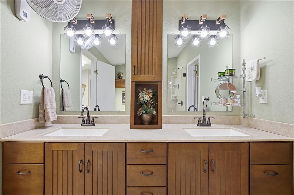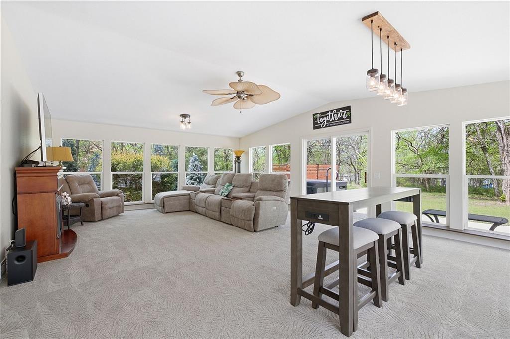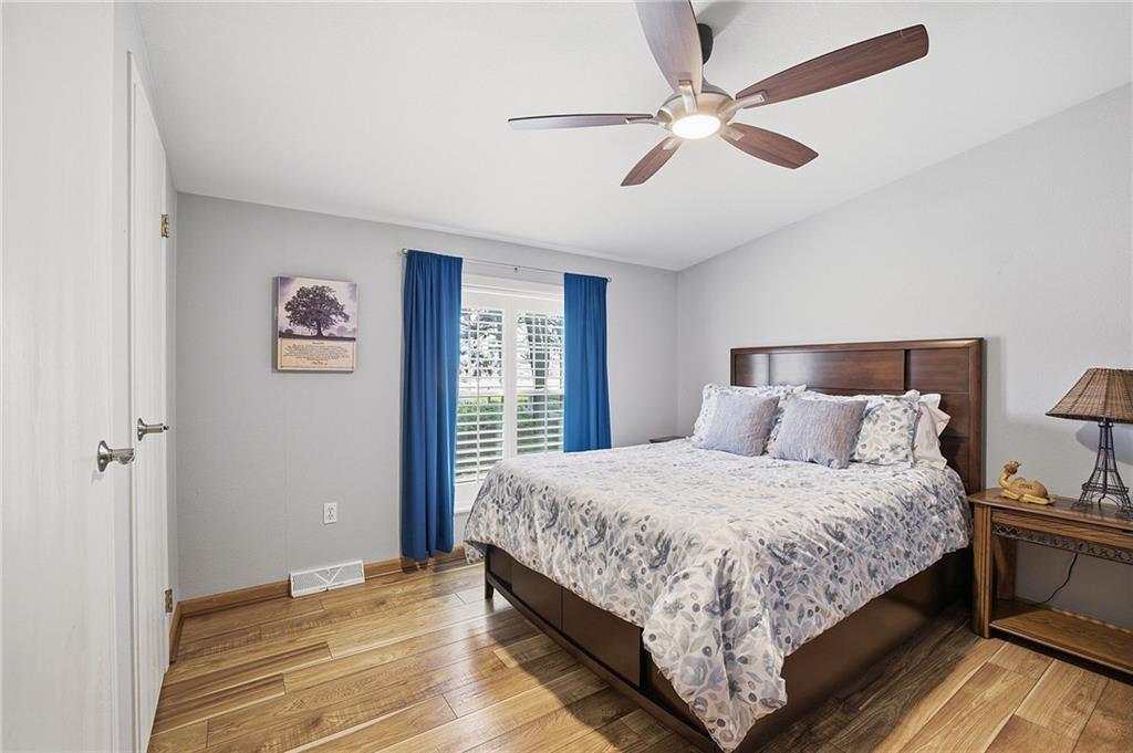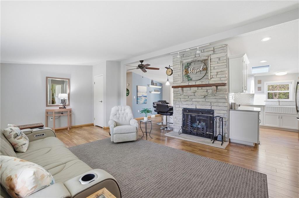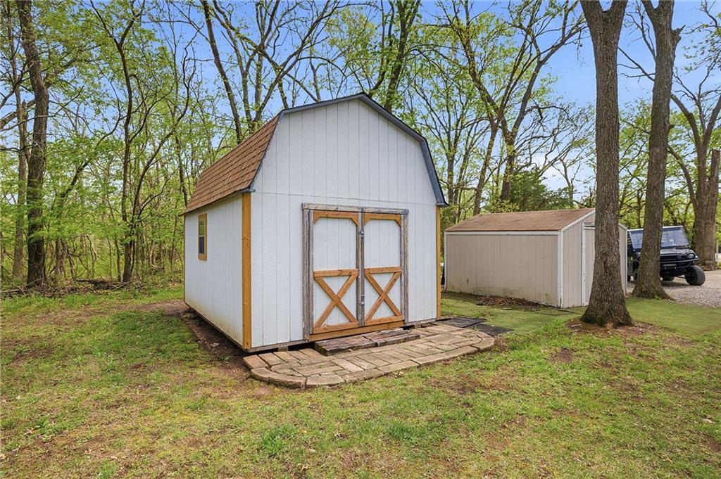 Beautifully updated ranch home, a rare find that offers exceptional privacy and space spread across four combined lots in the gated Linn Valley Lakes community. The interior boasts a spacious open layout with soaring vaulted ceilings, refreshed with bright paint colors and a whitewashed stone fireplace, stylish luxury vinyl plank flooring, and elegant plantation shutters throughout. At the heart of the home is a large kitchen featuring sleek quartz countertops, a walk-in pantry, and plenty of space for gatherings, making it an entertainer's dream. The home also features a large primary suite and an impressive sunroom that provides significantly more square footage to the living space while flooding the home with natural light. Oversized 26x30 garage. Practicality meets the lake lifestyle with two outbuildings on-site, perfect for storing all your lake toys, tools, and gear. Major updates provide peace of mind, including a one-year-new roof, and while the home currently utilizes a cistern, the ability to connect to city water is currently being installed across the street for easy future access. Outside, the level, treed grounds feature a huge patio, private fire pit, hot tub and paved drive all while granting you access to premier resort amenities like the 18-hole golf course, private lakes, and community pools. Welcome home to Linn Valley Lakes! HOA fees for this property include the lot the house sits on and an additional 3 adjacent lot. Each lot has an HOA fee for the cumulative monthly HOA fee that is listed. Taxes and SqFt per county record. Room sizes approx. No preferences or limitations or discrimination because of any of the protected classes under Fair Housing.