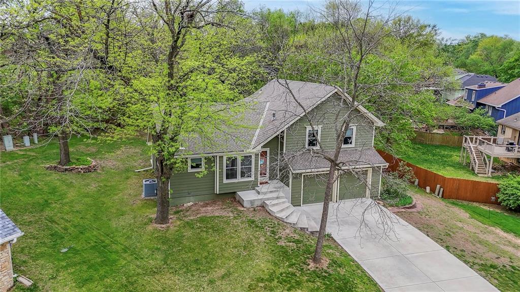 Don't miss this unique, split-level floor plan home in the Country Hill subdivision of Lenexa, Kansas. This home is on a quiet cul-de-sac with an attractive island in the middle. • Plenty of room for all with 4 bedrooms and 2 full bathrooms. • The home’s exterior looks like a new home with low-maintenance Hardie Board siding and windows installed in 2013. • Concrete work in 2021. • ROOF 2025 • NEW water heater. • Furnace, Air Conditioner, and Humidifier installed in 2021. • Stainless appliances in the Kitchen are all staying with the home. • There is a dining area in the Kitchen. • The separate Dining Room has a cool feature wall. • On the upper level you’ll find 3 bedrooms, an updated main bathroom, and a loft area with window seat and built-ins. • Three of this home’s bedrooms have custom closets. • The Primary Suite is on its own level—the lower level where the Great Room is located. The primary bathroom was enlarged and has abundant, beautiful cabinetry and Onyx shower/countertops. • The great outdoors is accessed from the Great Room; there are 2 sliding doors to the patio. • This home’s lot is over a third of an acre with trees that give so much privacy. • The Laundry area is currently in the basement, and the washer/dryer stay with the home. The laundry closet in the kitchen is currently being used as a pantry. • The 2-car garage has new door openers. • Plenty of storage is available with shelves in the garage and in the basement. • The basement has a rec room, storage shelves, and the laundry • Old Republic Home Warranty Gold Plan already in place for your peace of mind! • The HOA takes care of trash pickup and curbside recycling for $325 per year.
