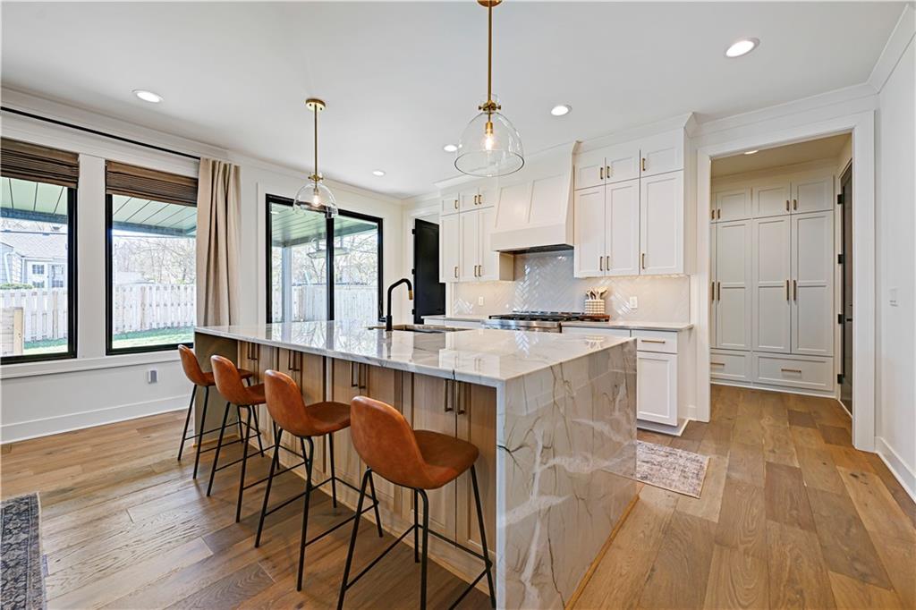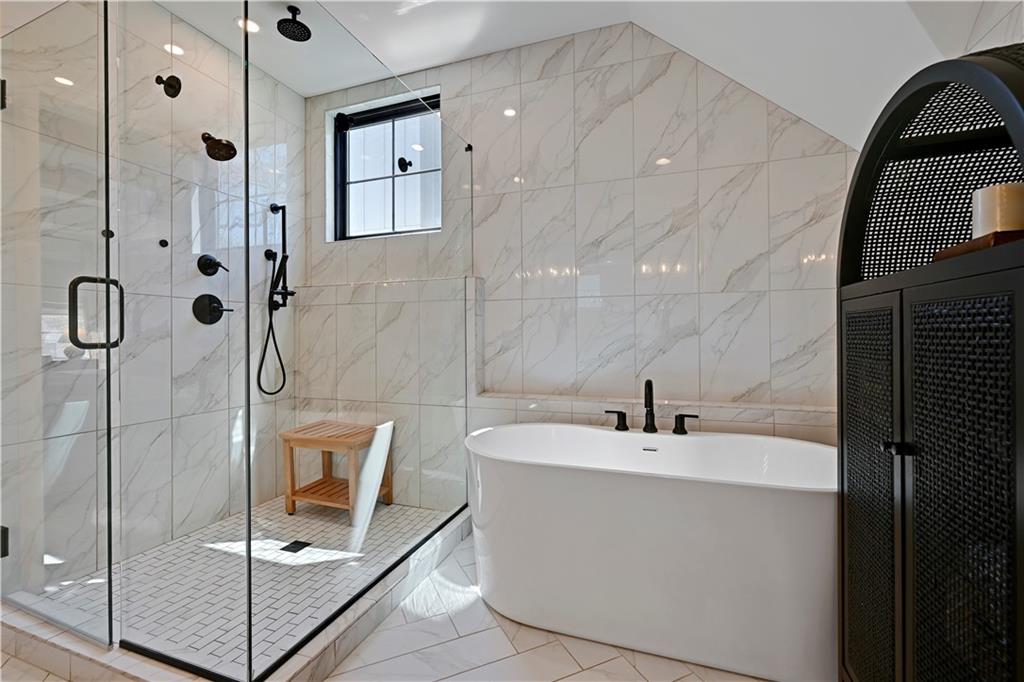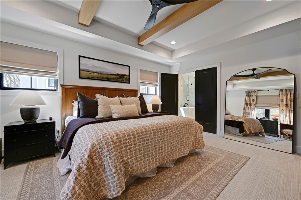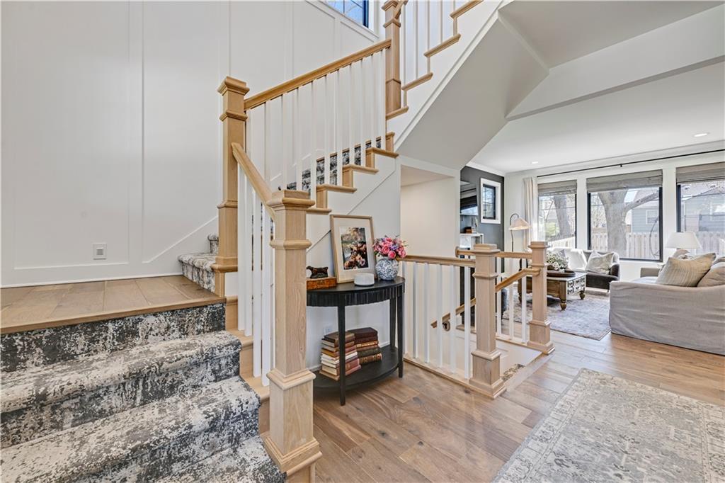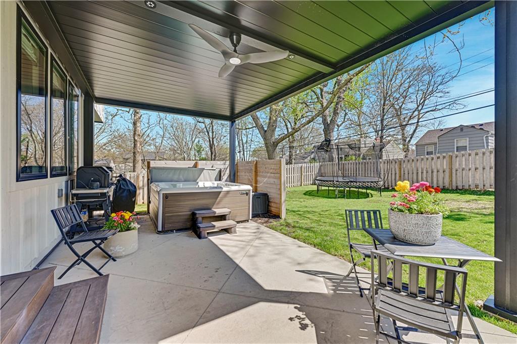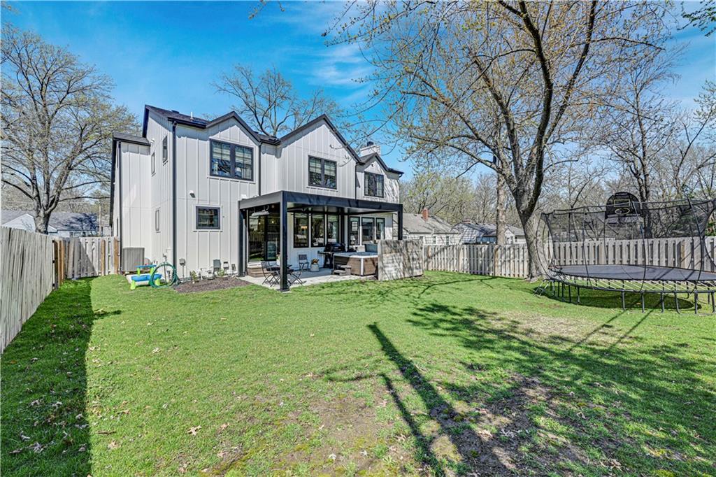 Welcome to this stunning, nearly new 2.5 year old modern farmhouse in the heart of Prairie Village. This beautifully crafted 2 story home by MOJO Built offers 5 bedrooms, 4.1 baths, and is thoughtfully designed for both everyday living and entertaining. The main level features a private front office, spacious living area, and generous dining space. The open concept kitchen is a showstopper with expansive cabinetry, a large quartz island with storage on both sides, a dedicated coffee/drink bar, and a walk in pantry. All appliances remain with the home. Upstairs, you will find 4 bedrooms and a conveniently located laundry room. Three secondary bedrooms include a jack and jill bath plus an additional private ensuite. The owners suite is a true retreat, featuring a vaulted ceiling with beams, a spa like bathroom with soaking tub and walk in shower, abundant counter space with under cabinet lighting, and an oversized walk in closet. Enjoy outdoor living with a recently added adjustable pergola, hot tub, and fully fenced backyard, perfect for relaxing or entertaining. Additional highlights include Anderson windows, an EV outlet in the garage, an oversized 2 car garage, large storage room under the suspended garage, and a charming covered front porch. Ideally located near multiple parks and just minutes from Prairie Village shops, this is one you will not want to miss!