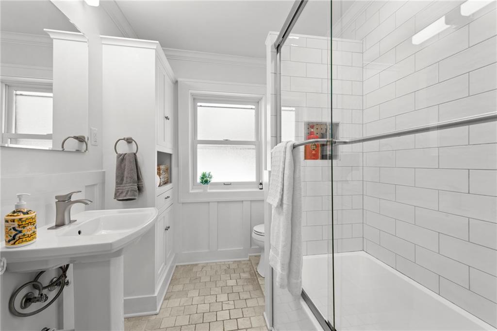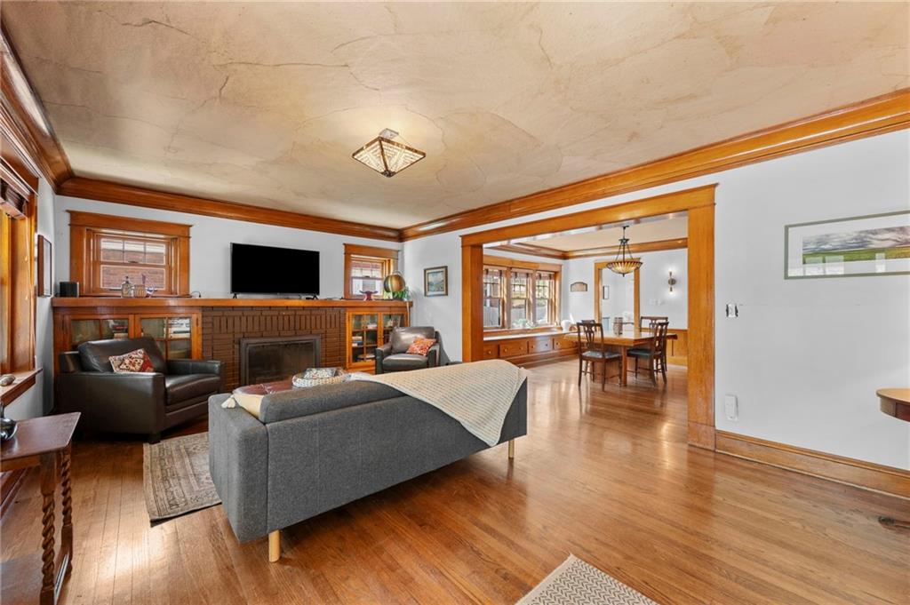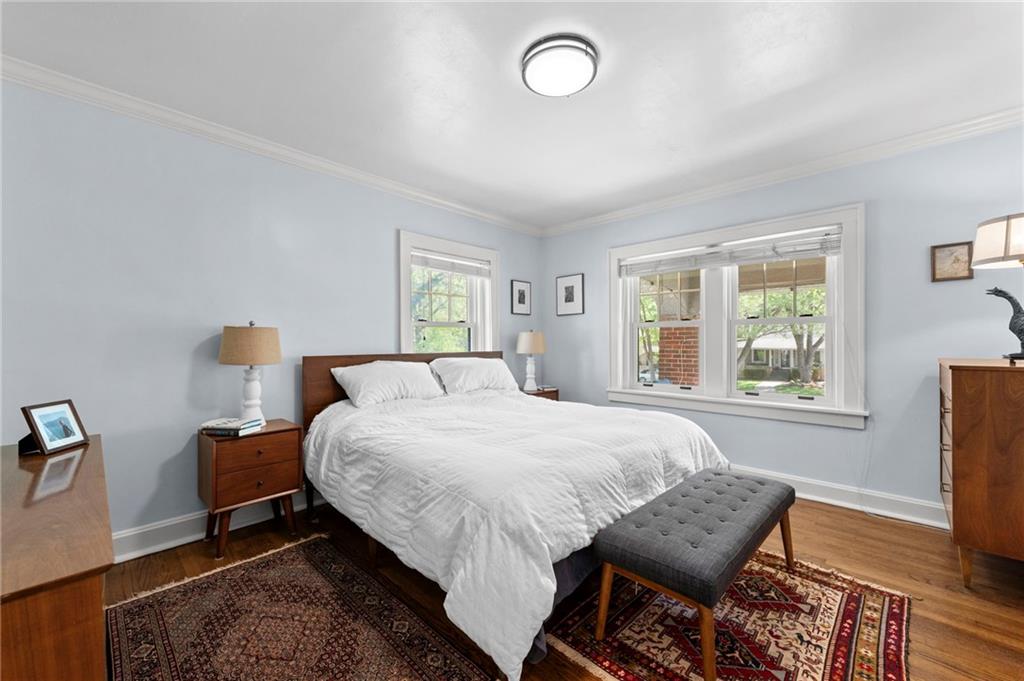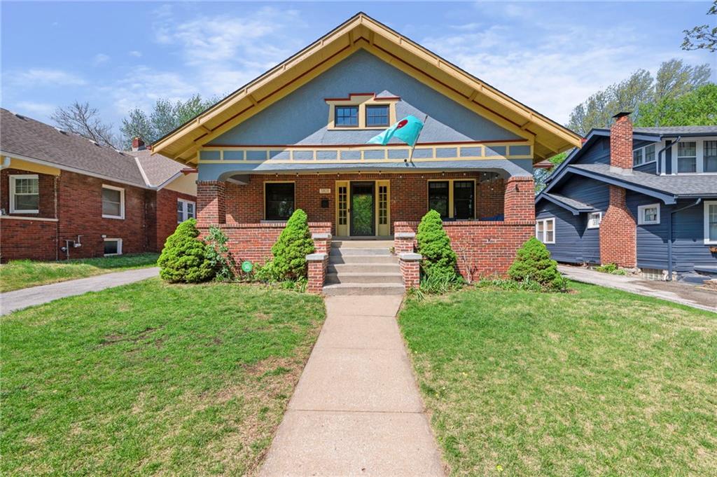 This traditional Brookside home is located on a desirable street with an inviting front porch and tons of charm! The living and dining rooms are generously sized for the area and feature original woodwork and built-ins and beautiful hardwoods throughout. Gorgeous Kitchen has been remodeled with high-end finishes, stainless appliances and features a breakfast room. New roof, newer HVAC, and Renewal by Andersen windows throughout. Large expandable unfinished attic offers significant opportunity to add square footage, including potential for a primary suite (stubbed for plumbing). Unfinished basement is super clean with high ceilings and egress windows. Private drive and one-car garage provide off-street parking. Convenient location with walkability to UMKC and Rockhurst, local restaurants (Earls' Premier is 1 block away), Crestwood and Brookside shops, and the Trolley trail.