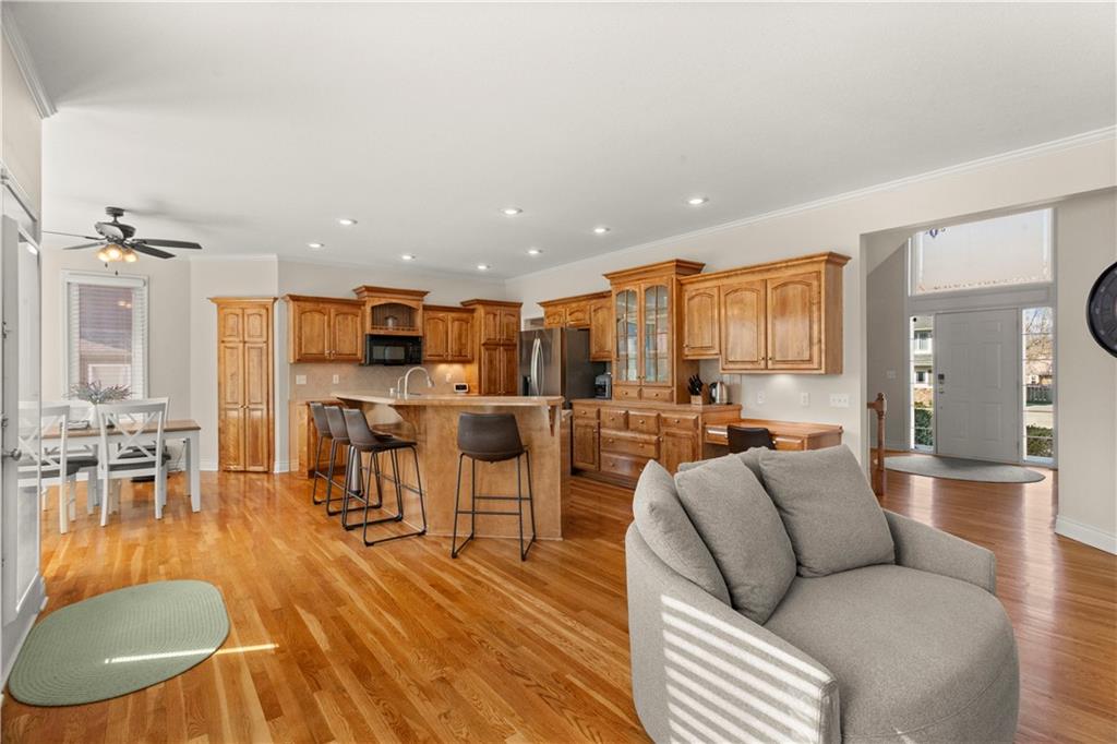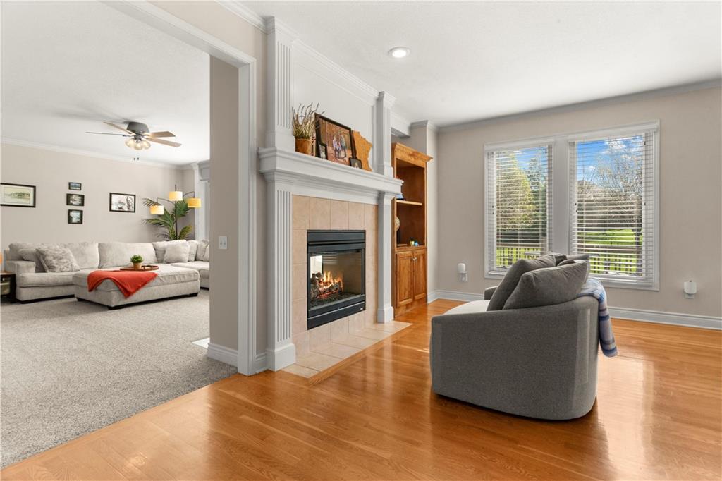 This is a true stunner in the coveted Paddock neighborhood, where pride of ownership shines throughout. You’ll immediately notice the abundance of natural light pouring in through oversized, newer (all replaced 2-3 years ago) windows. A spacious entry welcomes you and flows seamlessly into the main living areas. The well-appointed kitchen offers ample cabinet and counter space, a large island, walk-in pantry, and casual dining area. It opens to a cozy hearth room with a see-through gas fireplace shared with the adjoining family room—generously sized and highlighted by a bow window that maximizes natural light. The kitchen and family room overlook a gorgeous, fully fenced backyard—perfect for entertaining—with a 17x14 deck and matching sized patio pre-wired for a hot tub. A formal dining room with elegant trim adds versatility, while a half bath and spacious laundry room with built-in sink complete the main level. Upstairs, accessible by two staircases, you’ll find an inviting primary suite with a spacious bedroom and a well-appointed ensuite featuring double vanities, a whirlpool tub, and a truly impressive walk-in closet. Three additional bedrooms all include walk-in closets—one with a private bath, the others connected by a Jack-and-Jill. A bright loft with vaulted ceiling and skylight offers the perfect reading nook or flex space. The finished daylight basement includes a 5th non-conforming bedroom or office, along with high-quality finishes ideal for a theater or workout area. An attached bar space, plus room for a game table, a 4th full bath, and generous unfinished storage complete the lower level. Zoned HVAC adds efficiency, and the oversized 3-car garage easily accommodates a full-size truck. The carpets in the home were replaced about 2-3 years ago. There is also a battery back-up system on the sump pump.