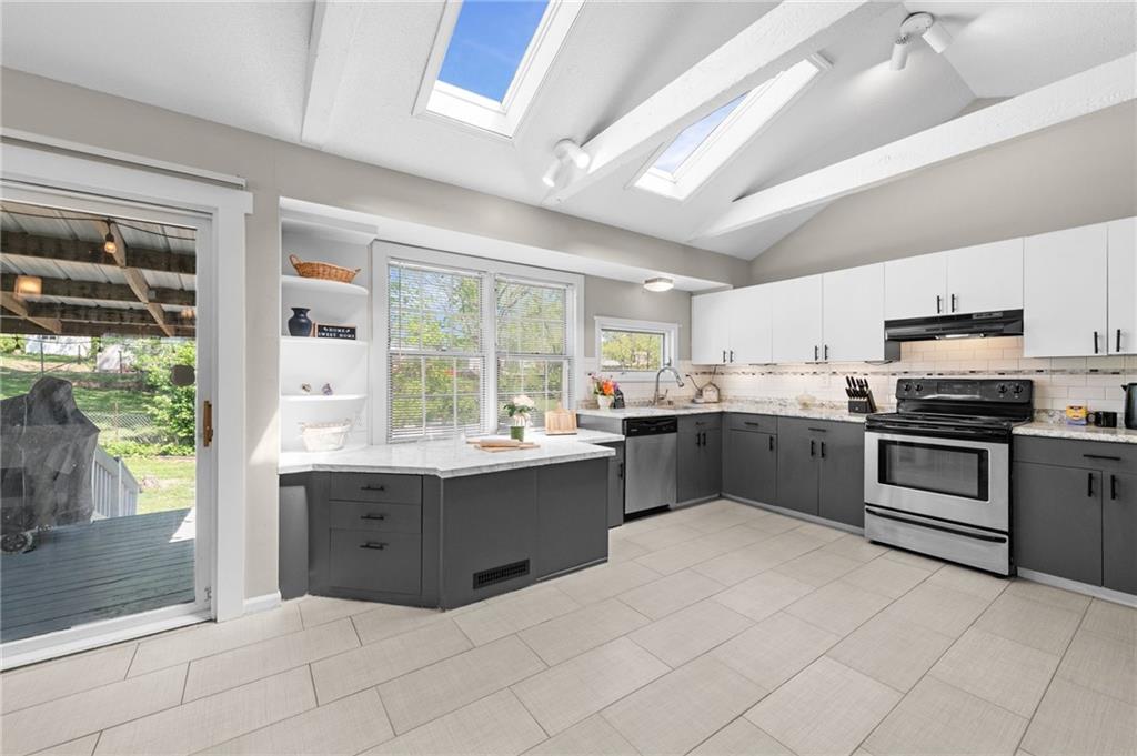 Welcome this beautifully updated gem nestled in one of the Northland's most central neighborhoods! From top to bottom, this 3-bedroom, 2-full-bath showstopper has been updated and is ready to impress! Step inside the living space surrounded in natural light. The spacious eat-in kitchen features painted cabinets, vaulted ceilings, and a seamless flow to the deck ideal for entertaining, morning coffee, or weekend barbecues. The upper level offers three generously sized bedrooms and two full bathrooms, providing comfort and flexibility for family and guests. A large finished lower level features a family room with a stunning brick fireplace. Whether you envision a rec room, home theater, gym, or playroom, the possibilities are endless. Nearby Amenities – Minutes from North Oak Trafficway shopping corridor, Zona Rosa Town Center (~10 min), and a variety of retail, dining, and entertainment options Downtown Kansas City ~ 10-15 min Kansas City International Airport (KCI) ~ 18-20 min
