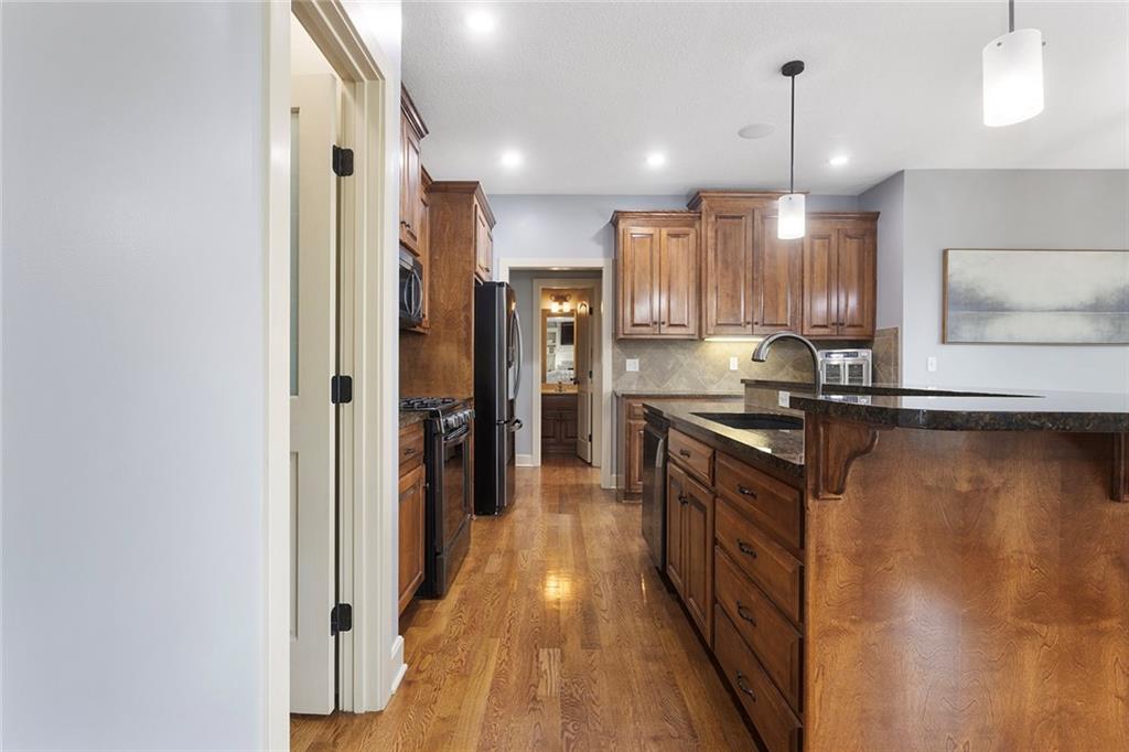 Welcome to this spacious and beautifully appointed two-story home in desirable South Olathe! Offering 5 bedrooms and 3.5 bathrooms, this home combines comfort, functionality, and scenic surroundings. The main level features stunning hard oak wood flooring and an abundance of large windows that fill the space with natural light while showcasing peaceful views of the wooded greenspace behind the home. The inviting living room centers around a cozy fireplace and flows seamlessly into the adjacent kitchen—perfect for both everyday living and entertaining. The kitchen is thoughtfully designed with beautiful cabinetry, granite countertops, and a convenient walk-in pantry. Just off the kitchen, you’ll find a dedicated laundry area for added ease and efficiency. A formal dining room sits at the front of the home, offering a more traditional space for gatherings and special occasions, complete with comfortable carpeting. Upstairs, the bedrooms feature plush carpeting and spacious bathrooms, creating comfortable retreats for family and guests alike. You’re sure to love the finished walkout basement, complete with a 5th bedroom, full bath, and a convenient kitchenette. This space lives like separate quarters—ideal for guests, extended stays, or multi-generational living—and opens directly to the patio, with a composite deck above for even more outdoor enjoyment. Step outside to enjoy the backyard firepit, perfect for relaxing evenings under the stars. Additional upgrades include whole-home sound wiring and programmable exterior holiday lighting for year-round convenience and charm. Don’t miss this opportunity to own a beautiful home on a well-kept lot in a sought-after location!