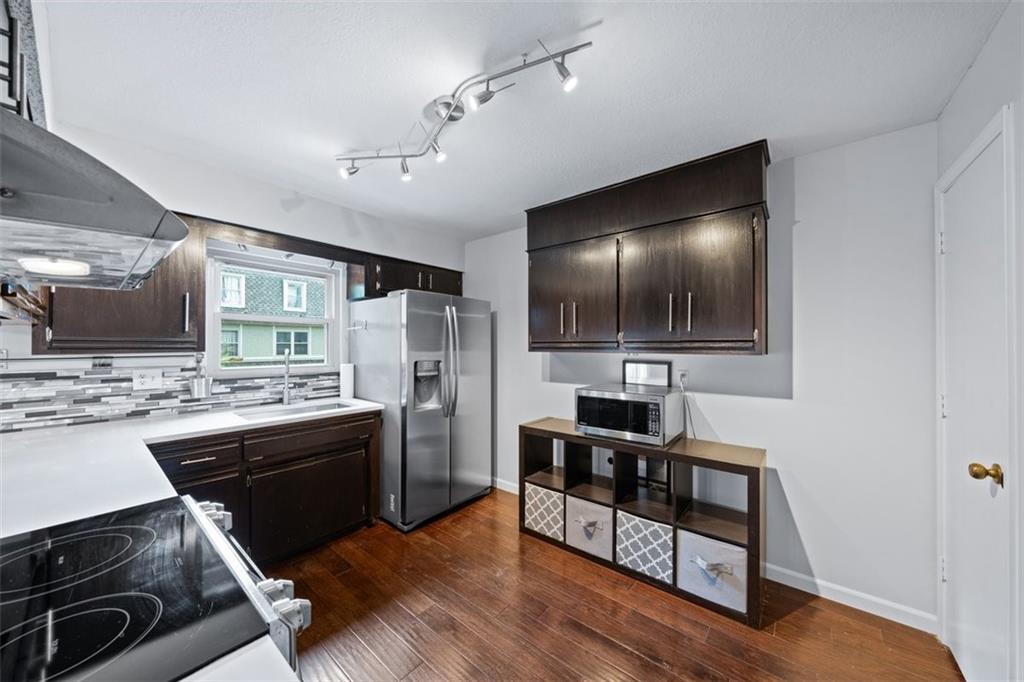 Quiet end unit tucked away near the trees in a great location that makes commuting a breeze with super quick freeway access. Tons of updates and move in ready!! Fresh paint throughout and new carpet in the bedroom level and new flooring in the lower level family room. Gorgeous kitchen with white Quartz counters and stunning backsplash with stainless steel appliances that stay. Upstairs has 3 bedrooms and 2 full baths (hall bath and primary bedroom has an ensuite). The main level has a large living room with a fireplace and a half bath plus the kitchen and dining room with sliding door to the deck. The lower level has the laundry room and a large family room with a sink, toilet and shower and access to the garage, along with a bar area and a walkout to the covered patio. Brand new 97% HE furnace. All the heavy lifting has been done, nothing to do but move in and enjoy the peaceful deck and the community swimming pool! HOA covers building maintenance, lawn maintenance, snow removal and trash. Owner occupants only.
