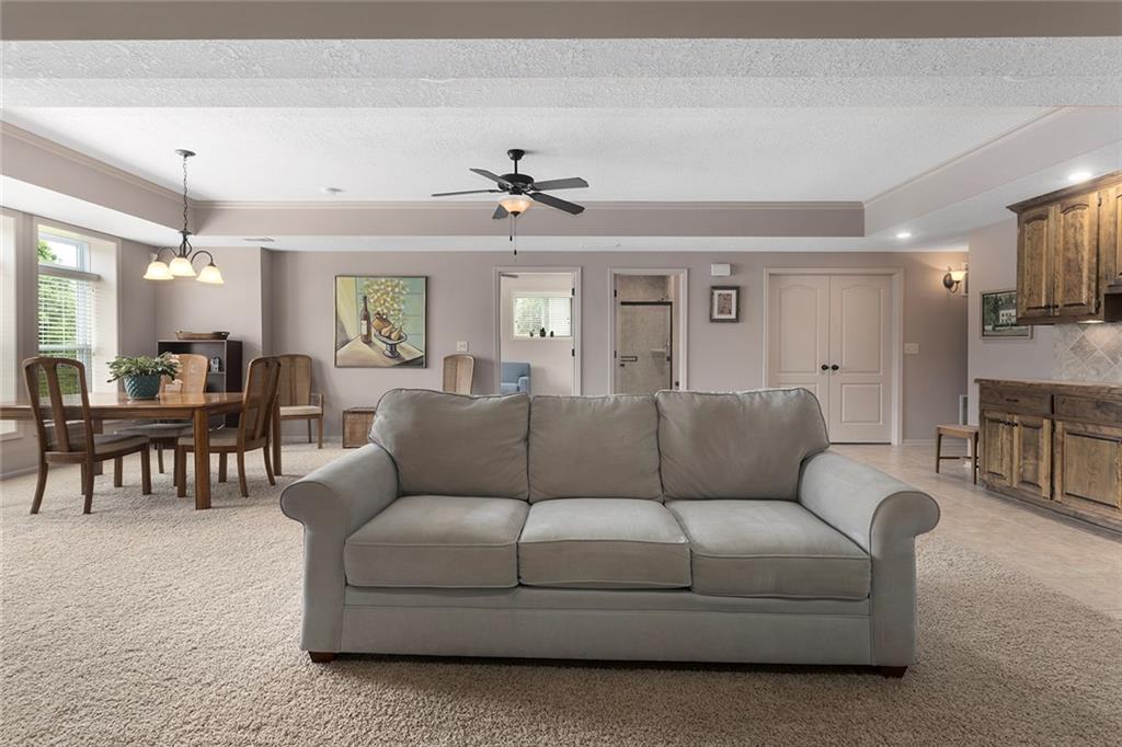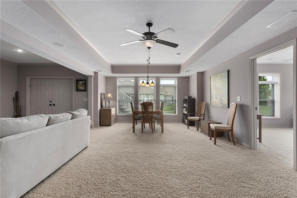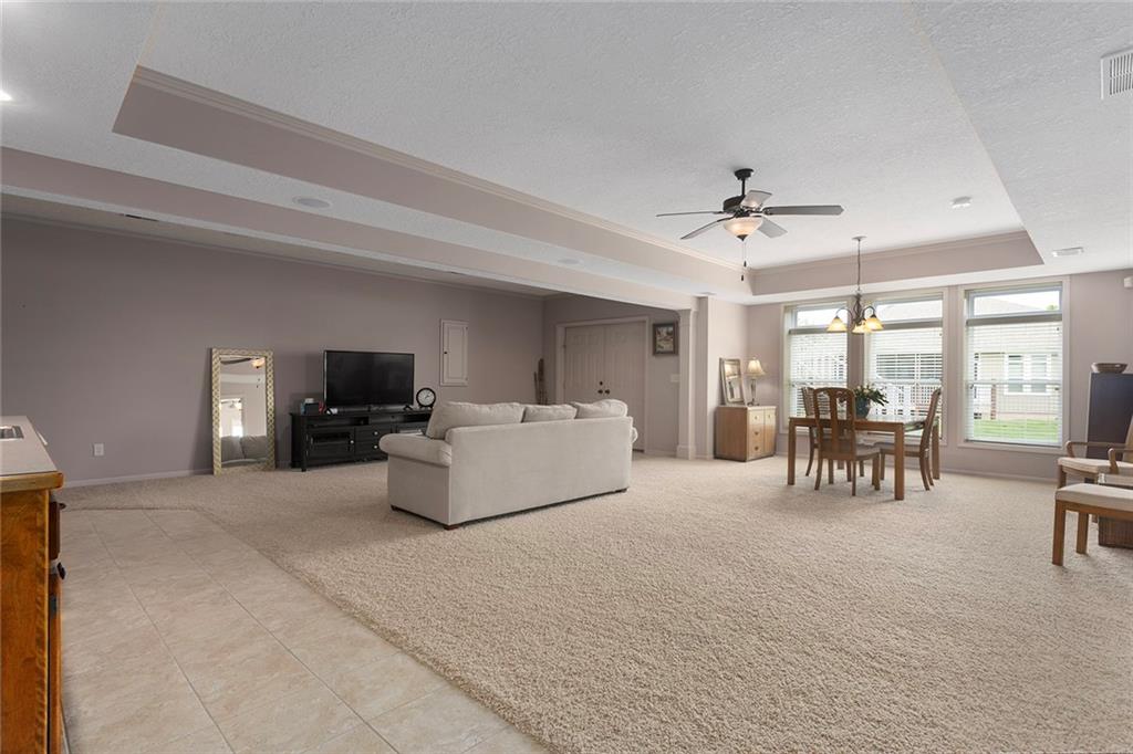This beautifully maintained home is located in the highly sought-after Fountains at Raintree, a 55+ community nestled within the scenic Raintree Lake subdivision. Residents enjoy full access to Raintree's amenities, along with the added convenience of included lawn care and snow removal. The home features a spacious main-level primary suite, along with a second bedroom and full bathroom for added flexibility. A bright and inviting sunroom fills the space with natural light, creating a peaceful setting to relax and unwind. The walkout lower level offers an open layout with full-size windows, ideal for entertaining or additional living space. A third bedroom on this level provides privacy for guests, along with generous storage throughout. Recent updates by the current owners include a newer HVAC system, hot water heater as well as full replacement of the driveway. This move-in-ready home is perfectly suited for its next owners to enjoy comfort, convenience, and community lake living at its finest.