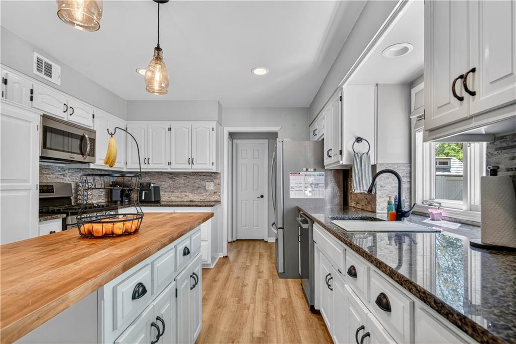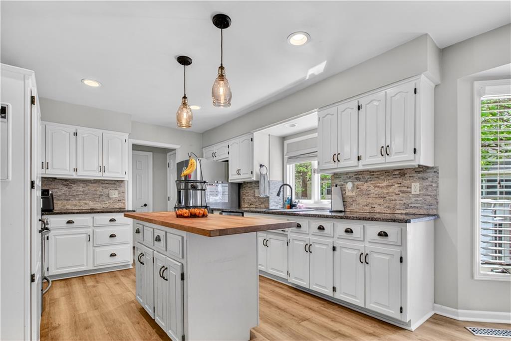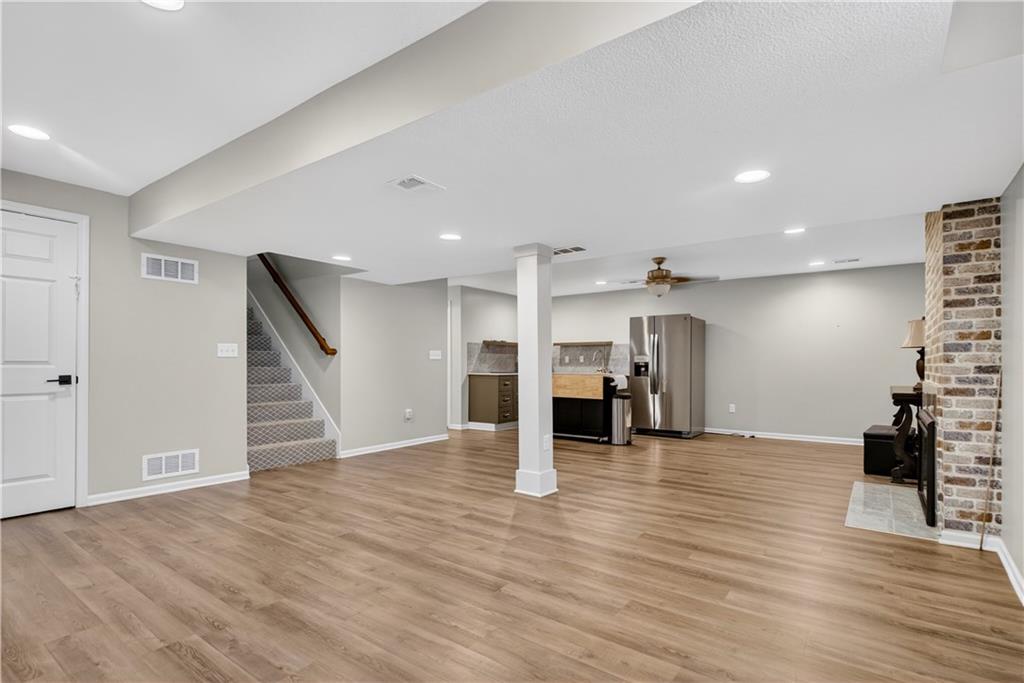 BEAUTIFUL two-story home in the heart of Lenexa offers the perfect blend of space, functionality, and flexibility. The main level welcomes you with an open-concept layout featuring a spacious living room, wall of windows with abundant natural light, and a seamless flow into the family room with fireplace and well-appointed kitchen featuring stainless appliances, pantry, backsplash, gas stove, wood island and granite counters—ideal for both everyday living and entertaining. Upstairs, you’ll find generously sized bedrooms, including a comfortable primary suite with a private bath that includes a soaker tub, double vanity and dual walk in closets. Three additional bedrooms provide versatility for family, guests, or a home office. The fully finished basement adds exceptional value with its own private living quarters—perfect for extended family, guests, or potential rental income. This separate space includes a bedroom, full bathroom, living area with fireplace, full kitchen, dining area and washer/dryer hookup offering both privacy and independence. With its thoughtful layout and multi-generational living potential, this home is designed to meet a variety of lifestyle needs while maintaining comfort and style throughout. Fully fenced yard with trees for privacy and a deck for entertaining. Close to the Lenexa City Center offering a variety of dining and entertainment.