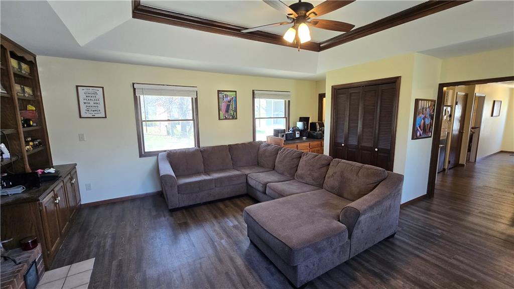 What a rare find! This comfortable home has 4 bedrooms and 2 & 1/2 bathrooms on over half an acre in Cameron, MO! The large living room with a brick wood-burning fireplace surrounded by wood built-in storage has plenty of windows for natural light, a wet bar with lots of pantry space, and a walkout to the back deck. The kitchen boasts granite countertops and a passthrough window to the living room. Full dining room area and full laundry room with wash sink on either side of the kitchen. The large primary bedroom has a full bathroom and walk-in closet. Three full bedrooms (one with a half bath) and a full bathroom are just down the hall. Fifth non-conforming bedroom and finished study/storage area downstairs. Spacious two-car garage on the basement level. Large 30'x30' detached garage with two 8't x 12'w doors give you plenty of space for vehicles, projects, and more! The large backyard has a tree with a swing and is fully fenced in. Plenty of space for entertaining on the back deck while the family plays! Don't miss this chance to own a home with this much to offer!