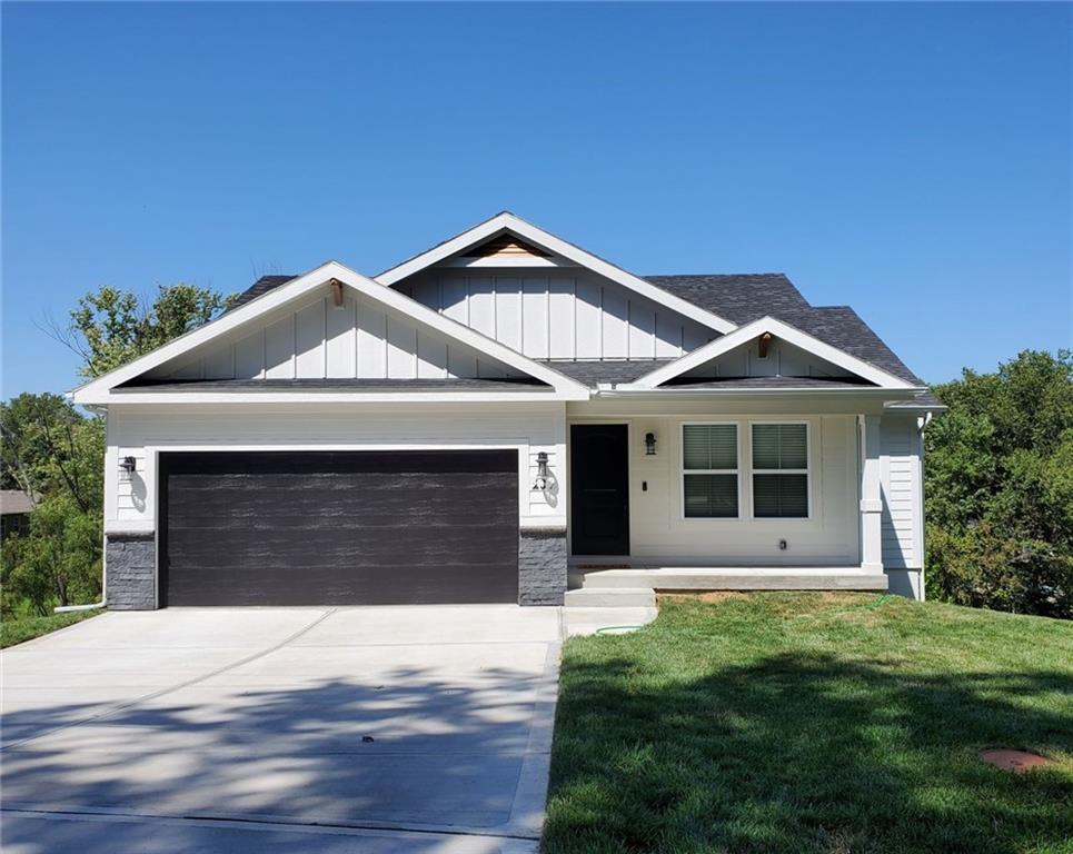 Stunning new construction Reverse 1.5 story in the *heart of Smithville* on a quiet cul-de-sac! **There is still time to make some paint color and flooring selections!! This thoughtfully designed home offers **main-level living** with an open-concept layout and abundant natural light. The Kitchen features custom cabinetry, large island, walk-in pantry and flows seamlessly into the Living area. Just off the main living area you can step out onto your deck to grill or enjoy your backyard! The main-level Primary bedroom has it’s own en-suite and large walk-in closet. A second Bedroom, full Bath and main level Laundry finish out the main level. The finished lower level with 9ft ceilings expands your living space with a large Family room, additional Bedroom and third full Bath, perfect for guests, work, or recreation…plus a generous storage area—no need to sacrifice space or organization! Enjoy brand new construction- zero updates, zero stress with a modern layout, flexible living spaces, ample storage and cul-de-sac privacy all in a prime Smithville location close to Northland amenities.