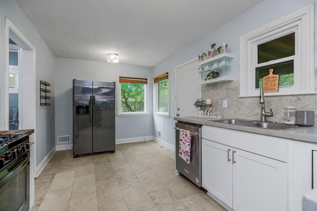 Gorgeous, updated mid-century gem in Waldo! This charming home features a living room with gleaming hardwoods and a cedar closet right at the entry. You'll also find a cozy family room down a few steps with a fireplace and stylish shiplap accents. The bright white kitchen is a showstopper with a gas range, Carrara marble backsplash, LVP flooring, and butcher block and concrete countertops. New fixtures throughout give the home a fresh, modern feel. Right off the kitchen is a convenient half bath. You’ll love the gleaming walnut hardwood floors, spacious bedrooms, and an updated full bath with tile flooring. Custom built-ins for tons of storage! Lower level unfinished with laundry. New gutters and A/C! Fenced yard with a covered patio for enjoying the seasons. All of this in an unbeatable location—just steps from the Trolley Trail, walking distance to South Oak Park, and minutes from shopping, dining, and the vibrant Waldo entertainment district. This one checks all the boxes—come see it before it’s gone!
