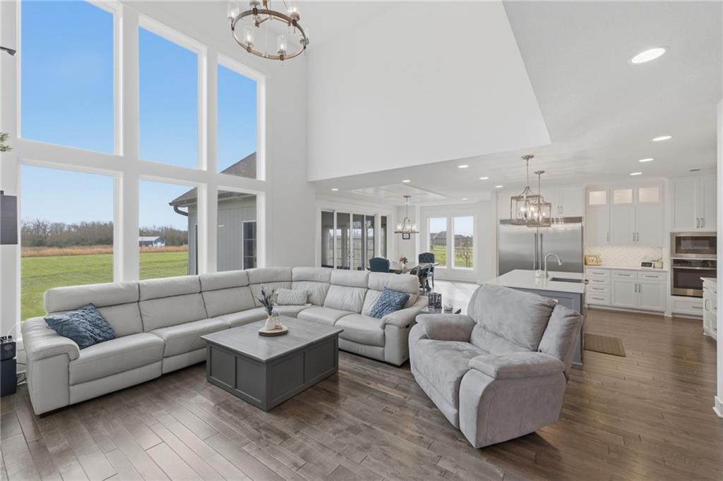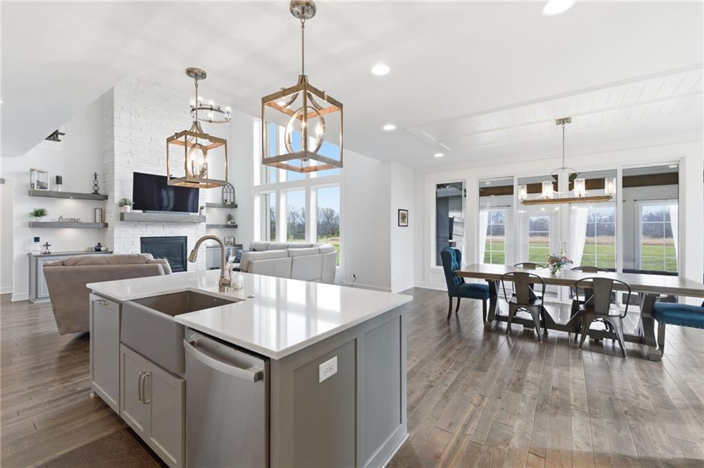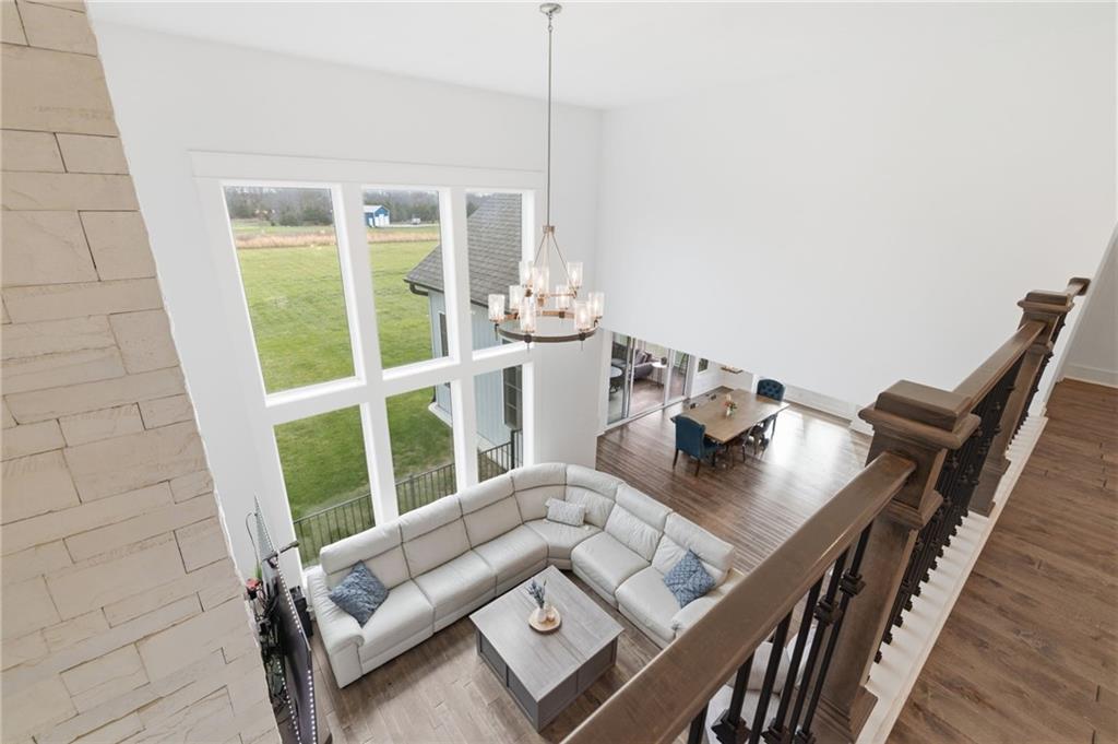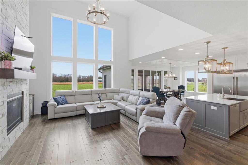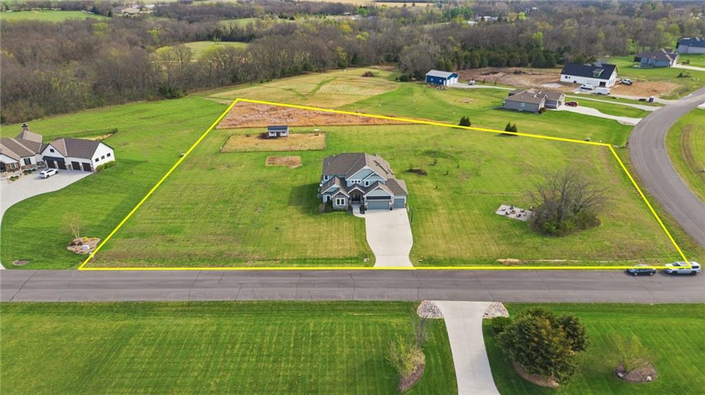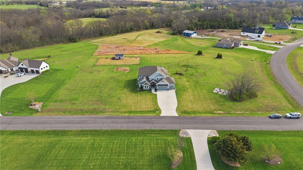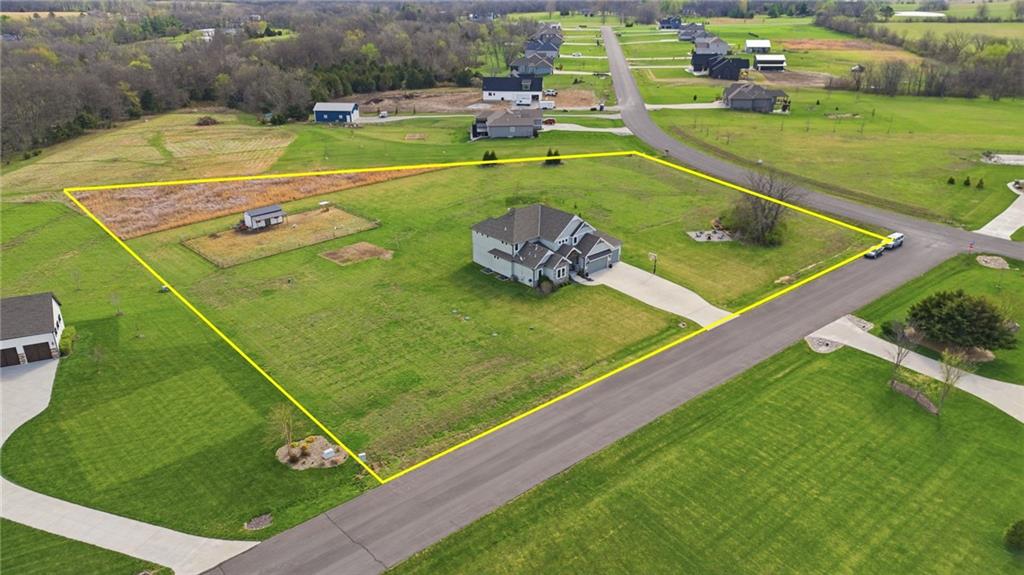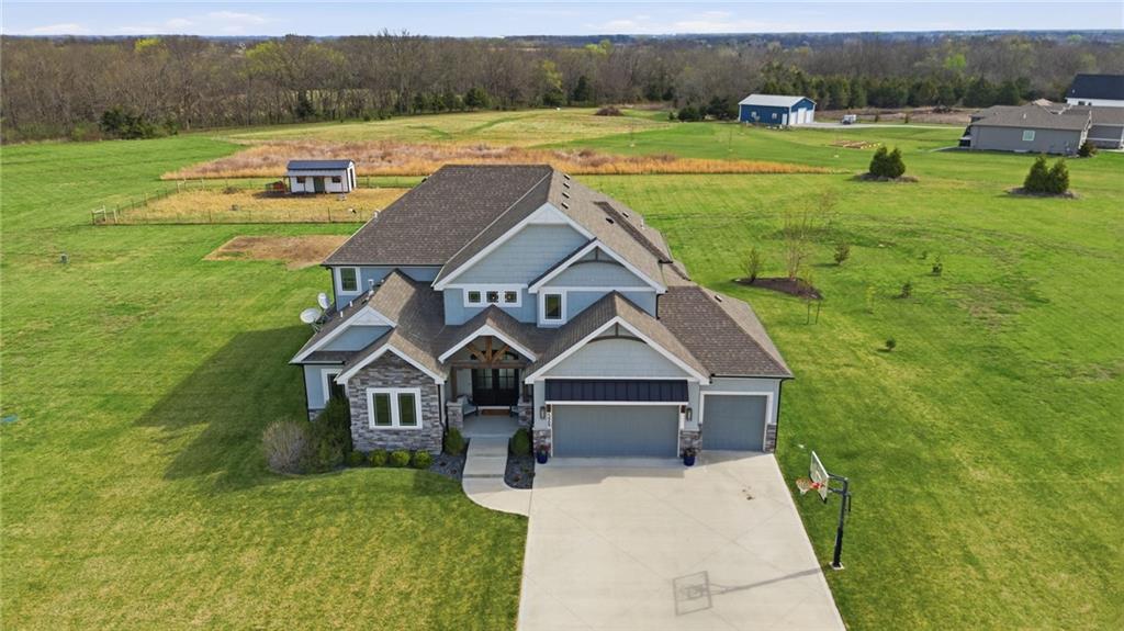 Stunning JFE Custom Maplewood III Craftsman-style 1.5 story loaded with upgrades! Situated on just over 3 acres with no HOA in the highly sought-after Pleasant Hill School District, this 5 bedroom, 4 full bath home offers the perfect blend of luxury and functionality. The great room features a soaring 2-story ceiling and a floor-to-ceiling stone fireplace, creating an impressive focal point. The gourmet kitchen includes stainless steel appliances, gas cooktop, farmhouse sink, Cambria countertops, large walk-in pantry, and dedicated coffee bar. The main-level primary suite is a true retreat with a spa-like bath featuring a freestanding tub, large walk-in tiled shower, and direct access to the laundry room. Upstairs features spacious secondary bedrooms and a versatile loft area—perfect for a kids' playroom or additional living space. Enjoy the outdoors year-round in the 3-season room overlooking your acreage. Additional highlights include upgraded engineered hardwoods, whole-home WiFi booster system, sprinkler system, 3-car garage, and an unfinished daylight basement ready for your personal touch. Homestead has already been started—don’t miss this rare opportunity!