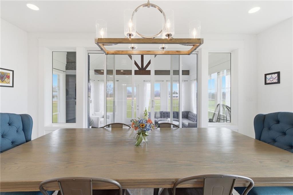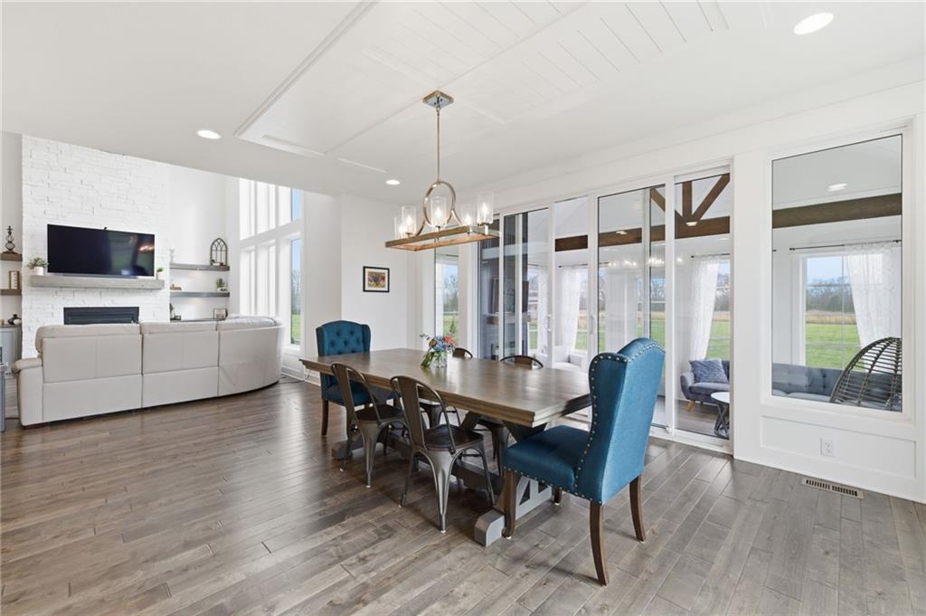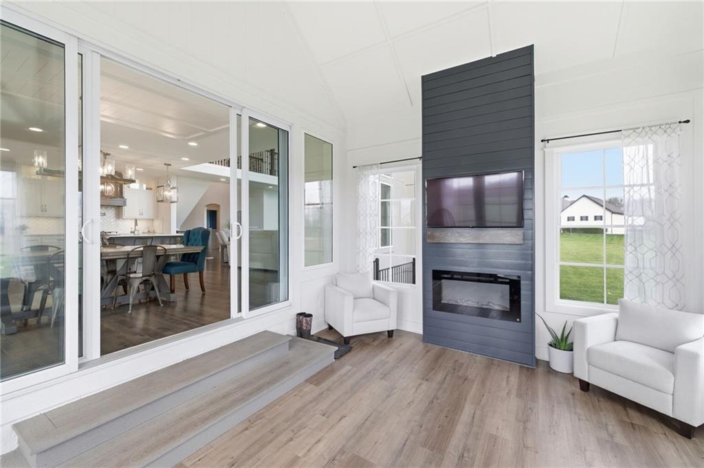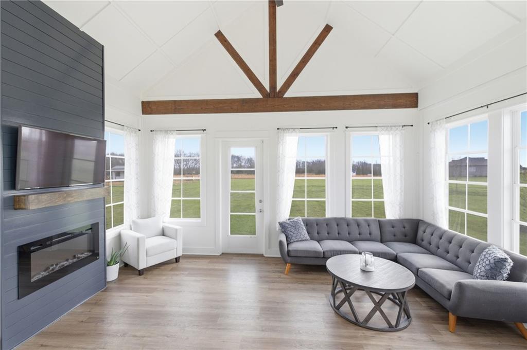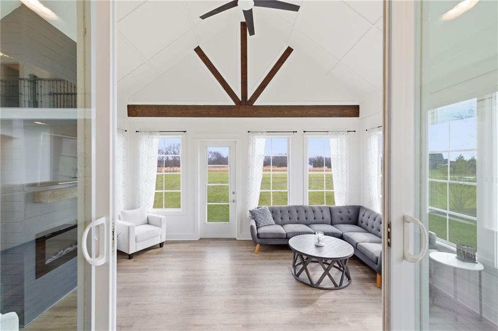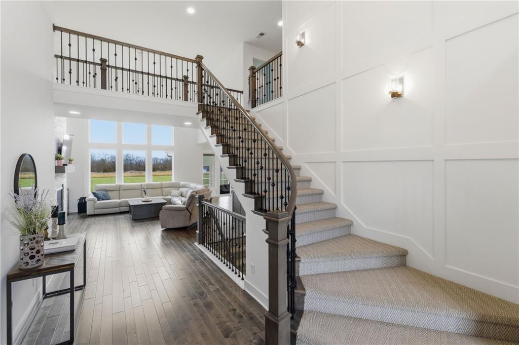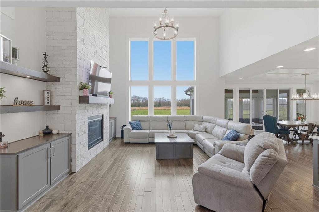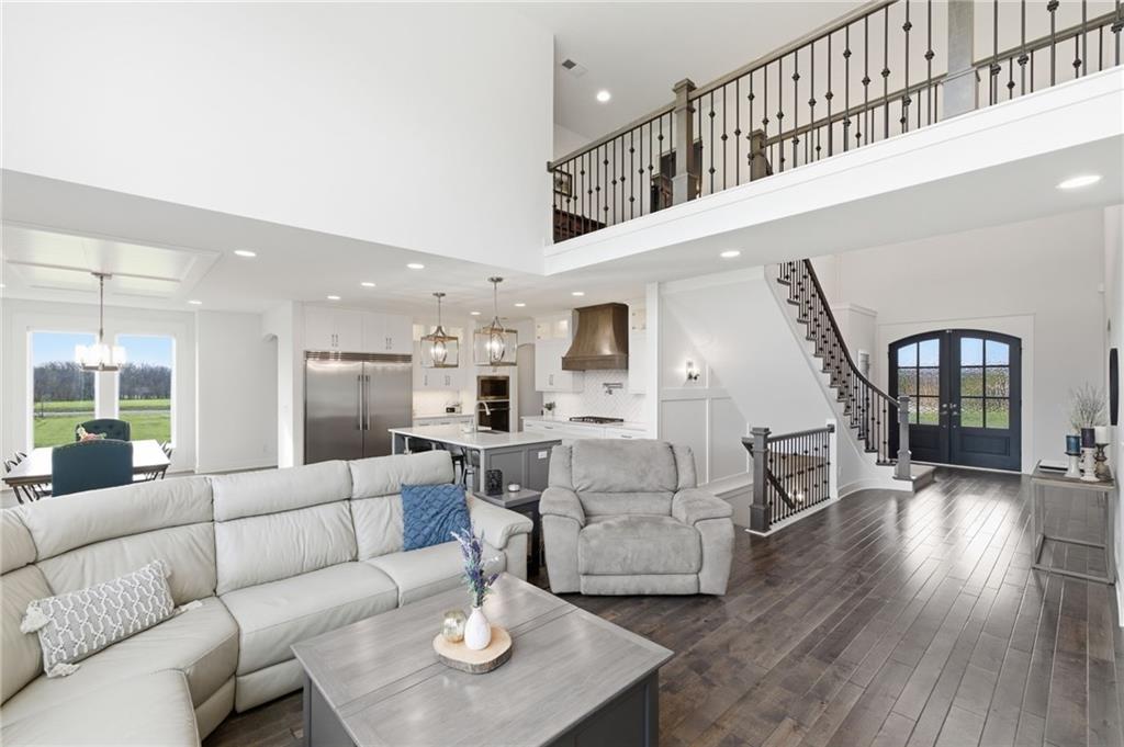 Stunning JFE Custom Maplewood III Craftsman-style 1.5 story loaded with upgrades! Situated on just over 3 acres with no HOA in the highly sought-after Pleasant Hill School District, this 5 bedroom, 4 full bath home offers the perfect blend of luxury and functionality. The great room features a soaring 2-story ceiling and a floor-to-ceiling stone fireplace, creating an impressive focal point. The gourmet kitchen includes stainless steel appliances, gas cooktop, farmhouse sink, Cambria countertops, large walk-in pantry, and dedicated coffee bar. The main-level primary suite is a true retreat with a spa-like bath featuring a freestanding tub, large walk-in tiled shower, and direct access to the laundry room. Upstairs features spacious secondary bedrooms and a versatile loft area—perfect for a kids' playroom or additional living space. Enjoy the outdoors year-round in the 3-season room overlooking your acreage. Additional highlights include upgraded engineered hardwoods, whole-home WiFi booster system, sprinkler system, 3-car garage, and an unfinished daylight basement ready for your personal touch. Homestead has already been started—don’t miss this rare opportunity!