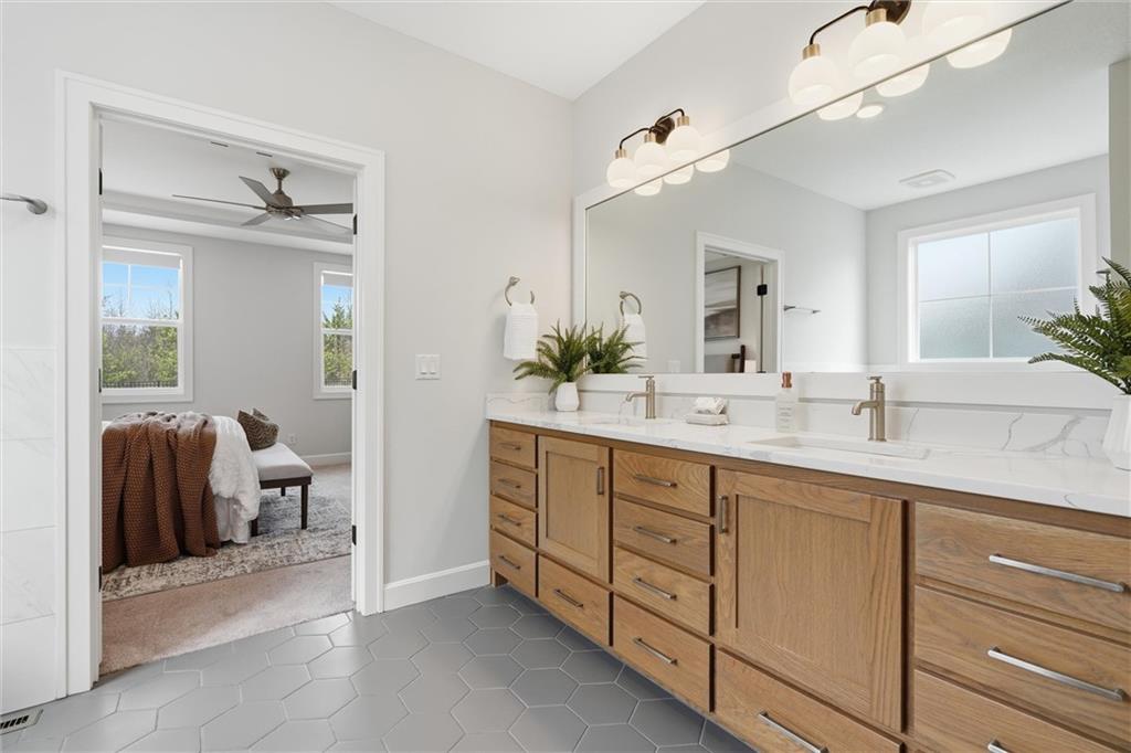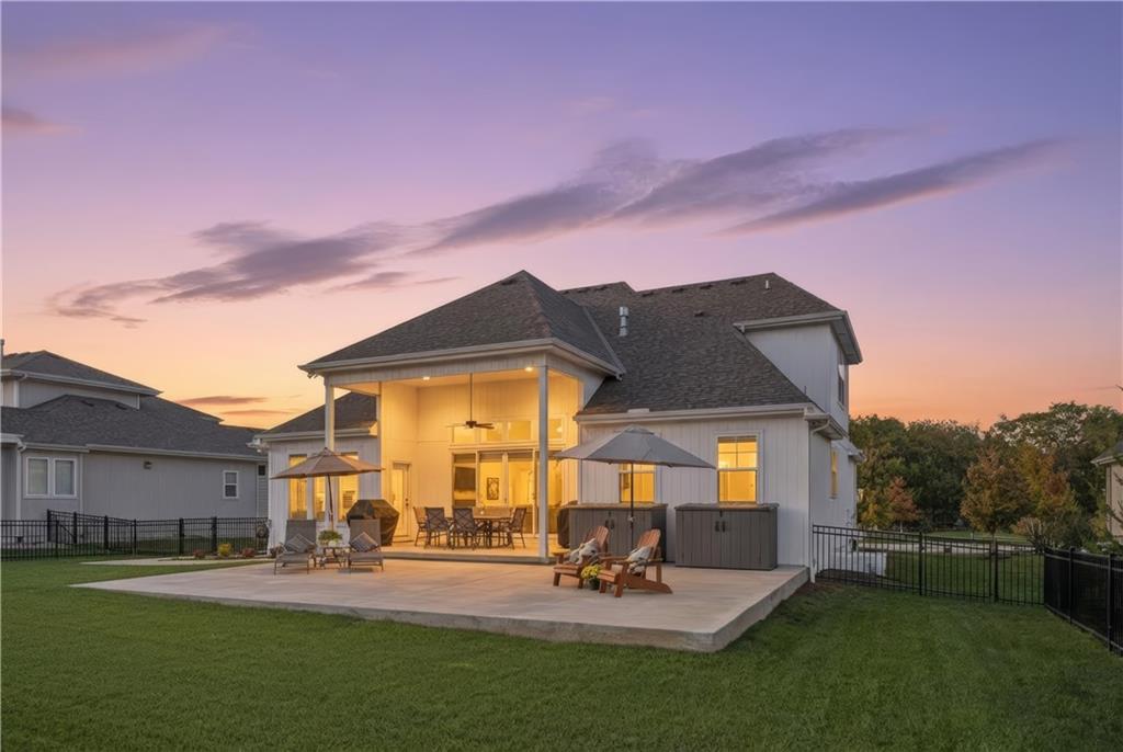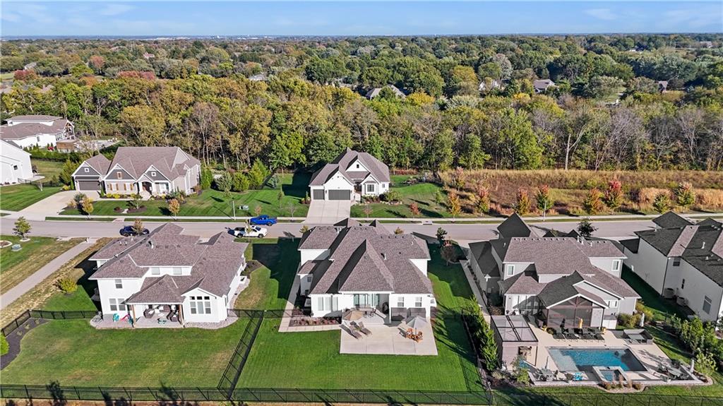 Meticulously maintained, like-new home that outshines new construction, offering a thoughtful open floor plan and seamless indoor-outdoor flow on a premium lot with a large private backyard and wooded views. The main level features a grand two-story entry, spacious living room, private office, and a gourmet kitchen with floor-to-ceiling white oak cabinetry and upgraded gas range. The main-level primary suite offers a spacious layout with convenient access to the laundry room. The upper level includes three generously sized bedrooms, each with walk-in closets and en suite baths. The finished lower level features a guest bedroom, full bath, wet bar, flex room/home gym, and ample storage. Enjoy abundant natural light throughout, along with beautiful sunset views from the backyard overlooking wooded green space. Move-in ready with convenient access to major commuting routes and located within the highly rated Blue Valley School District. Motivated sellers—come see this beautiful home and make an offer!