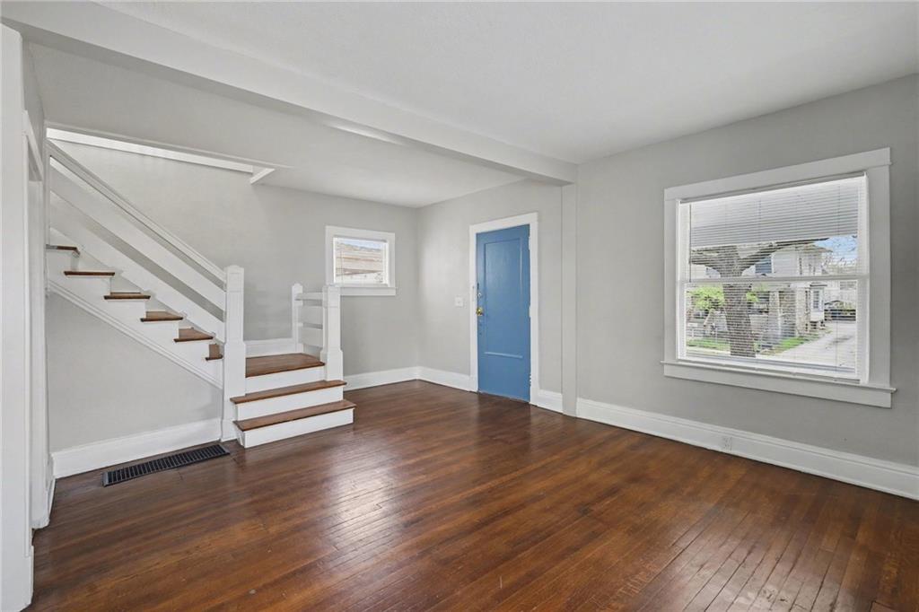 Charming 3 bedroom, 1 bath two story home located less than 10 minutes from downtown Kansas City with excellent highway access. This inviting home features a welcoming front porch, beautiful hardwood floors throughout, and light, neutral paint that enhances the abundance of natural light from ample windows. The kitchen offer generous cabinetry for storage, while the cozy family room includes a fireplace perfect for relaxing evenings. Enjoy outdoor living on the spacious back patio, ideal for grilling and entertaining, overlooking a nice size yard. Additional highlights include a designated laundry room, an updated bathroom with a shower/tub combo, and an unfinished basement providing excellent storage space. Move in ready and full of charm, don't miss this one! **AC condensor to be installed prior to closing