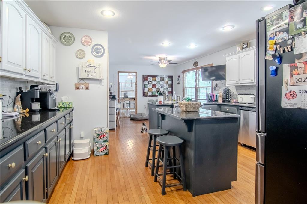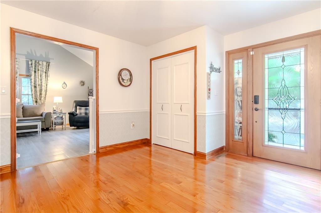 Step into this grand foyer and you will be impressed by the open living area this home provides. There are large living areas off each side of the foyer and a beautiful staircase leading upstairs. There are two dining areas (one off of each side of the kitchen). There is an additional family room on the main level as well. This home does not have any carpet. Four bedrooms, a huge bathroom, and a laundry area are upstairs. The primary bedroom is large with an incredible walk-in closet. Additional living space has been started in the basement. There is an oversized two car garage attached to the home and an additional two car detached garage. Solar panels are a new addition to this home, as well as a privacy fenced backyard and whole home water filtration system. This home sits on a small hill on the corner lot of a popular cul-de-sac and offers plenty of off-street parking for those days you feel like entertaining.