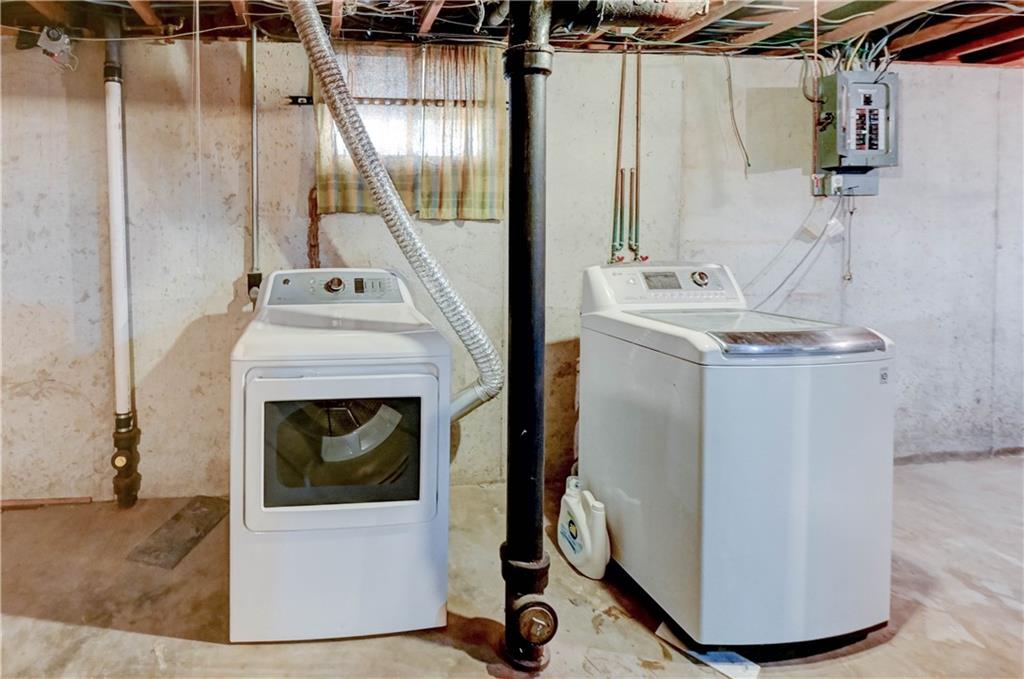 Welcome to this charming and well-maintained 2-bedroom, 1 full bath ranch home, perfectly situated in a quiet, inviting neighborhood. Offering both comfort and thoughtful upgrades, this home is move-in ready and ideal for easy living. Inside, you’ll find a bright and refreshed interior featuring new paint throughout and a beautifully updated living room with a freshly scraped and repainted ceiling, enhanced by modern cam lighting for a warm, welcoming feel. The kitchen has been tastefully upgraded with a new porcelain floor, stylish ceramic backsplash, butcher block countertops, upgraded appliances, a new sink, faucet, and garbage disposal—perfect for both everyday living and entertaining. Both bedrooms offer comfort and functionality, complete with upgraded ceiling fans. The bathrooms have also seen improvements, including new flooring, a new vanity topped with a marble countertop, and the addition of a half window to bring in extra natural light. There is also a bonus room, great for a 3rd non-conforming bedroom, office or workout room. Step outside to enjoy a large, fully fenced backyard—ideal for entertaining, pets, or simply relaxing in your own private space. A convenient storage shed provides ample room for yard tools and equipment. The property has also been enhanced with additional attic insulation for improved efficiency, along with added fill dirt on two sides for better grading and usability. For added convenience, the home includes a washer, dryer, and all kitchen appliances, including the refrigerator. A one-car garage completes this fantastic property. This thoughtfully updated home combines charm, practicality, and value—ready for its next owner to enjoy.