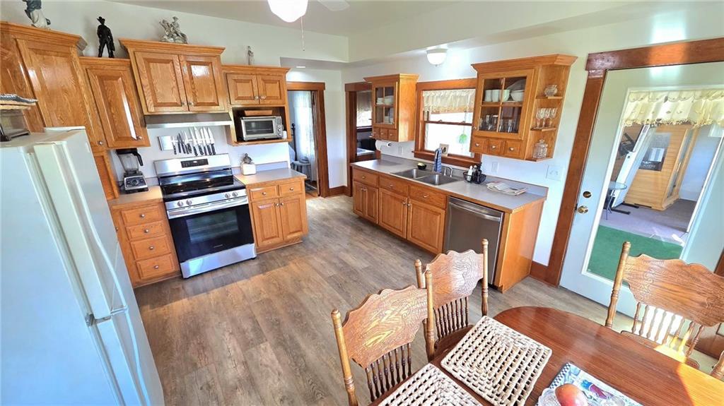 Dead End Road, Picture Perfect 35 Acre M/L Mapleton, KS Homestead! This meticulously maintained 3-bed, 2-bath home is impressive from the moment you pull up. The home has been preserved, maintaining much of the beautiful woodwork throughout, while modern upgrades make this home inviting and comfortable. The home has received upgrades, including newer vinyl exterior windows, complete custom solid oak kitchen cabinetry & countertops. Just off the kitchen is a grand dining room featuring original French doors. Additionally, this home features a huge sunroom, multiple large closets, and an unfinished partial basement. As you enter the front door, you will be greeted by the beautiful, original staircase banister that leads you to 2 bedrooms and 1 bath, featuring a beautiful, primitive claw-foot tub. Need room for additional guests? This property features a detached guest quarters. This is nicely finished, featuring heating and cooling. Multiple storage sheds and parking places exist in the 2 detached garages and one turn-of-the-century impressive old school hay barn. The hay barn upstairs is in very nice condition and is currently used for storage. The land is equally impressive, featuring lush cool-season grasses, and barbed wire fencing for horses, 4 ponds throughout the property providing excellent year-round livestock water source, or the fishing enthusiast. The south side of the land rolls slightly downhill with thick brush and trees providing an excellent white-tailed hunting experience. This is a rate property as it has had all the work done. *Furnace is propane, propane is owned.