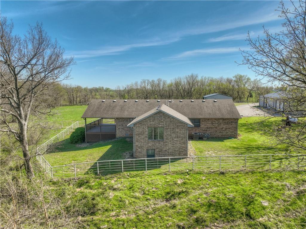 Follow paved roads to this peaceful country homestead & farm near Girard, KS. Over 13 acres with expansive out buildings/shops, piped fencing and room to spread out and enjoy the beauty of nature and abundant wildlife! The 3 bedroom/1.5 bath home boasts an open concept living/dining and kitchen area. A separate spacious family room features beautiful window light and leads to a lower level bedroom that also serves as a safe-room/storm shelter below ground level. Primary bedroom features a huge walk-in closet while bathroom provides a spacious walk-in style shower. The living and dining room areas open to a huge covered deck area that provides a scenic view to enjoy! A ramp wraps around to front of home for ease of entrance & exit to deck area. Steps from the home sits a 120 x 50 ft shop with concrete floors, heat & air, electricity, restroom and multiple overhead doors. For livestock or utility storage, there is also a 40 x 60 building and cattle shed and waterers, plus pipe-fenced pasture! This exclusive location provides privacy and practicality, and allows for profitability, as well! Set your private tour right away!