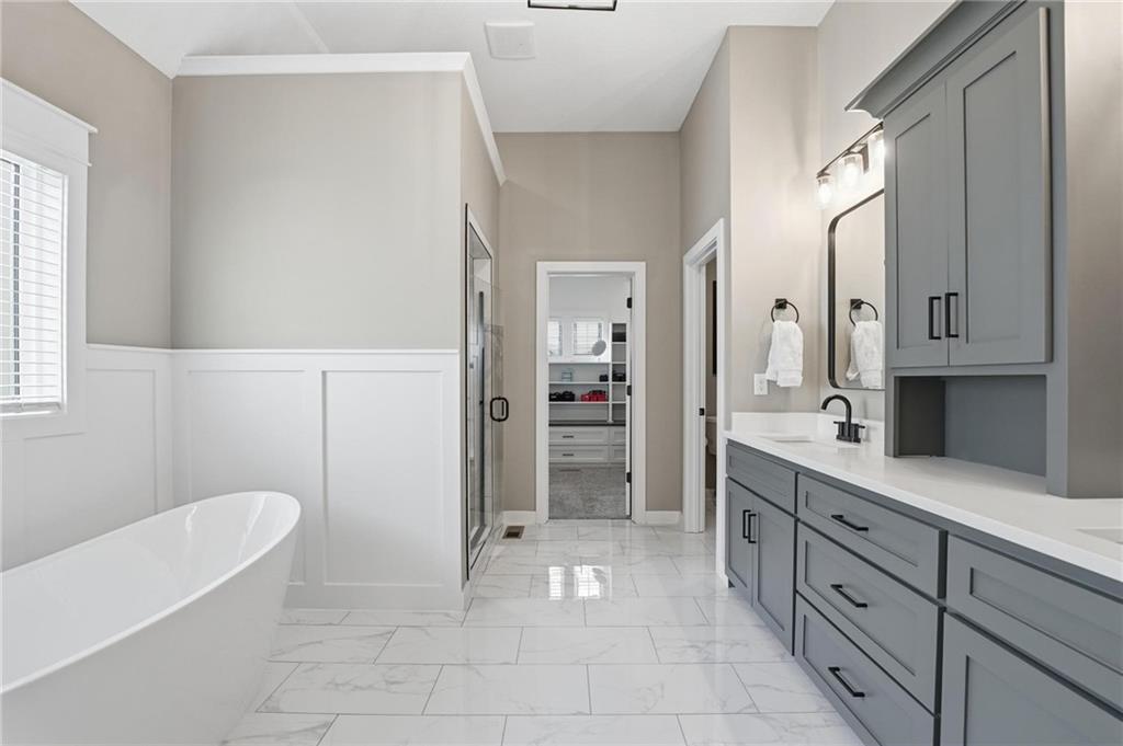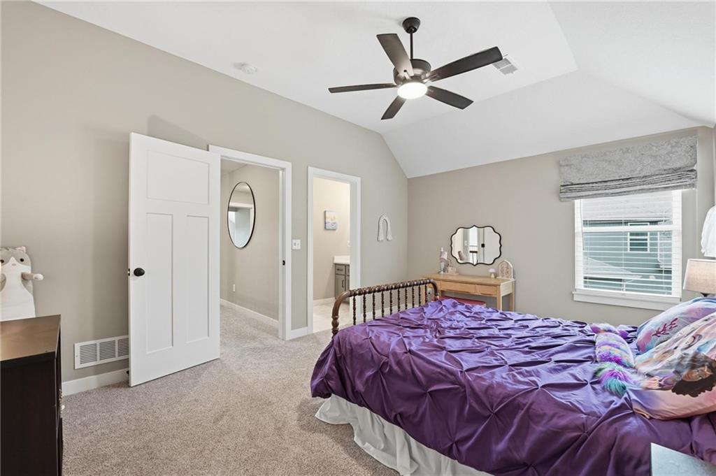 This Integrity Homes, Audrey 1.5 story plan is located on one of the best lots in the subdivision and is only 2+ years old. This home has it all, the floorplan, the closet space, the views and the workshop, it's a must see for sure. The main floor is expansive with tall and vaulted ceilings, open concept dining, living room and kitchen with a larger than typical front entry. The primary bedroom suite is located on the main floor with a beautiful view of the wooded area behind the home. Upstairs features a loft providing a second living area in addition to three more bedrooms. Two bedrooms are part of a jack-and-jlll suite with their own private vanities, and the third bedroom has a private bathroom. BONUS: every bedroom has spacious walk-in closets so nobody has to compromise! The basement is partially finished with a fifth bedroom and fourth bathroom, and an exercise room. RARE FIND: this home features a 3-car suspended garage making a great space for workshop or additional storage. Private walkout lot backing to the trail, oversized fenced lot. Why wait for new construction when everything is already done! Save the overages!