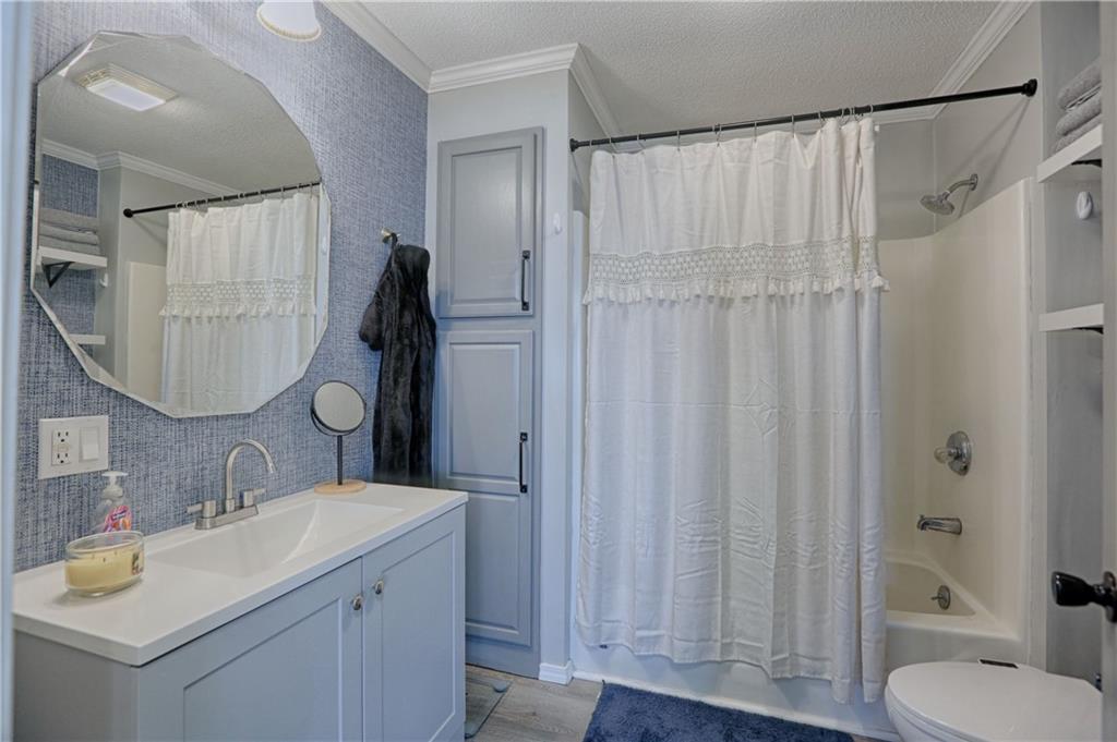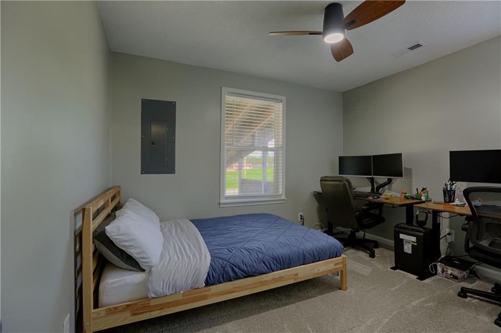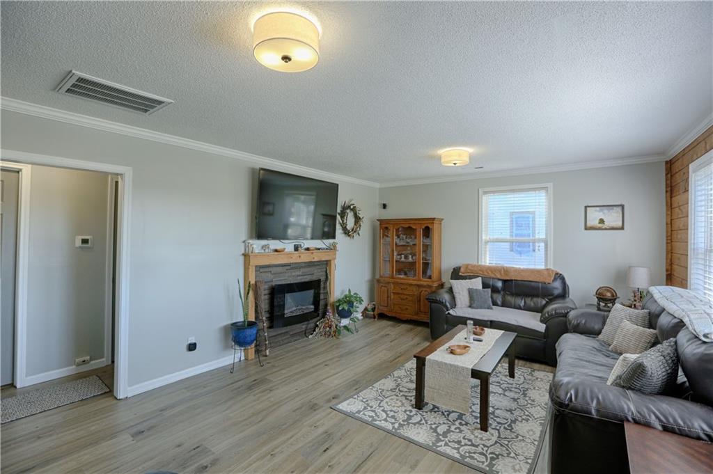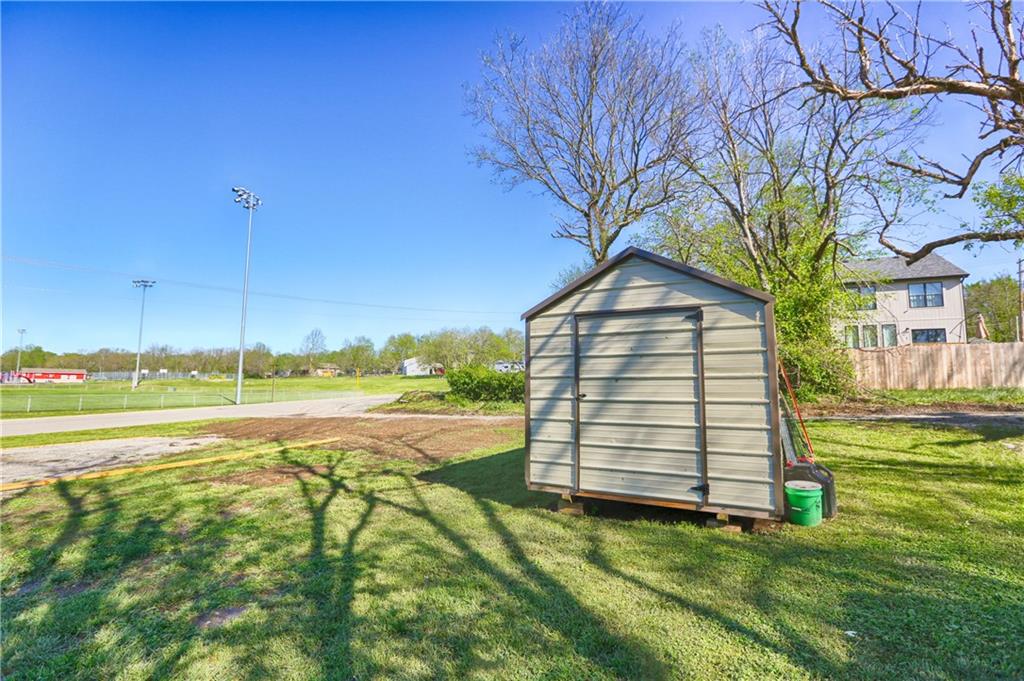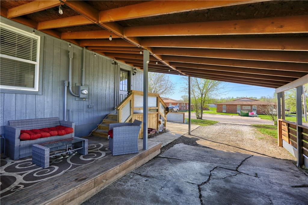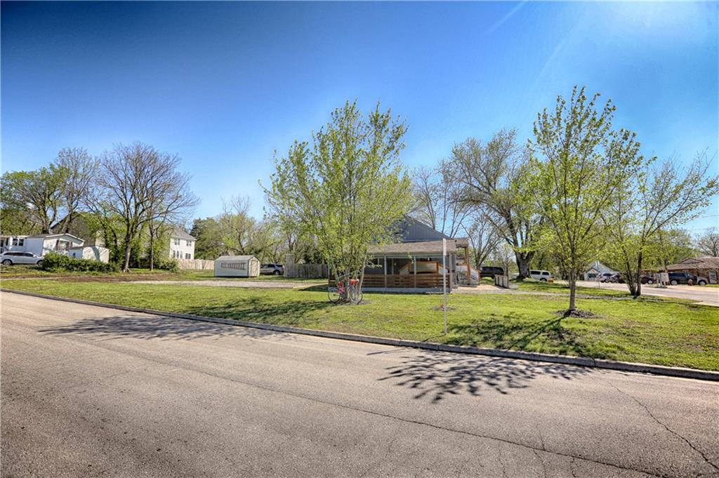 Recently renovated, this charming 2-bedroom, 1-bath home sits on a spacious corner lot(over a quarter of an acre) and features an oversized carport with additional parking behind the home. Updates include all new(er) siding, roof, gutters, doors, windows, HVAC, plumbing, and fully refreshed interior finishes. The kitchen is thoughtfully designed with extra-tall, soft-close cabinetry, quartz countertops, tile backsplash, open shelving, a built-in pantry, large stainless steel sink and bar seating. Stainless steel appliances complete the space. The open-concept living area is filled with natural light and features a cozy built-in fireplace. Durable, waterproof luxury vinyl flooring runs throughout the main living spaces for easy maintenance. The bathroom offers generous space and additional storage, while both bedrooms include carpet, ceiling fans and window treatments. All window treatments are included. Outside, the oversized carport doubles as an inviting entertaining space with an attached deck and ample sized shed for additional storage. The large corner lot is conveniently located near the Flint Hills Trail and a nearby sports complex. Don’t miss the opportunity to make this move-in-ready home yours—schedule a showing today!