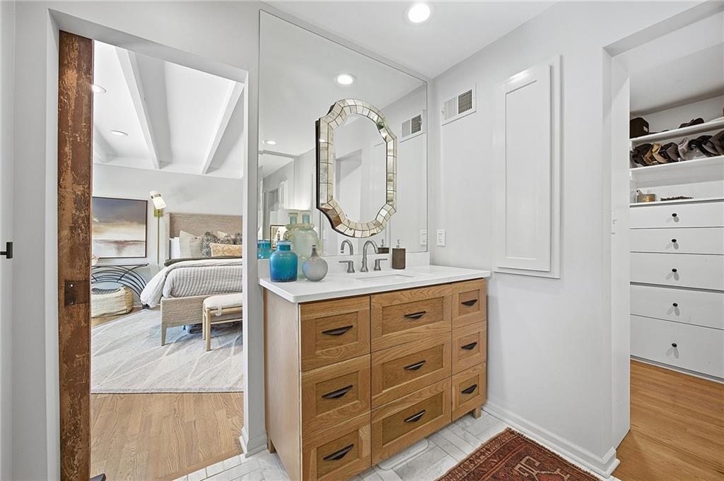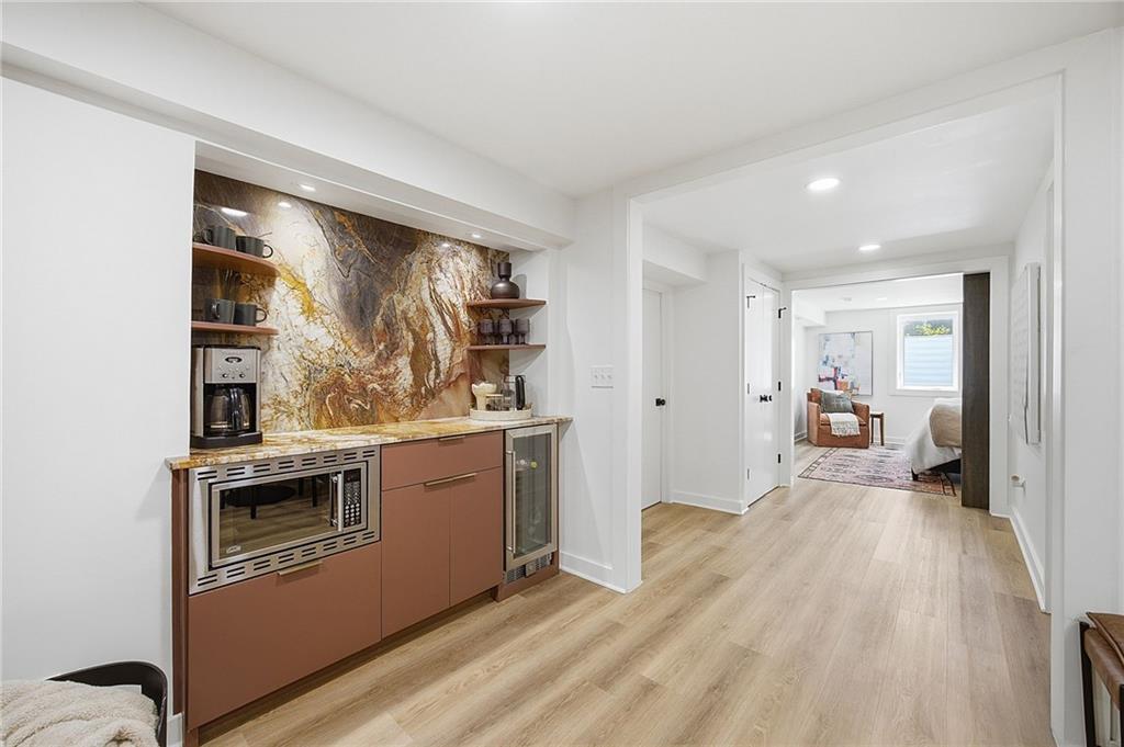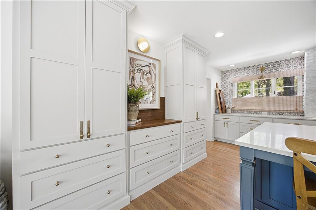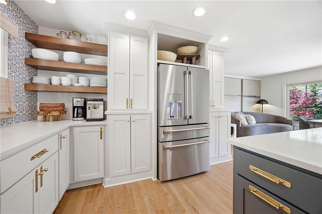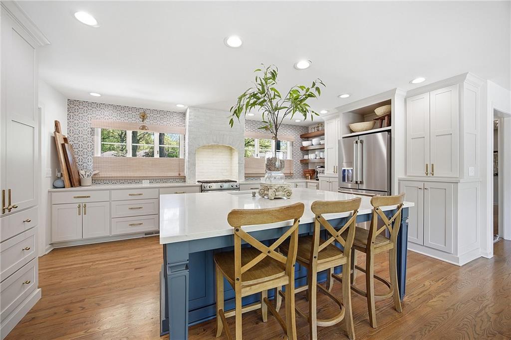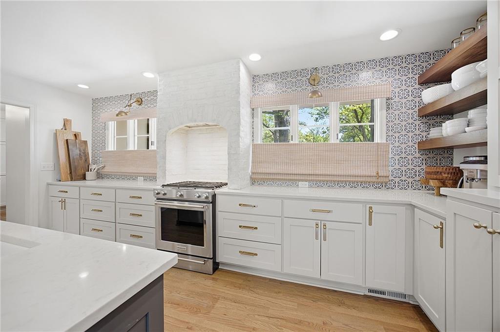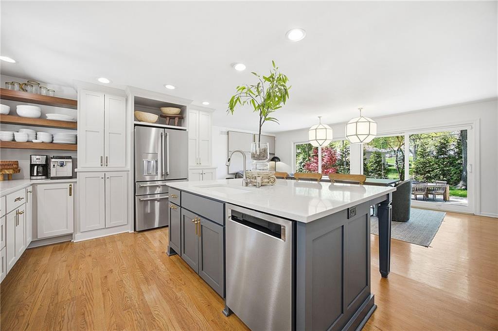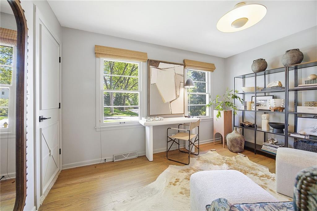 STUNNING Leawood Estates home completely & thoughtfully renovated by an Interior Designer/Building Consultant with custom and luxury materials. A MUST SEE. What was a charming 1950's ranch sitting in a prime location on a great lot, is now a 5 Bedroom, 4 Full Bath, main floor Primary Suite, Home Office stunner with 3 fabulously finished floors and outside as great as the inside. Most of the home was taken down to the studs with almost all new electrical + plumbing. See full Reno narrative in attachments. The reno started outside with a custom-made steel cupola, gas lanterns, stucco, new front and garage doors + all new landscaping. Step inside and the staircase was relocated, walls opened, new glass door and windows across the back. All doors are custom designed with a matching steel stair baluster and metal railings. Wonderfully opened and functional Kitchen with custom cabinetry, counter to ceiling tile, stained wood accents, SS appliances and custom brick, arched vent hood with gas stove focal point. HUGE Family Room with pecky-cypress paneling, beams, stone fireplace and walk-in Butler's Pantry. Luxurious Primary Suite with customized walk-in closet and Bath with luxurious hardware, fixtures and finishes down to the smallest detail. Upstairs was taken down to the studs and in its place are 3 charming Bedrooms and the cutest, most functional Bath you ever saw. Off the Kitchen was the old Dining Room and is now an enviable Flex Space for overflow Kitchen/Office/Laundry leading to both the garage and Lower Level. The Lower 1,329 sqft transformation created multiple family and guest spaces for easy living. The Backyard Oasis is private, composite decking stepping down to custom stamped concrete patio with all the bells and whistles. Floating benches, steel planters, gas fire bowl, limestone pavers... 2023 Furnace/AC/HWH. Zoned AC. Artful attention to every detail. Smart, functional beautiful spaces. This is the home you have been waiting for!