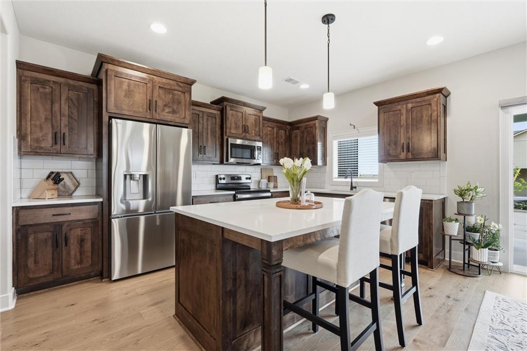 Perfectly Beautiful and READY FOR YOU! Corner lot and better than a new build! Built in 2023 but now EVEN BETTER!!. Blinds, all SS appliances, washer and dryer and the mounted TV are all staying! MAINTENANCE PROVIDED makes this an easy decision. Move right in and begin your new life with 4 pools, walking trails, weight room, volleyball, pickleball, basketball and more. This perfectly designed floor plan welcomes you inside to an open spaces. Warm wood floors are throughout the main level. The spacious main floor living area adjoins the eat in kitchen and dining so gatherings are open for family conversations. A mudroom and a walk in panty are just off the kitchen with the gorgeous wood cabinets. Beautiful countertops, back splash and the large kitchen island complete this dreamy kitchen. Upstairs you will find an oversized primary bedroom with an architectural wall and spectacular primary bath with a double vanity, a soaker tub and separate tile shower and walk in closet. 3 other spacious bedrooms or a potential office is just down the hall with laundry and your 3rd bath with another double vanity and built ins. Full unfinished basement for your future expansion or storage. Come see! You wont be disappointed. Beautiful neighborhood and incredible location just south of 159th and Murlen. Be sure to watch the video!