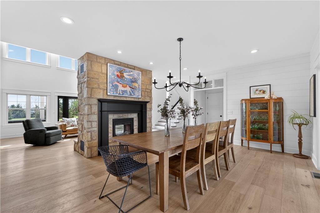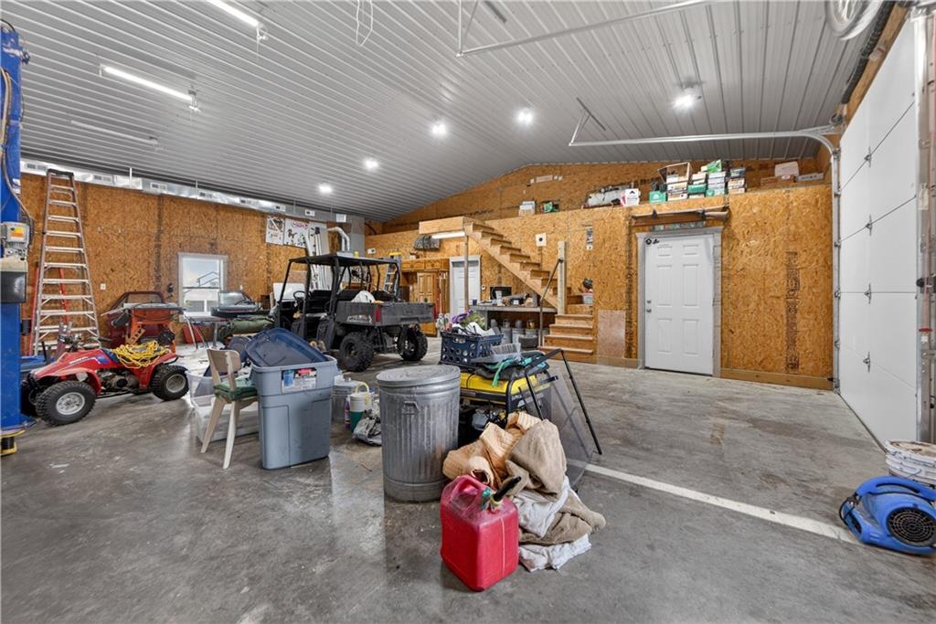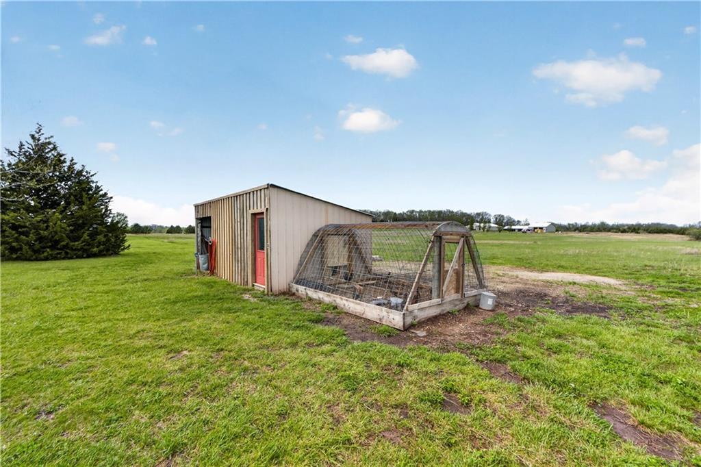 10 acres on blacktop — a rare blend of modern comfort and full-function hobby farm living. Built in 2020 as the sought-after builder’s personal residence, this open-concept home offers 6 bedrooms, 3.5 baths and 4,032 total sqft with thoughtful finishes throughout. Main living features include a dramatic two-story great room with abundant windows, wide-plank white oak engineered floors, a see-through fireplace between the dining room and living room, and a chef-ready kitchen flowing to living and entertaining spaces. The primary suite is conveniently located on the main level and opens to a large screened porch that, together with the dining room, leads out to an expansive concrete patio — ideal for indoor-outdoor living. Two oversized bedrooms upstairs include vanities/sinks plus a full upstairs bath; three additional bedrooms are located below grade. Practical comforts: main-level and basement laundry, an oversized two-car garage, and a large finished six-sided concrete storm shelter. Outdoor and outbuilding amenities are built for hobby farmers, equestrians, and weekend hosts. Approximately 2.5 acres are fenced and improved with a horse barn that has power and water. The back 5 acres serve as productive hay pasture. The 2,400 sqft barn/shop includes a 1,600 sqft insulated, heated & cooled shop space with two overhead doors and a full bath, plus an 800 sqft one-bedroom apartment with kitchen/living area, full bath, W/D hookups and a wraparound covered porch — perfect for rental income, guest quarters, or on-site help. Additional property highlights: chicken coop with power, water and indoor/outdoor access; raised-bed garden area with water run; a 33-ft above-ground pool with deck and awning for summer entertaining; and abundant acreage for riding, gardening, or expansion. Location is exceptional — just one mile from the new elementary school in the award-winning Basehor-Linwood School District.