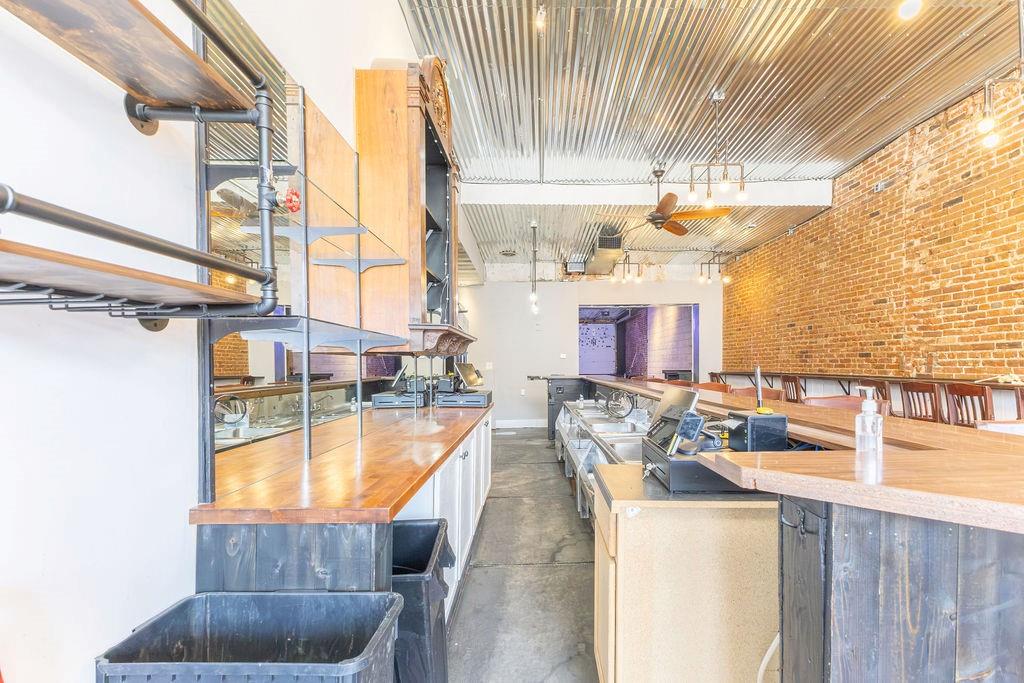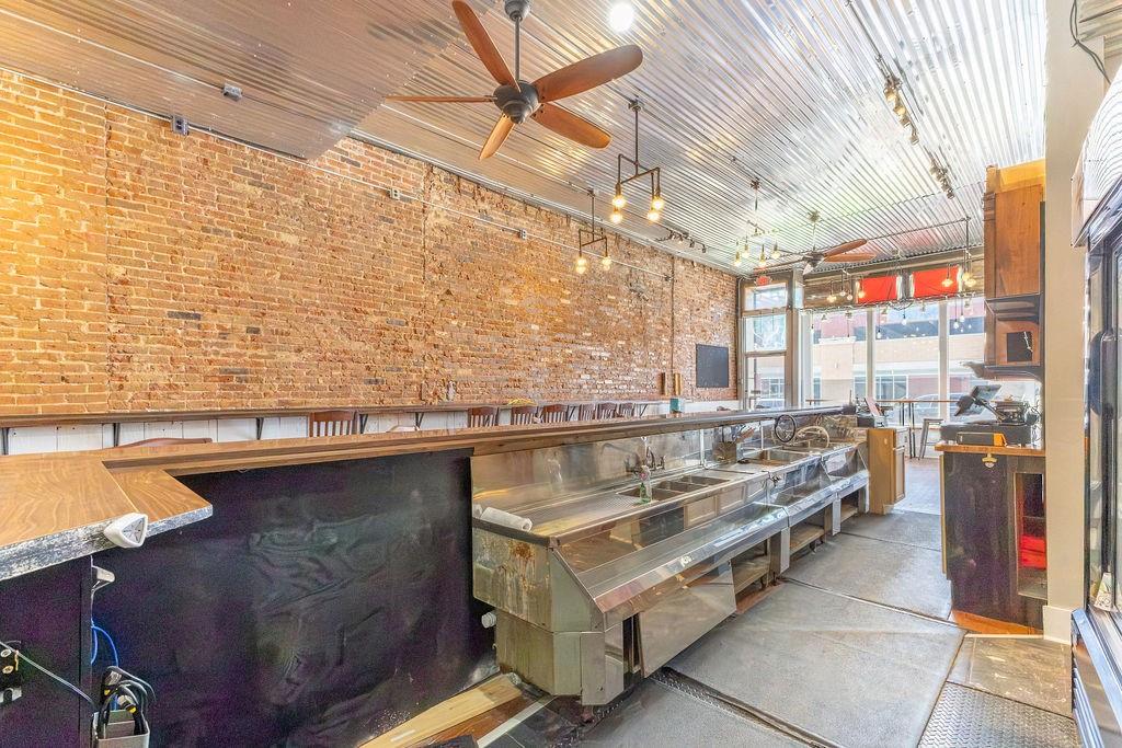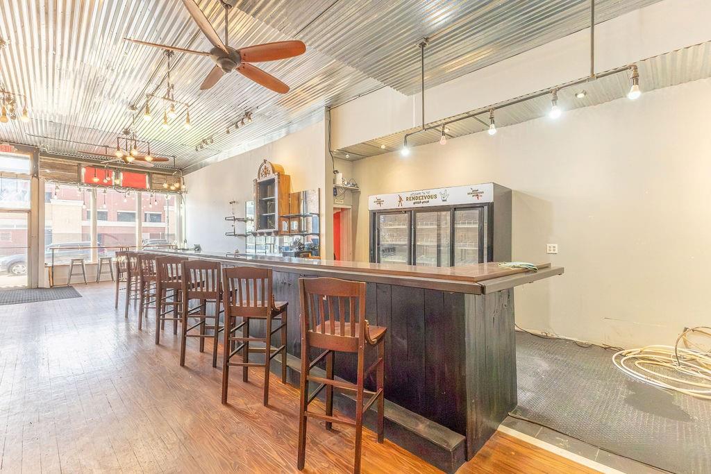 Steeped in 140+ years of history, this character rich mixed-use building is turnkey for a bar, restaurant, event venue, or retail concept. The main level features exposed brick, hardwood floors, a corrugated metal ceiling, large display windows, and a fully equipped bar with commercial sinks. The rear of the space opens into a separate venue room with a raised stage, herringbone wood accent wall, Edison-style string lighting, and a roll-up garage door - ideal for live music, private events, or overflow. Rear alley access provides added utility. Upstairs, a 2 bedroom (non-conforming), 1 bath apartment offers rental income potential or owner occupancy. Basement storage, ample street parking, and a nearby public garage round out this rare downtown opportunity. Owner is licensed Realtor in the state of Missouri.
