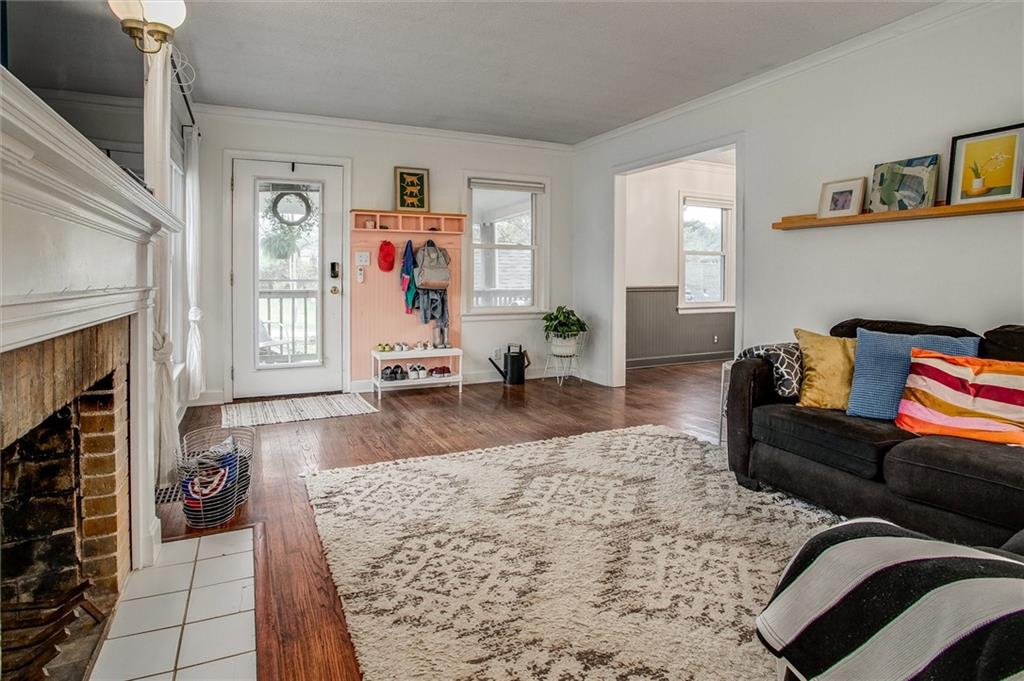 Stylish and full of charm — this beautifully updated 3-bedroom, 1-bath Cape Cod is anything but ordinary. Set on a generous lot, this 1.5-story brick and frame home welcomes you with a covered front porch made for morning coffee and evening unwinding. Step inside to find rich hardwood floors, crown molding, and cozy fireplace that anchors the warm and inviting living room. The adjacent dining room makes a statement with bold dark wainscoting and a stunning chandelier — a space that's as functional as it is memorable. The updated kitchen is the heart of the home — featuring sage green cabinetry, a farmhouse sink, penny tile backsplash, dark countertops, and frosted glass upper cabinets that perfectly blend vintage character with modern style. Upstairs, vaulted ceilings open up two versatile bonus spaces — ideal for a home office, playroom, nursery, or guest retreat. Outside, the pergola-covered back deck with string lights creates the perfect setting for entertaining or relaxing under the open sky, with lush yard space to enjoy throughout the seasons. Completing the package: a detached 1-car garage and a classic composition roof. All of this in the charming Sunny Slope subdivision — don't miss your chance to call this one home!