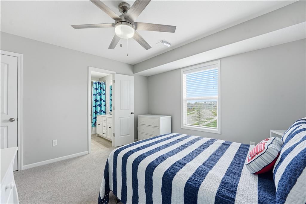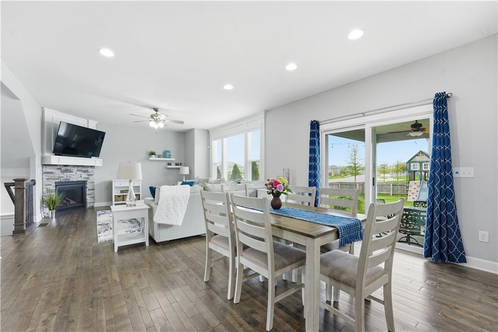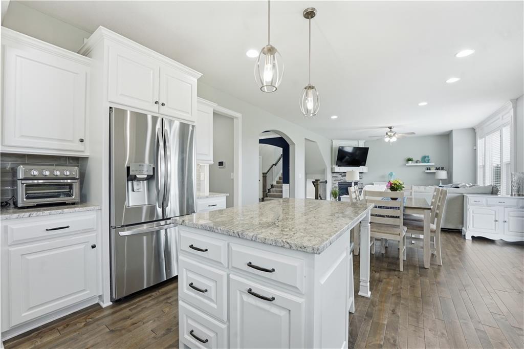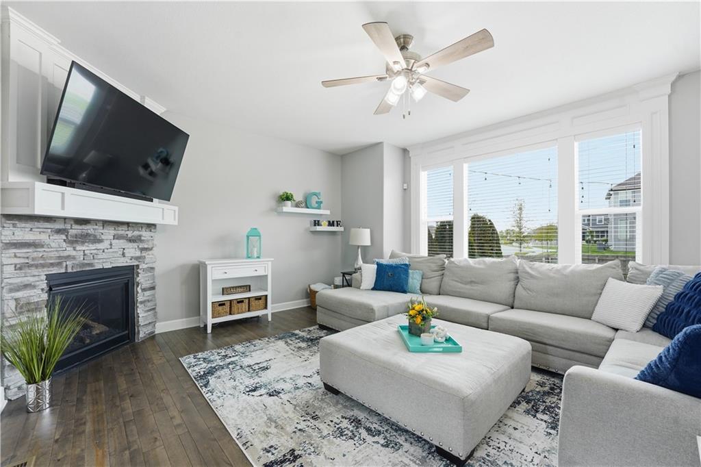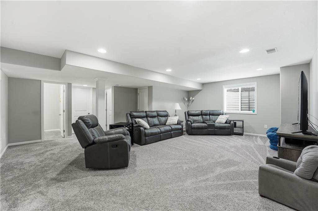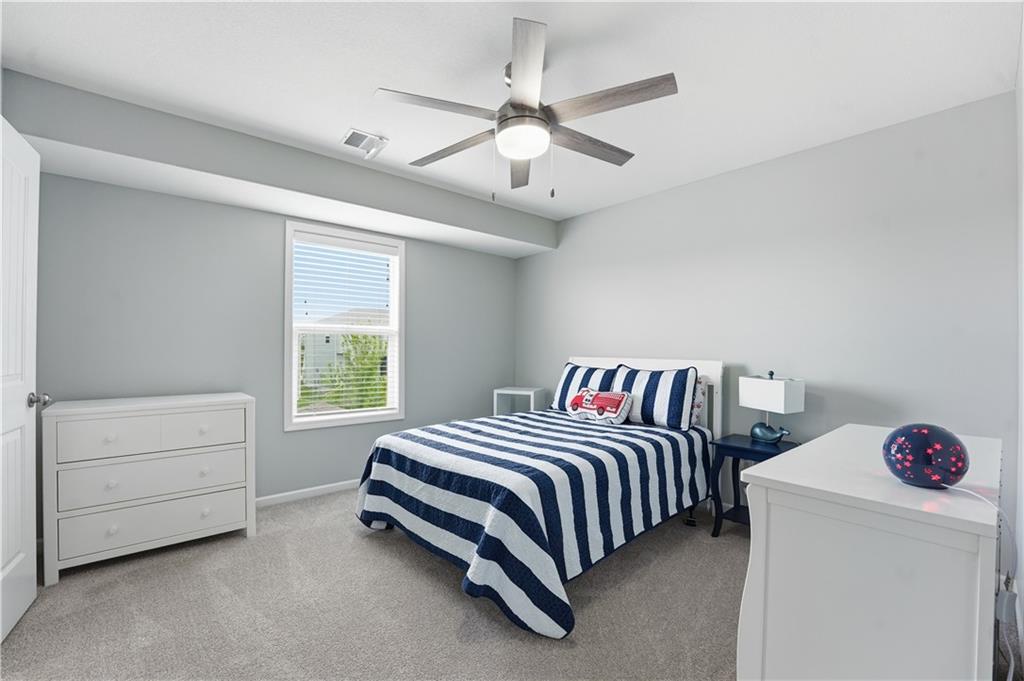 Don't miss this beautiful 2-story home in sought after Heather Ridge South. Spacious and beautiful 4-bedroom home with 3 full baths and 2 half baths! The entire main floor features gorgeous wood flooring, creating a warm and elegant feel throughout. The stunning kitchen offers painted cabinets, a large granite island, walk-in pantry, and newer gas stove and dishwasher—perfect for cooking and entertaining. The bedroom level features brand-new carpet, and every bedroom includes a walk-in closet for ample storage. The luxurious primary suite boasts a spa-like bath with a walk-in shower and whirlpool tub. Bedrooms 2 and 3 share a convenient Jack-and-Jill bath, while Bedroom 4 enjoys its own private en suite bath. The finished basement with an additional half bath provides excellent additional living and entertaining space. Step outside to enjoy the patio spanning the length of the home and partially covered for your enjoyment,. There is also a sprinkler system and a fence. Major mechanical updates include a 2-year-old furnace and air conditioner. The community offers exceptional amenities including a stocked fishing lake, heated pool with extended seasonal use, playground, picnic shelter, fire pit area and walking trails. This home perfectly blends comfort and style.