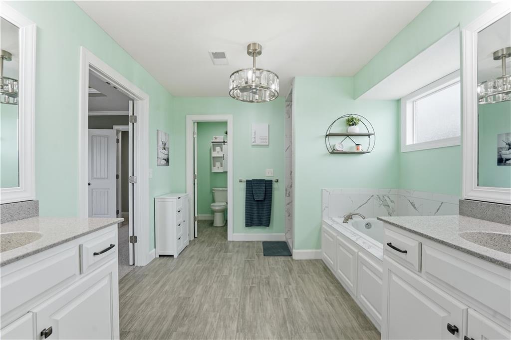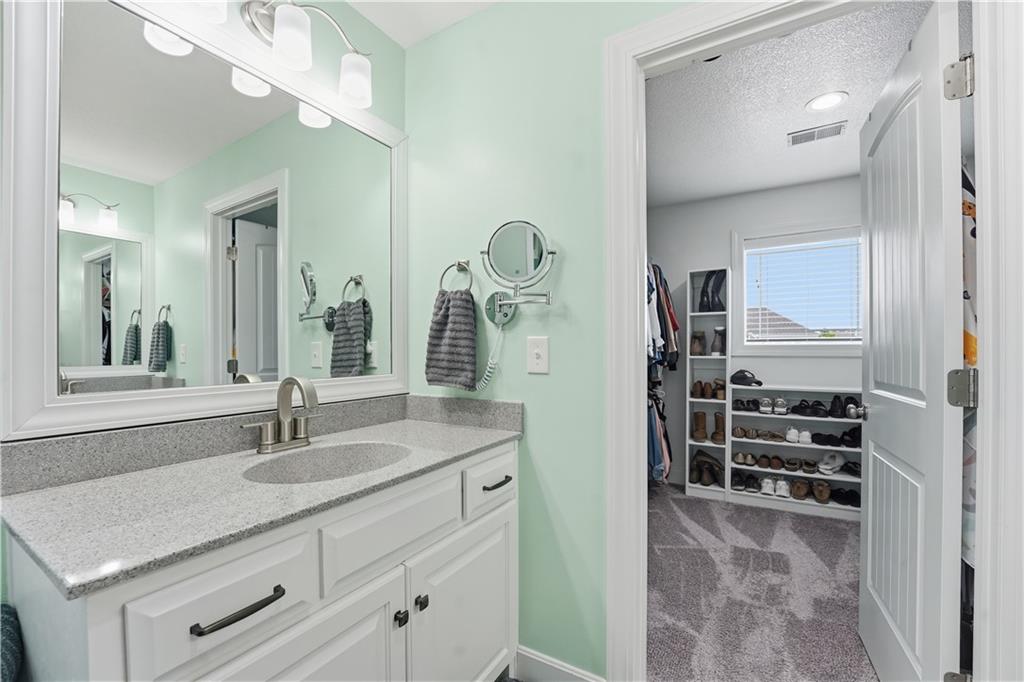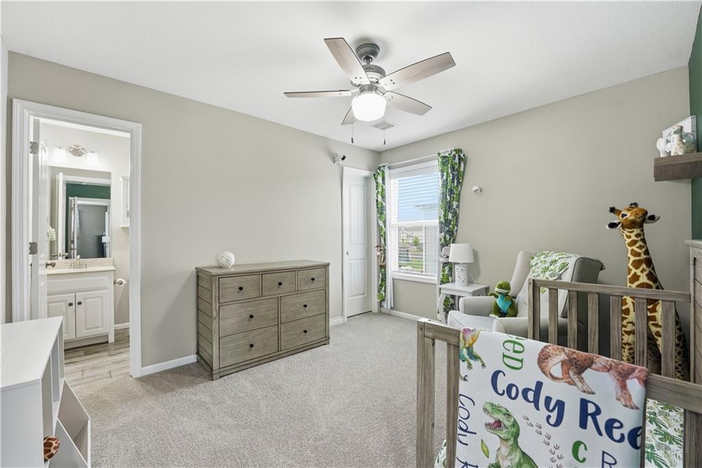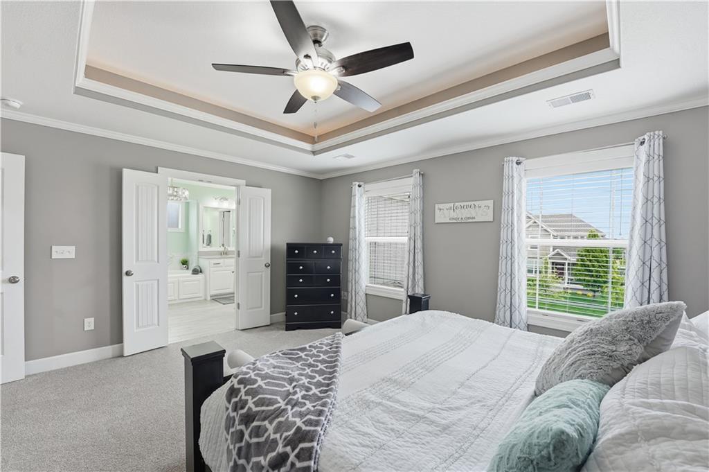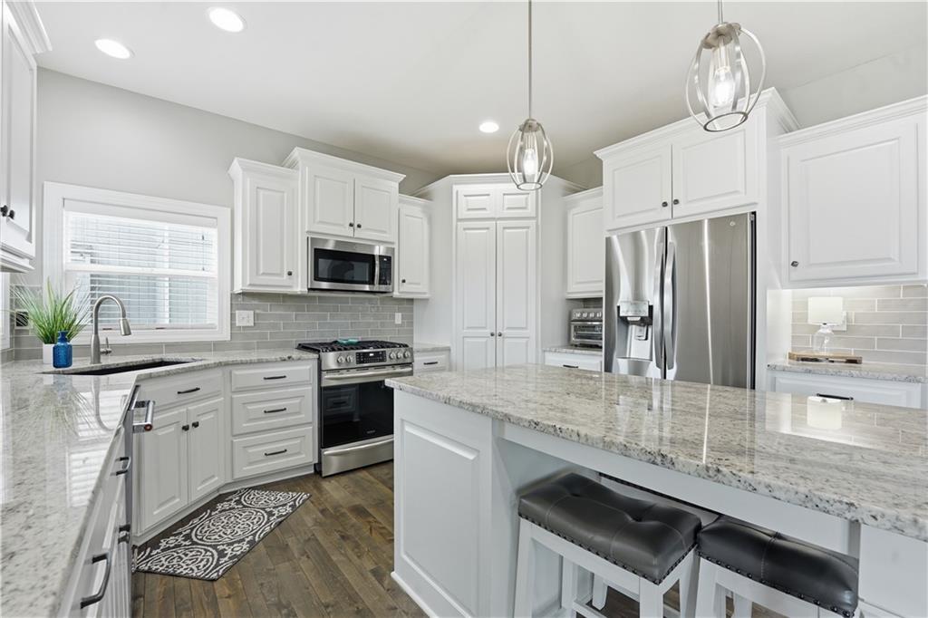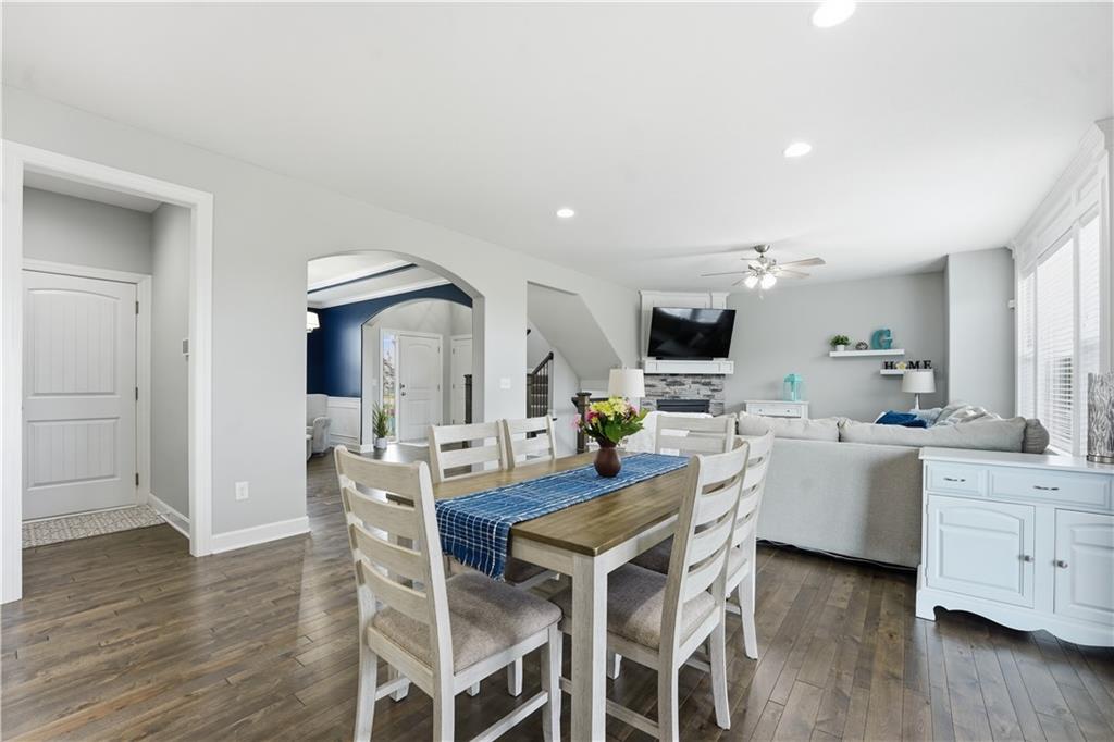 Don't miss this beautiful 2-story home in sought after Heather Ridge South. Spacious and beautiful 4-bedroom home with 3 full baths and 2 half baths! The entire main floor features gorgeous wood flooring, creating a warm and elegant feel throughout. The stunning kitchen offers painted cabinets, a large granite island, walk-in pantry, and newer gas stove and dishwasher—perfect for cooking and entertaining. The bedroom level features brand-new carpet, and every bedroom includes a walk-in closet for ample storage. The luxurious primary suite boasts a spa-like bath with a walk-in shower and whirlpool tub. Bedrooms 2 and 3 share a convenient Jack-and-Jill bath, while Bedroom 4 enjoys its own private en suite bath. The finished basement with an additional half bath provides excellent additional living and entertaining space. Step outside to enjoy the patio spanning the length of the home and partially covered for your enjoyment,. There is also a sprinkler system and a fence. Major mechanical updates include a 2-year-old furnace and air conditioner. The community offers exceptional amenities including a stocked fishing lake, heated pool with extended seasonal use, playground, picnic shelter, fire pit area and walking trails. This home perfectly blends comfort and style.