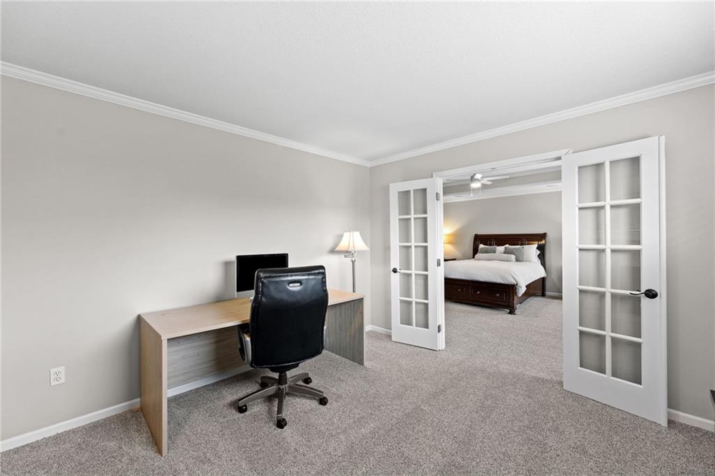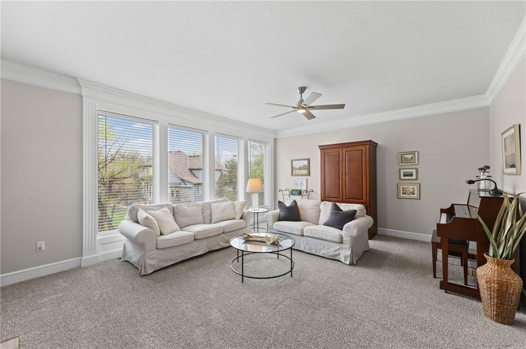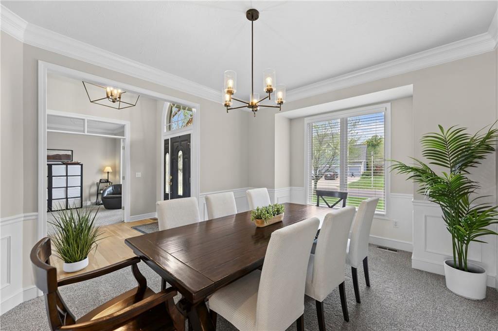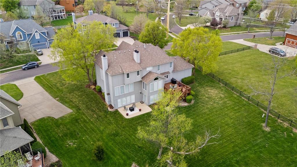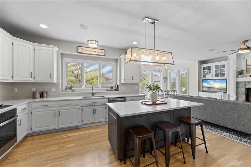 Stunning Remodeled Two-Story in Prime Wellington Park Location Welcome to this beautifully updated two-story home nestled in the highly sought-after Wellington Park community. Lovingly renovated inside and out, this residence combines timeless elegance with modern upgrades, offering exceptional living spaces for today’s lifestyle. Step inside to discover newly installed hardwood floors, fresh interior paint, and plush new carpeting throughout the main level. The heart of the home is the incredible chef’s kitchen, featuring newly painted cabinetry, gorgeous Calacatta quartz countertops, a stylish tile backsplash, a walk-in pantry, and brand-new stainless steel appliances. The adjoining hearth room showcases a striking two-sided fireplace shared with the formal living room, creating a warm and inviting atmosphere. A formal dining room, dedicated home office, and convenient main-level laundry room complete the first floor. Upstairs, you’ll find four spacious bedrooms and three full bathrooms, including a luxurious primary suite. This private retreat boasts a coffered ceiling, a separate sitting room with its own fireplace—perfect for a study or relaxation space—and a spa-like en-suite bath with dual vanities, a jetted tub, and an enormous walk-in closet. The finished walkout lower level is filled with natural light from large windows overlooking the lush backyard. It offers a generous recreation room ideal for entertaining, along with a bonus non-conforming fifth bedroom, perfect for guests, a home gym, or additional office space. Enjoy outdoor living on the expansive deck that overlooks the private, beautifully landscaped yard. Located within the award-winning Blue Valley School District and just minutes from premier shopping, dining, and major highway access, this home offers both luxury and convenience. Don’t miss this exceptional opportunity to own a move-in-ready home in one of the area’s most desirable neighborhoods!