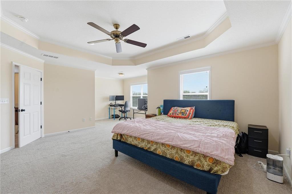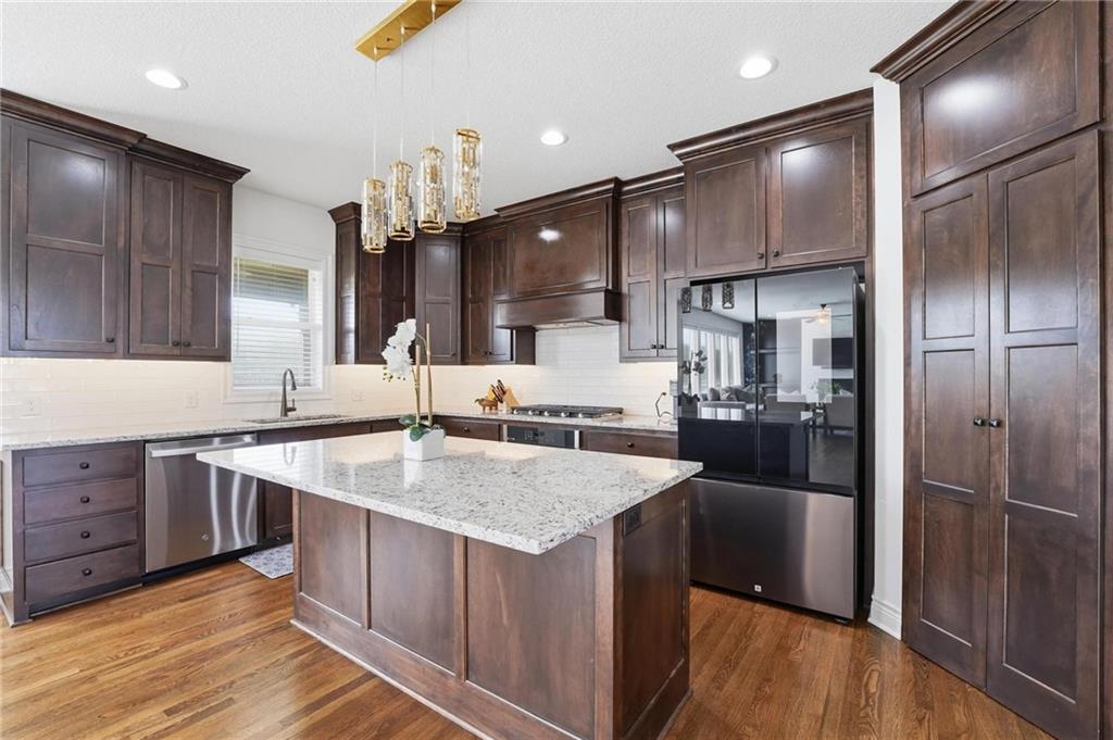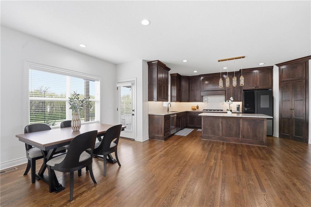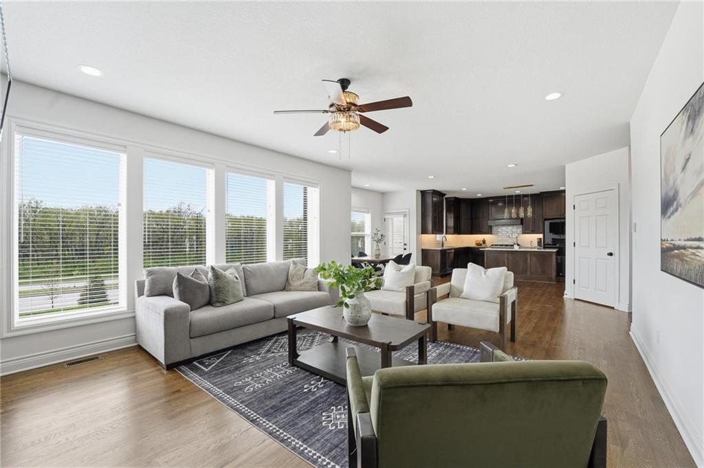 This stunning custom Landon II 2-story home offers a perfect blend of modern elegance and functional design within the prestigious Willows community. Situated in a prime location within the top-rated Blue Valley School District, this residence sits on a desirable walk-out lot with a sought-after east-facing orientation, ensuring an abundance of natural sunlight throughout the day. The main level features an expansive open floor plan highlighted by a Great Room with a gas fireplace, a gourmet kitchen equipped with a large island and walk-in pantry, and a sun-drenched dining area. This thoughtfully designed layout includes four full bathrooms, with one conveniently located on the main level. Upstairs, the luxurious master suite serves as a private retreat with a tray ceiling, dual vanities, a soaking tub, and a massive walk-in closet. Three additional spacious bedrooms ensure comfort for the whole family. Outdoor enthusiasts will appreciate the nearby nature trails, while the covered deck, three-car garage, and unfinished walk-out basement provide exceptional utility and room for future expansion.