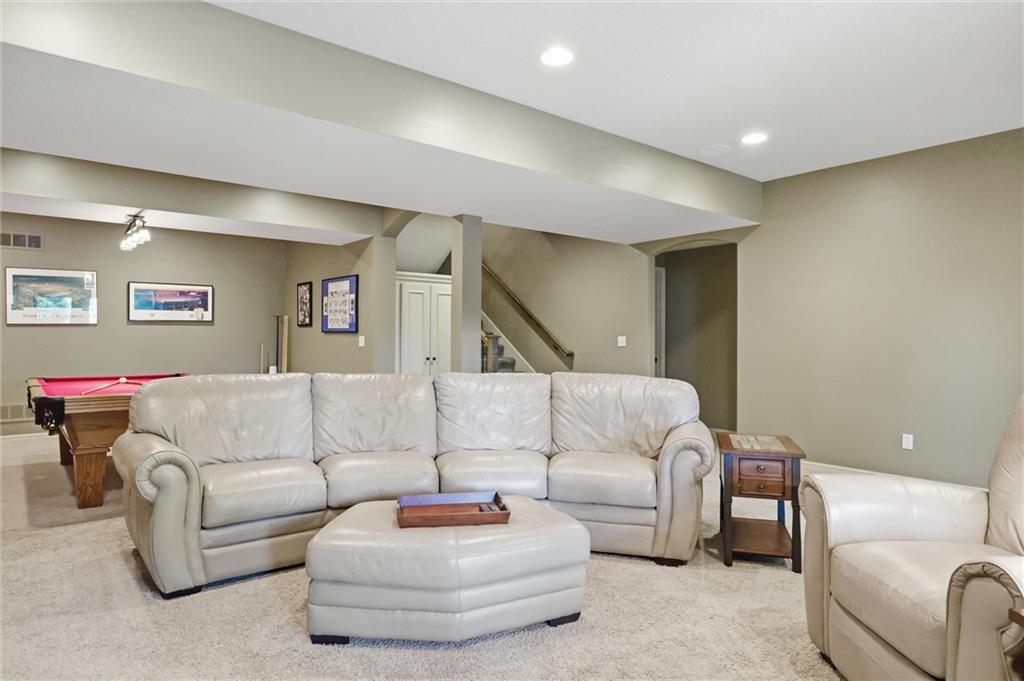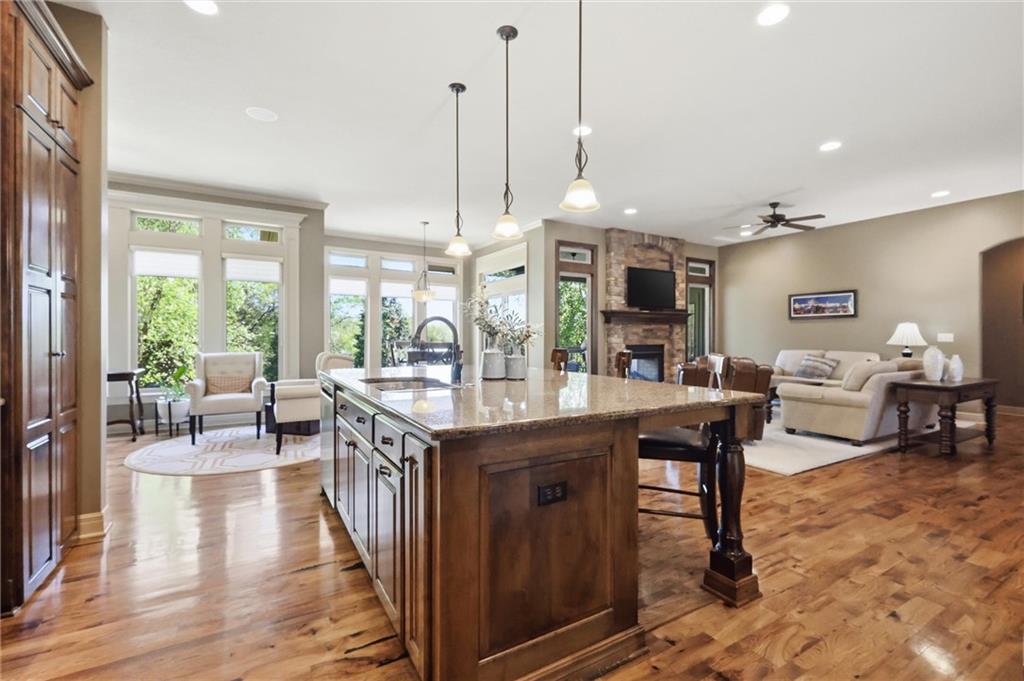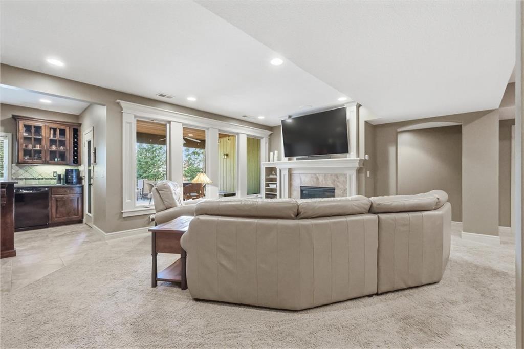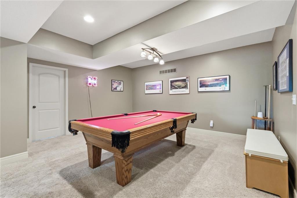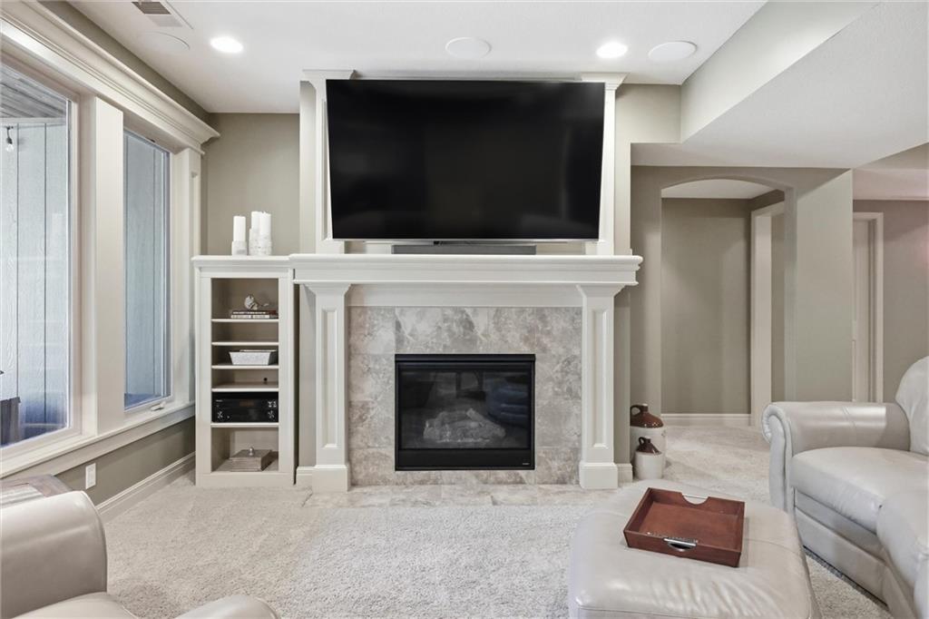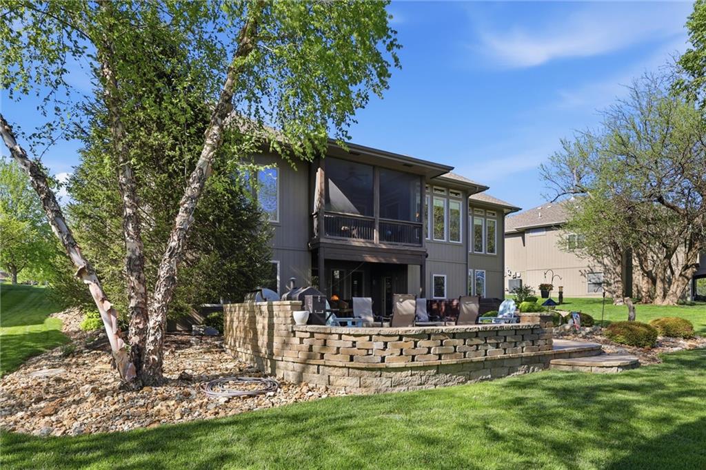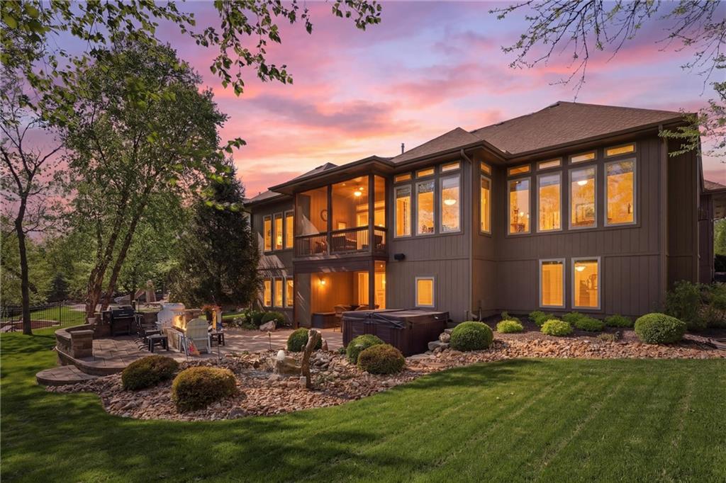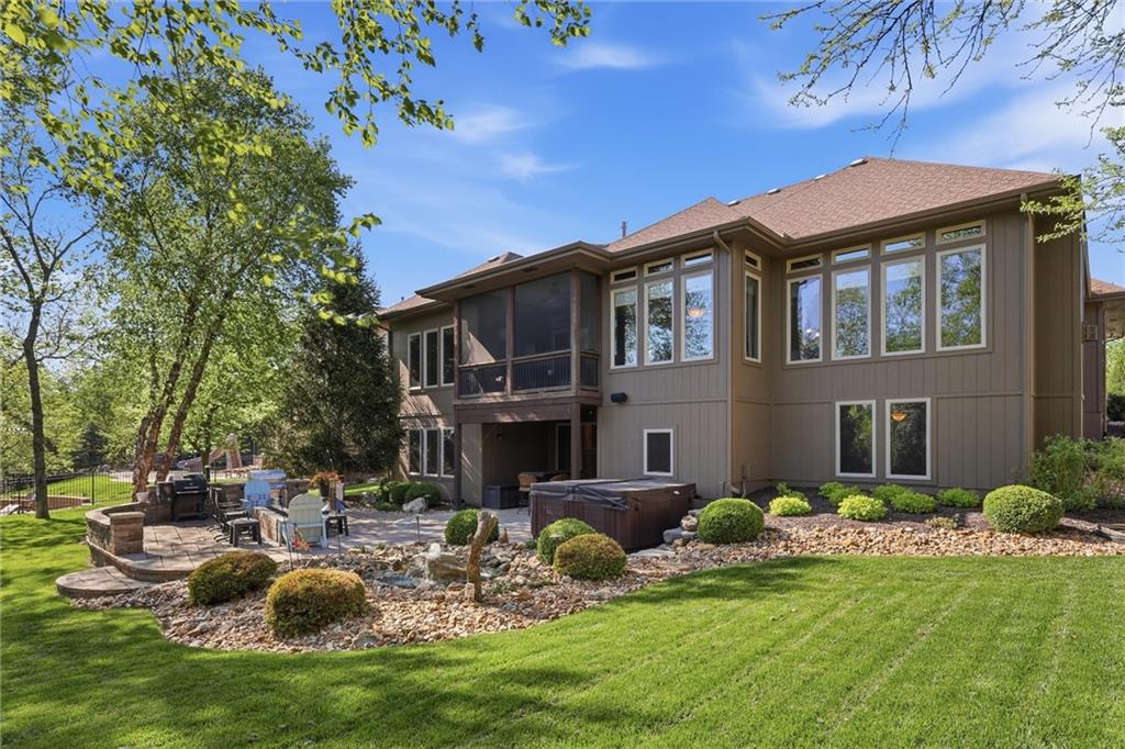 Don’t miss this beautifully maintained home designed for both everyday living and exceptional entertaining. Every bedroom features its own full bathroom, offering comfort and privacy for family and guests alike. The heart of the home is the stunning kitchen, complete with stained wood cabinetry, stone countertops, stainless steel appliances, a large island, and a walk-in pantry. The open layout flows seamlessly to the screened-in deck, where you’ll find a see-through fireplace with space for a TV—perfect for cozy evenings or hosting friends. The main level also offers a versatile second bedroom or office, along with an oversized laundry room for added convenience. The spacious primary suite is a true retreat, featuring a tray ceiling, private deck access, a large walk-in closet, and a luxurious en-suite bathroom with a soaking tub, separate shower, and double vanity with ample storage. Downstairs, the finished walkout basement is built for entertaining, complete with a fireplace, game room area, and a wet bar with stained cabinetry, sink, and dishwasher. Two additional bedrooms and two full bathrooms provide even more living space. Step outside to enjoy the extended patio, thoughtfully designed with an outdoor kitchen area, fire pit, and beautifully finished ceiling detail over the covered patio. The backyard also features professional landscaping and a tranquil water feature. The home is even prepped for a hot tub hookup. Car enthusiasts and hobbyists will appreciate the oversized three-car garage with a staircase leading directly to the basement. This home has been exceptionally cared for and is truly move-in ready—an incredible opportunity for its next owner.