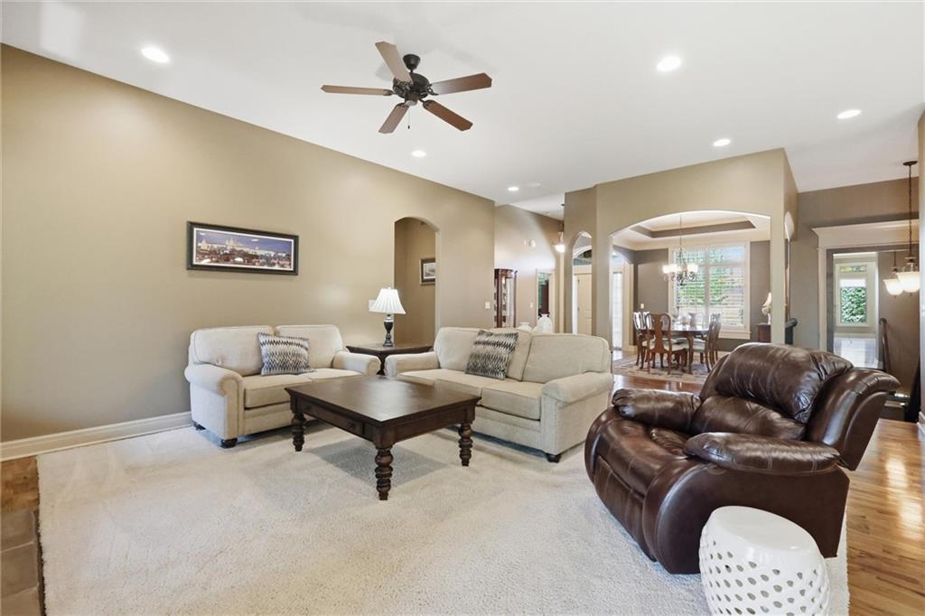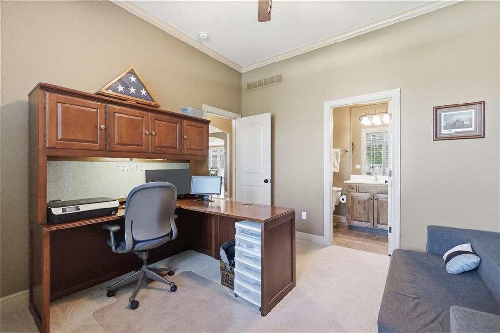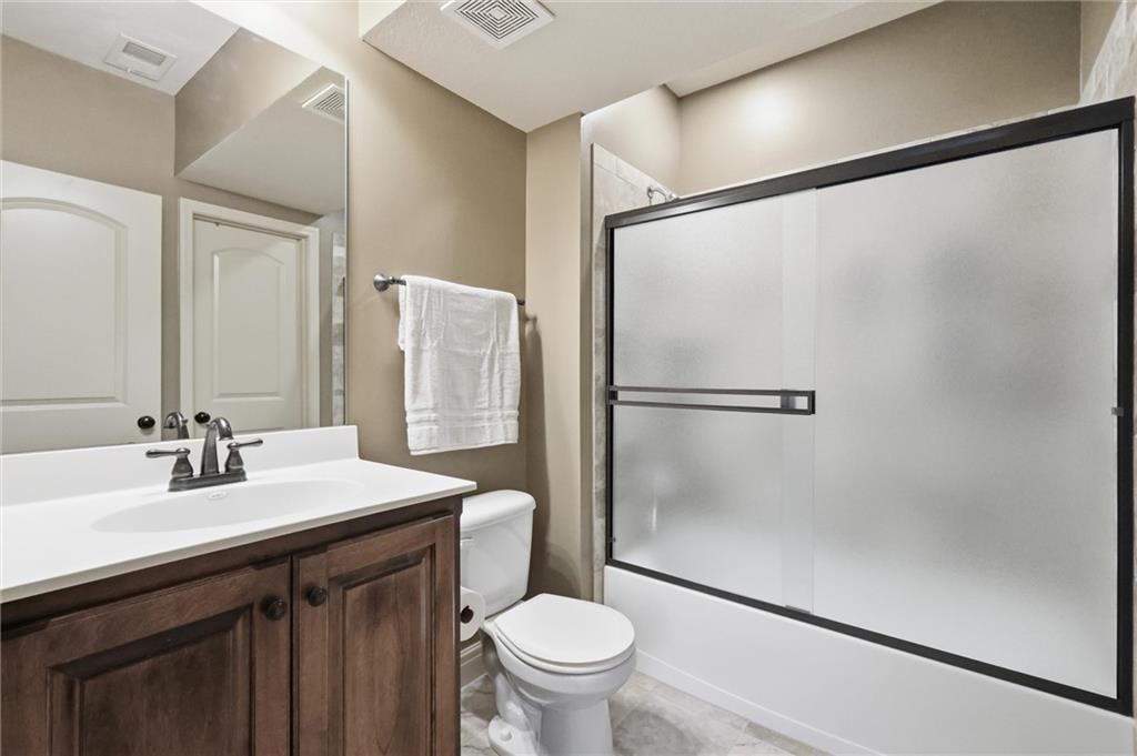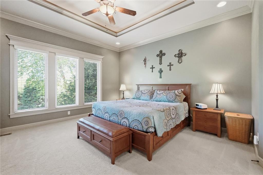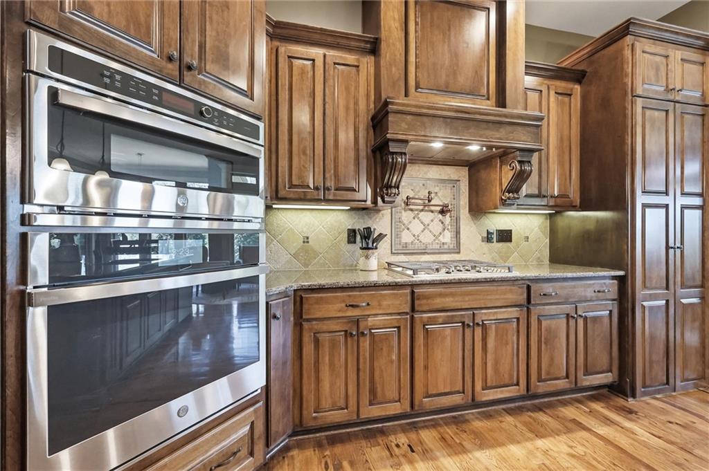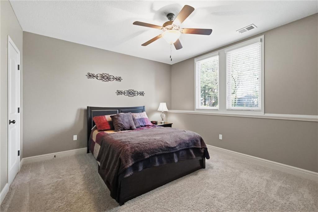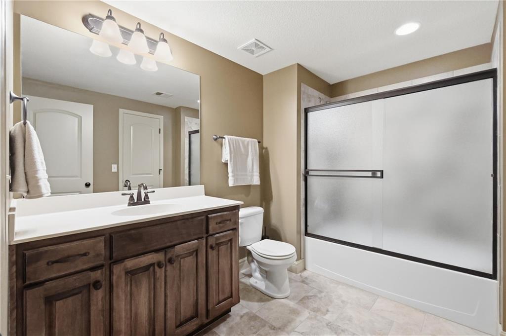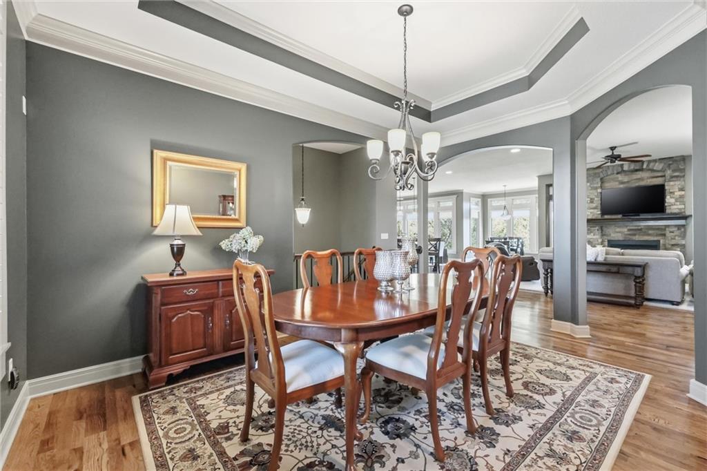 Don’t miss this beautifully maintained home designed for both everyday living and exceptional entertaining. Every bedroom features its own full bathroom, offering comfort and privacy for family and guests alike. The heart of the home is the stunning kitchen, complete with stained wood cabinetry, stone countertops, stainless steel appliances, a large island, and a walk-in pantry. The open layout flows seamlessly to the screened-in deck, where you’ll find a see-through fireplace with space for a TV—perfect for cozy evenings or hosting friends. The main level also offers a versatile second bedroom or office, along with an oversized laundry room for added convenience. The spacious primary suite is a true retreat, featuring a tray ceiling, private deck access, a large walk-in closet, and a luxurious en-suite bathroom with a soaking tub, separate shower, and double vanity with ample storage. Downstairs, the finished walkout basement is built for entertaining, complete with a fireplace, game room area, and a wet bar with stained cabinetry, sink, and dishwasher. Two additional bedrooms and two full bathrooms provide even more living space. Step outside to enjoy the extended patio, thoughtfully designed with an outdoor kitchen area, fire pit, and beautifully finished ceiling detail over the covered patio. The backyard also features professional landscaping and a tranquil water feature. The home is even prepped for a hot tub hookup. Car enthusiasts and hobbyists will appreciate the oversized three-car garage with a staircase leading directly to the basement. This home has been exceptionally cared for and is truly move-in ready—an incredible opportunity for its next owner.