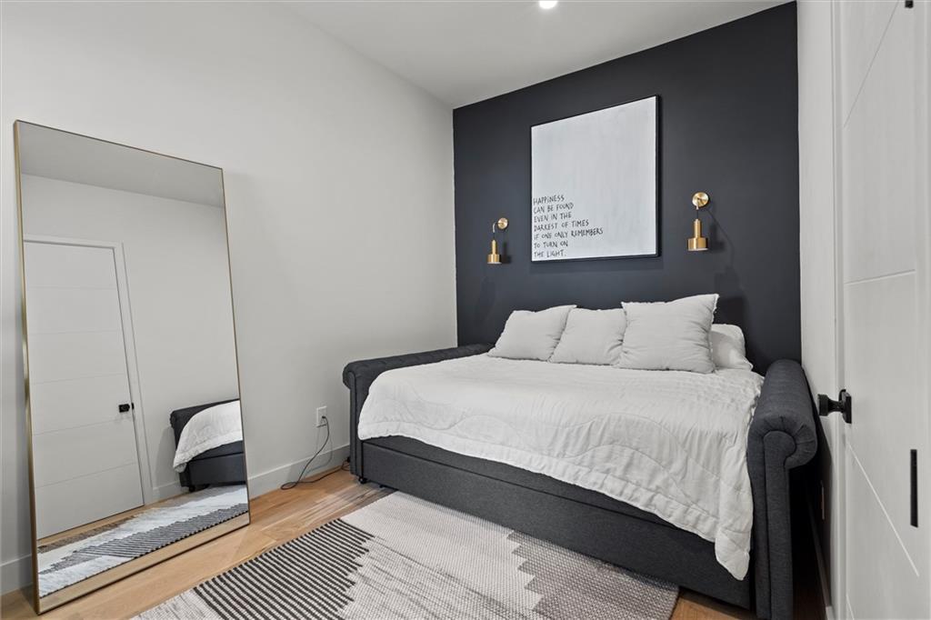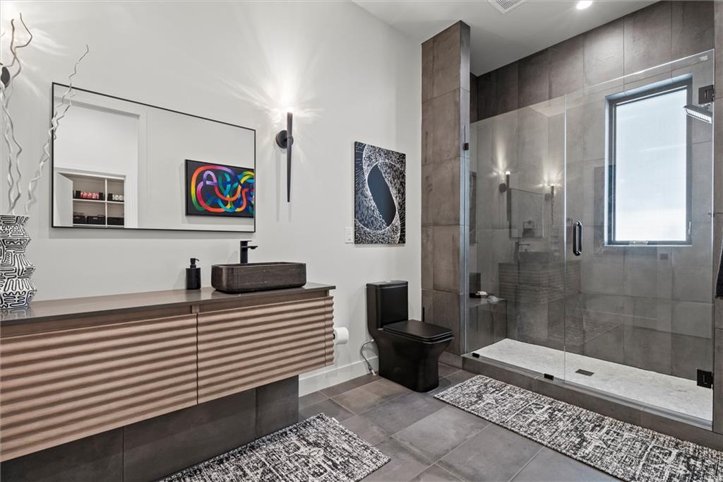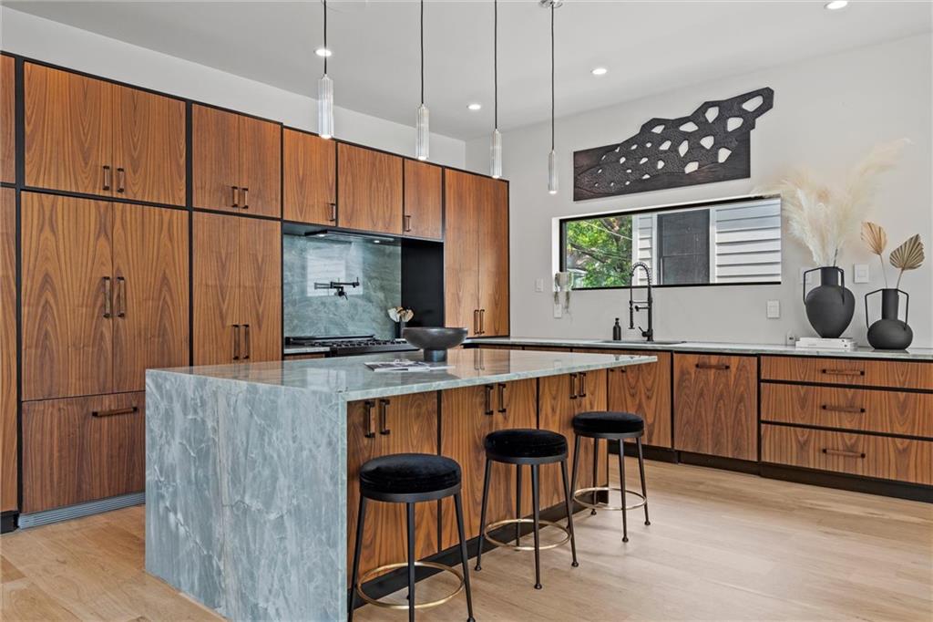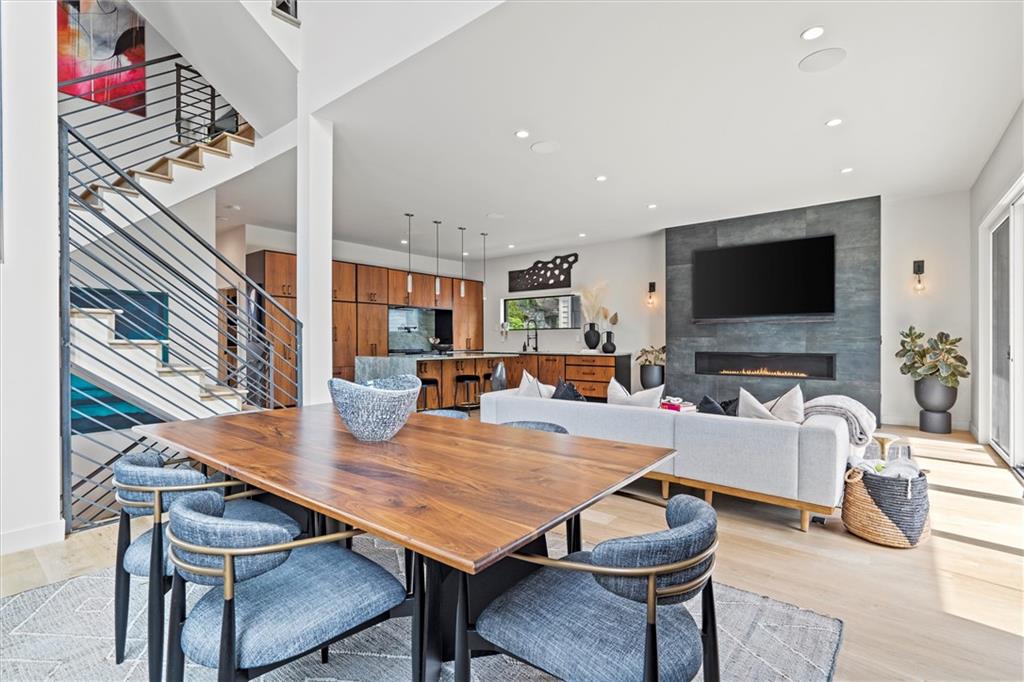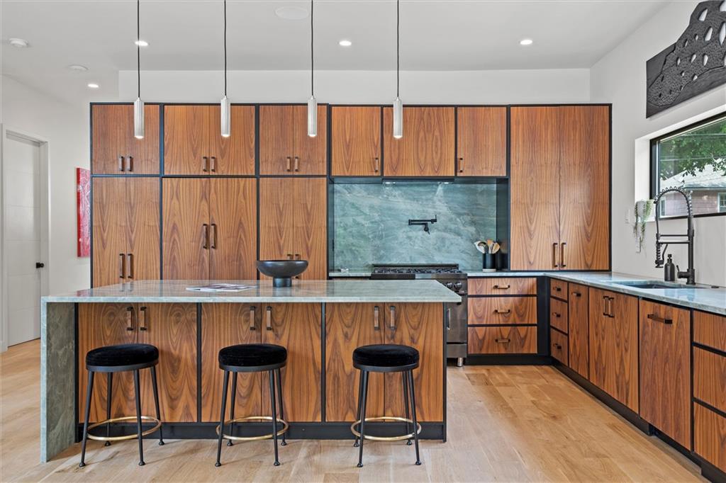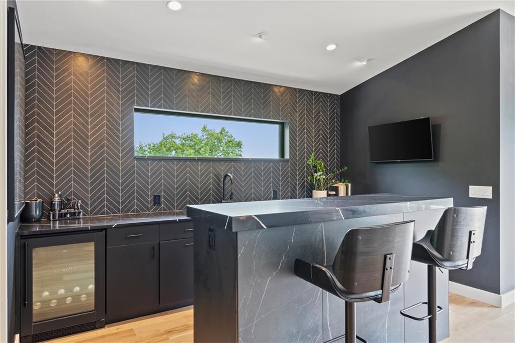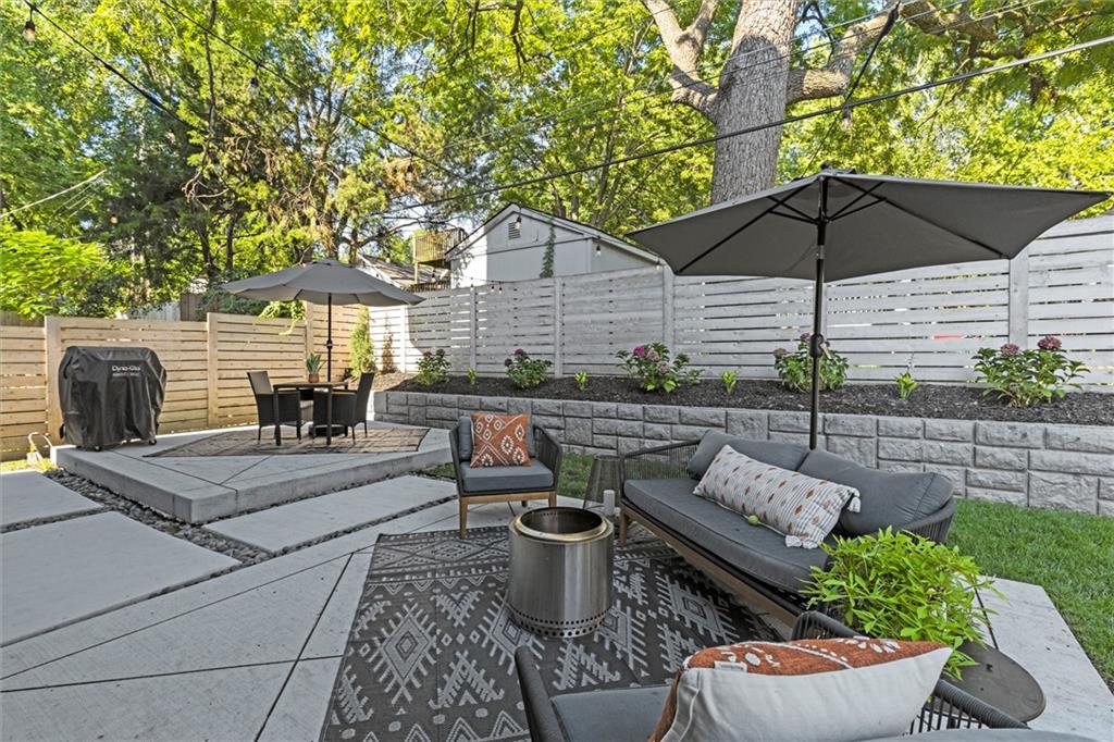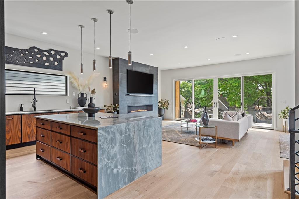 Discover this stunning custom-built home in the heart of Kansas City's sought-after West Plaza neighborhood. With an unbeatable location just minutes from Westport, The Country Club Plaza, and the Nelson Atkins Art Museum, this 2022 Artisan Home is an entertainer's dream. The exterior features gas lanterns, stucco, and a glass garage door with powder coated black metal framing, providing ample off-street parking with a three-car garage. Inside, you'll find 7-inch white oak hardwood floors, custom-fabricated steel railings, and Restoration Hardware light fixtures throughout. The second level includes a kitchen with inset walnut cabinets, hidden appliances, and stunning azul quartz countertops from Italy, leading into the main living area with an 80-inch gas fireplace and floor-to-ceiling charcoal concrete. The dining room features a 24-foot vaulted ceiling and large windows with electric blinds. The home offers multiple outdoor spaces, including concrete patios, a privacy-fenced backyard, and a 200-square-foot rooftop deck with views of the Country Club Plaza. With two primary suites, a potential fifth bedroom, and a top-floor movie theater with a soundproofed entertainment area, this home truly has it all. Freshly painted interior. Sellers are willing to include the home theatre equipment with an acceptable offer. Don't miss your chance to own this masterpiece in West Plaza.