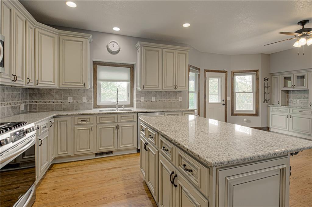 Welcome to this stunning two-story home in the highly sought-after Claywoods subdivision in Liberty! Offering over 3,700 square feet of finished living space, this spacious 4-bedroom, 4.5-bath home combines timeless design with everyday functionality. Step inside to find a warm and inviting layout featuring a formal dining room and a stunning great room with a see-through fireplace that flows seamlessly into the hearth room and kitchen—perfect for both entertaining and everyday living. The kitchen is well-appointed with granite countertops, stainless steel appliances, refrigerator included, an island, and ample cabinetry, making it the true heart of the home. Upstairs, you’ll find generously sized bedrooms, including a spacious primary suite with a walk-in closet and en suite bath. The finished walk-out lower level provides additional living space ideal for a family room, recreation area, or guest retreat. Situated on a large, treed lot, the outdoor space offers a deck, patio, and plenty of room to relax or entertain. The 3-car tandem garage provides ample storage and convenience. So much new in this home including the roof, hot water heaters, hardwood flooring, carpet in primary bedroom and more! Claywoods is a well-established and sought-after community located just east of 291 Highway in Liberty. Known for its mature trees, generous homesites, and timeless character, the neighborhood offers a welcome departure from typical cookie-cutter developments. Residents enjoy being part of the highly regarded Liberty School District, along with convenient access to shopping, dining, and major highways—making for an easy commute to downtown Kansas City in approximately 15 minutes. Don’t wait, this one won’t last long!