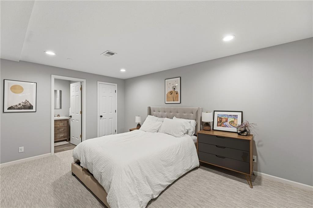 SELLERS HAVE ACCEPTED AN OFFER AND ARE WAITING FOR FINAL SIGNATURES FROM RELO CO. TO CHANGE THE STATUS. This home offers an impressive blend of luxury, functionality, and an unbeatable location. Step inside to a spacious, light-filled interior featuring designer finishes and quality craftsmanship throughout. Hardwood floors anchor the main level, where a thoughtfully designed layout offers multiple living and dining spaces—perfect for both everyday living and effortless entertaining. Enjoy a large, inviting family room ideal for gathering, along with additional living areas that provide flexibility for relaxing, working, or hosting guests. The home also features multiple dining spaces, including a formal dining room for special occasions and more casual areas for everyday meals. Soaring vaulted ceilings and generously sized rooms create a bright, airy atmosphere showcasing the home beautifully. Freshly painted inside and out, the property also boasts numerous upgrades throughout. The stunning gourmet kitchen is a true centerpiece, complete with stainless steel appliances, quartz countertops, and abundant white cabinetry. A well-appointed main-level bedroom provides added flexibility, ideal for guests, multigenerational living, or a private office retreat. Additional highlights include a composite roof replaced less than two years ago, and a lower-level recreation room featuring new LVT flooring, a cozy fireplace and wet bar—ideal for relaxing or hosting guests. A non-conforming sixth bonus room and a convenient half bath complete the lower level. For those who enjoy the outdoors, the newly screened porch offers the perfect retreat. Unwind with a good book while taking in peaceful sunset views over the private fenced backyard. Located in a highly sought-after neighborhood, this home is just minutes from Town Center, offering a variety of dining and shopping options, as well as nearby parks with scenic walking and biking trails.